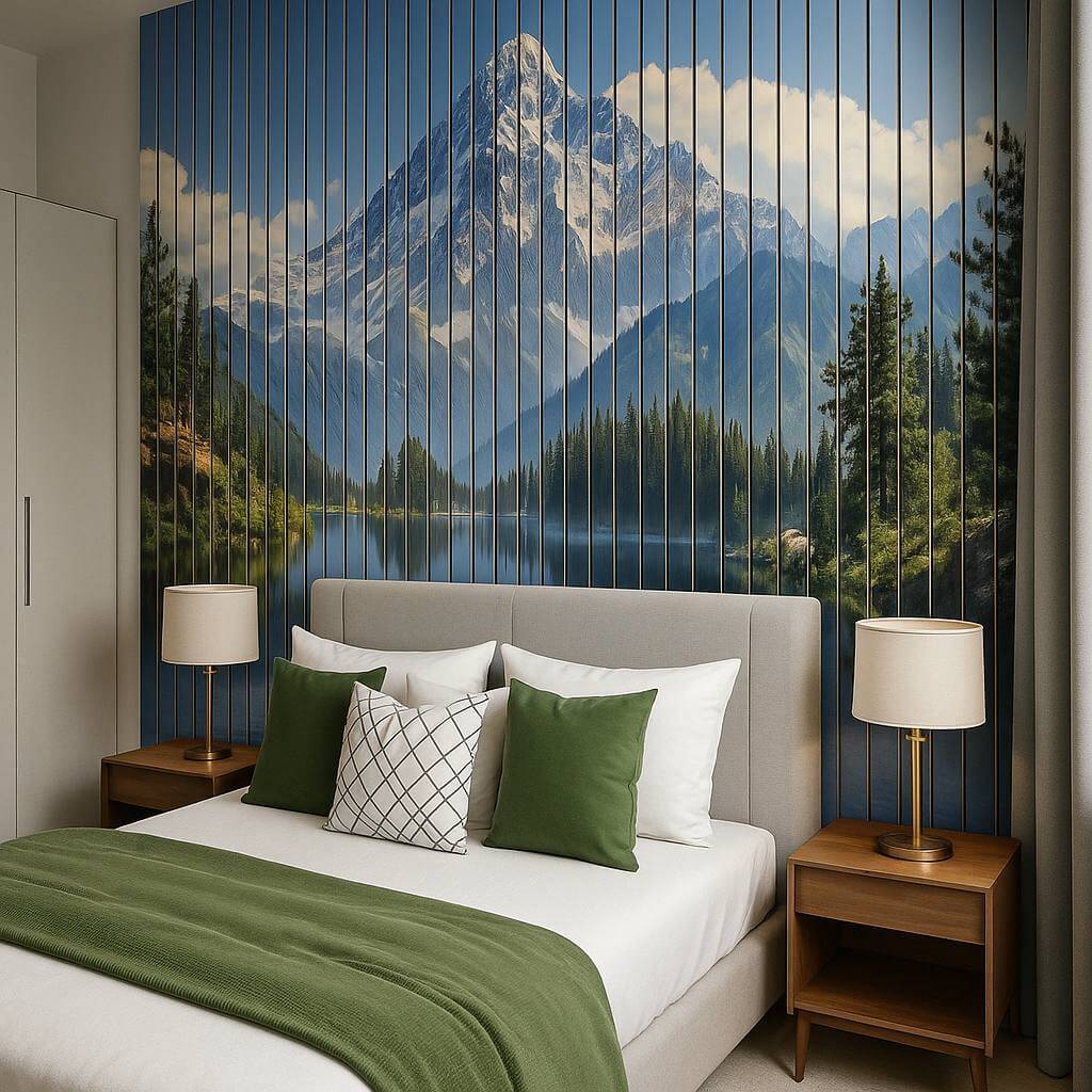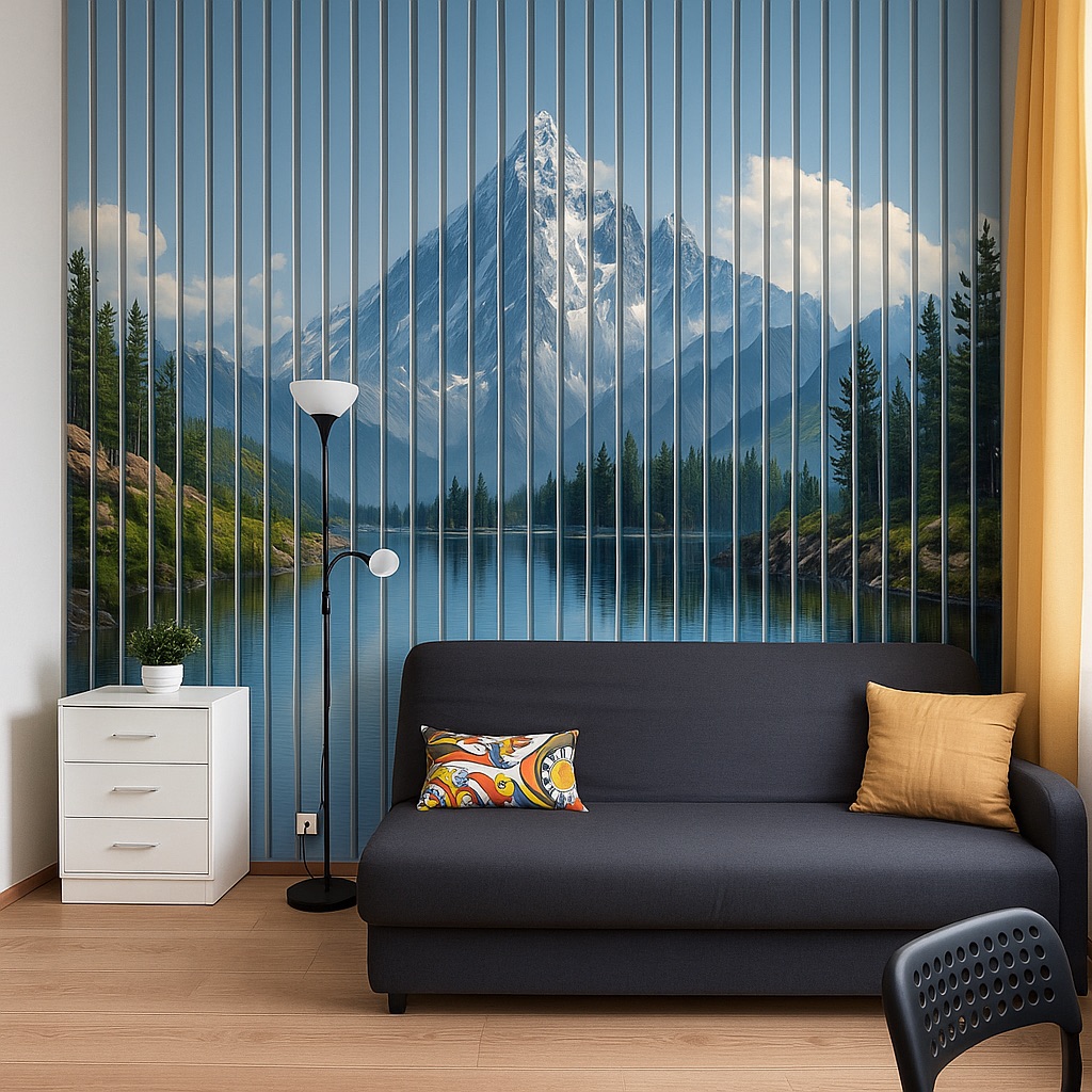„Inspirująca górska sceneria” to doskonały sposób na stworzenie przytulnej i nowoczesnej aranżacji ściany telewizyjnej. Inspirowany naturą krajobraz gór w ciepłej kolorystyce wprowadza do wnętrza spokój, harmonię i elegancję. Taka dekoracja świetnie współgra z minimalistycznymi i surowymi przestrzeniami, w których dominują betonowe i drewniane akcenty. Jeśli planujesz ścianę TV lamele beton, ten model sprawdzi się idealnie – łączy naturalny motyw z nowoczesnym stylem. W aranżacjach typu ściana TV z lamelami lub ściana TV z lameli, panele te wprowadzą wizualną głębię i unikalny klimat. To także doskonały wybór, gdy tworzysz ścianę z lamelami TV lub projektujesz nowoczesną ścianę z lameli z telewizorem. Dzięki pionowemu układowi lameli i subtelnemu nadrukowi, ściana z telewizorem i lamelami zyskuje wyjątkowy charakter. Motyw gór sprawdzi się również w przypadku kompozycji takich jak ściana z TV lamele, ściana za TV lamele czy ścianka RTV lamele, podkreślając centralne miejsce strefy wypoczynkowej. Telewizor na lamelach w takim wydaniu staje się integralną częścią artystycznej kompozycji, a telewizor lamele to nie tylko funkcjonalność, ale i dekoracyjna jakość wnętrza.