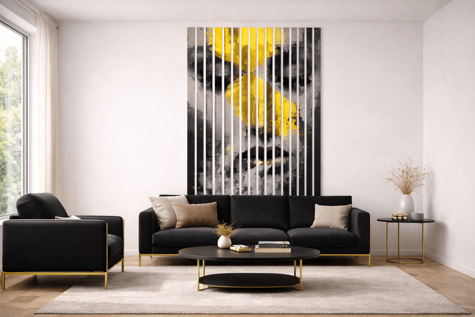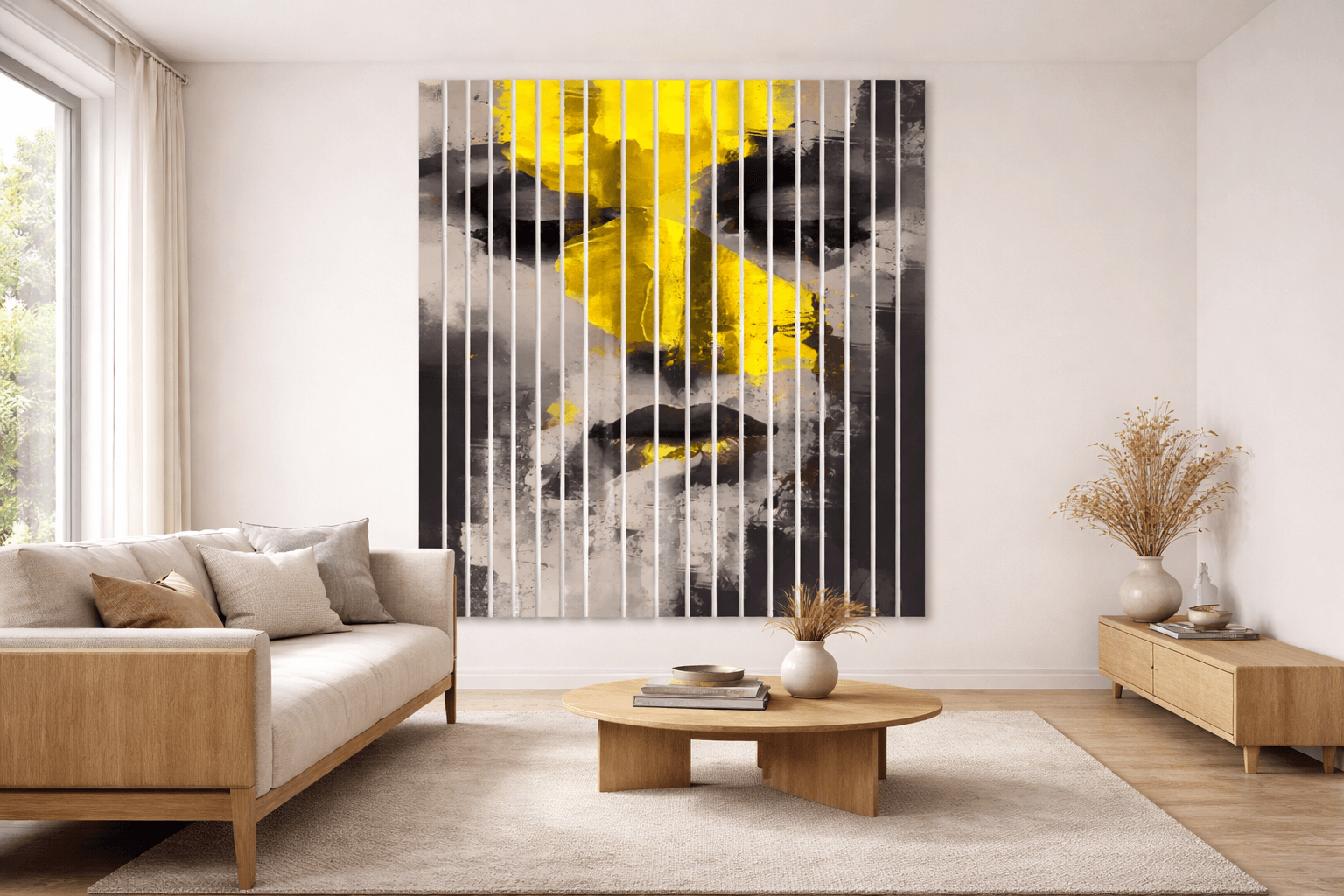 Lamele dostępne są w zestawach o różnych wymiarach – od 100×100 cm do 300×300 cm. Każda listwa ma zazwyczaj szerokość ok. 3 cm, dzięki czemu można je łatwo dopasować do wymiarów ściany lub strefy dekoracyjnej.