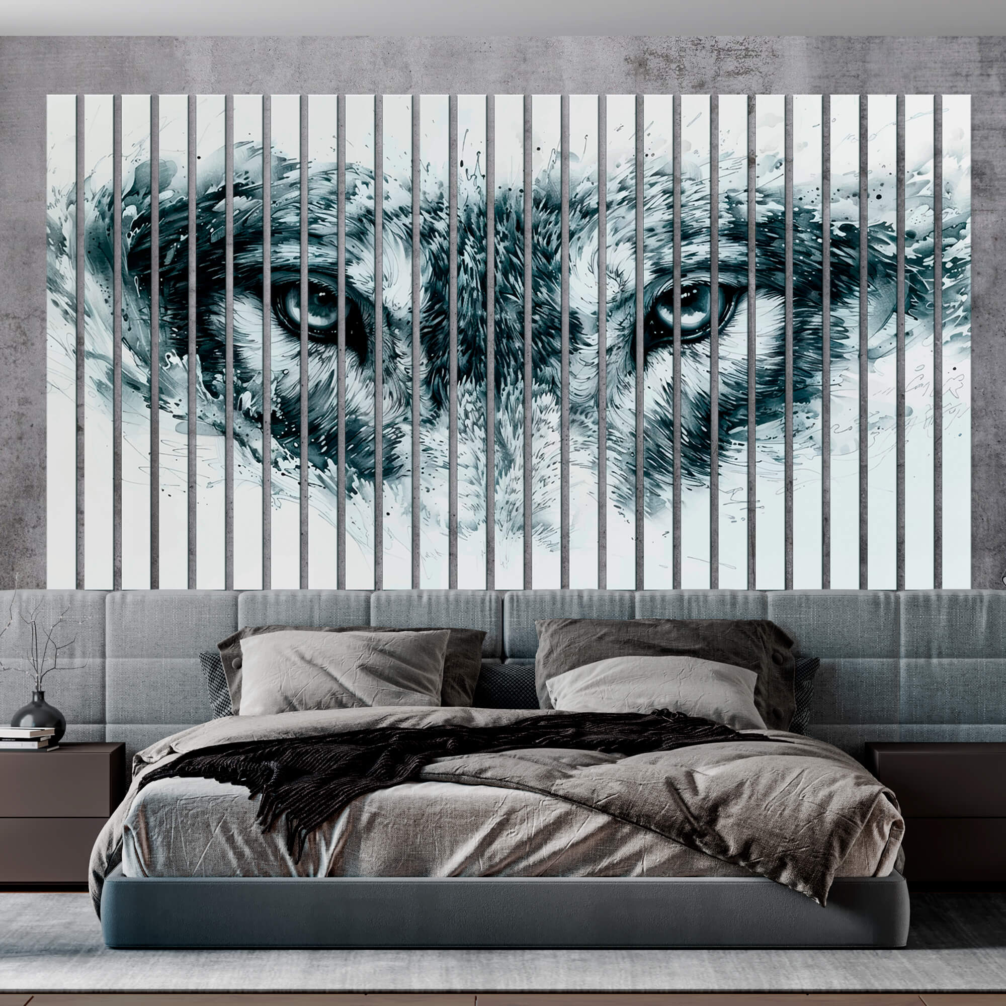 „Siła wilka” to nowoczesny element dekoracyjny, który wprowadza do wnętrza wyjątkowy charakter i energię. Ich białe lamele ścienne świetnie sprawdzą się zarówno w salonie, sypialni, jak i w kuchni, tworząc spójną i jasną przestrzeń. Dzięki lamele jasne i lamele białe połysk powierzchni ściana zyskuje elegancki, nowoczesny wygląd, a nadruk przedstawiający wilka dodaje wnętrzu dynamiki i wyrazistości. Panele lamelowe białe można zamontować w dowolnym układzie – pionowym lub poziomym – dopasowując je do stylu pomieszczenia. Ten panel lamelowy biały to idealny wybór dla osób ceniących oryginalne dekoracje oraz praktyczne, trwałe rozwiązania w aranżacji wnętrz.