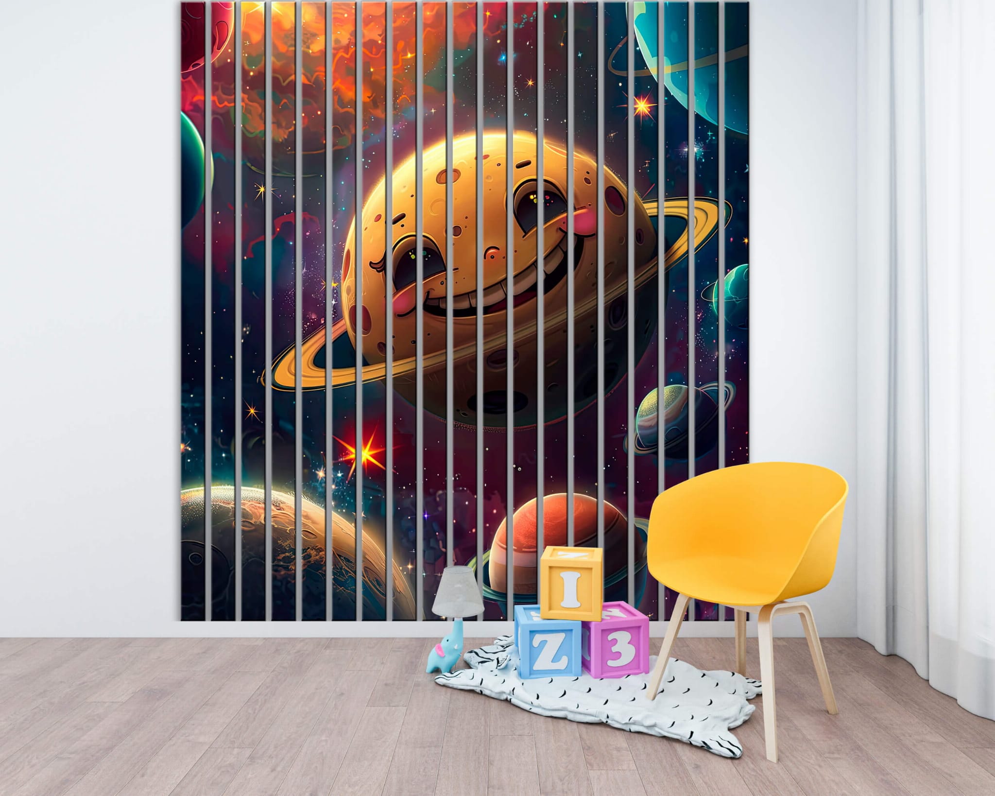 Lamele ścienne dekoracyjne PCV Szczęśliwy Saturn w kosmosie