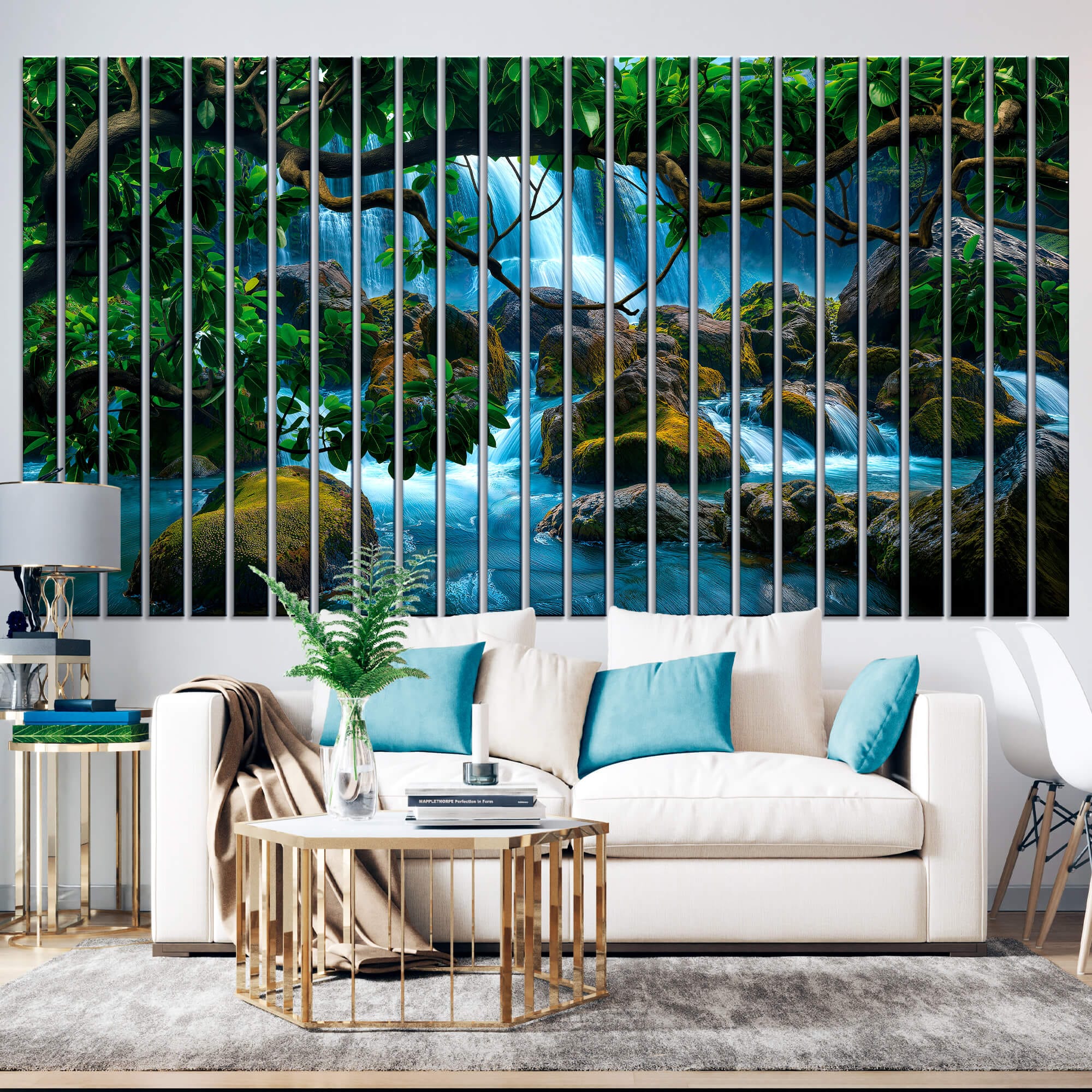 „Wodospad Ciszy” to elegancki element dekoracyjny, który doskonale wpasuje się w nowoczesne aranżacje wnętrz. Dzięki swojej unikalnej strukturze oraz różnorodności kolorów, dodają wnętrzu wyjątkowego charakteru i optycznie je powiększają. Wykorzystaj lamele, aby stworzyć przytulną atmosferę we własnym domu.