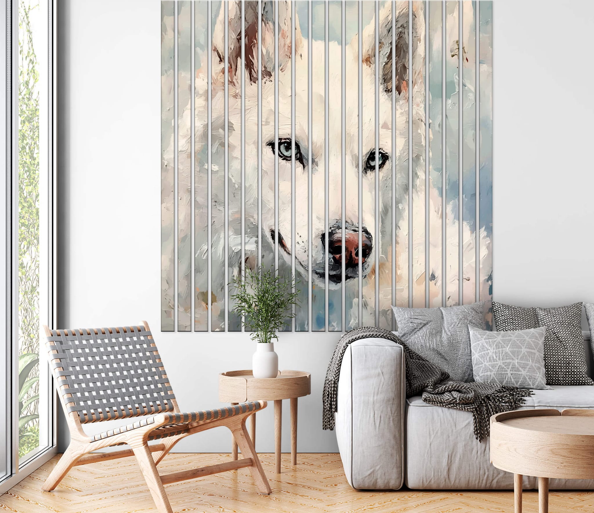 „Wilk albinos” to wyjątkowa dekoracja, która łączy nowoczesny design z artystycznym charakterem. Efektowne lamele ścienne 3D nadają ścianie głębi, a subtelne lamele ścienne jasne optycznie powiększają przestrzeń. Taka lamele ścienne aranżacja doskonale sprawdzi się w salonie, sypialni czy biurze, wprowadzając wyjątkowy klimat. Możesz wybrać zarówno lamele ścienne pojedyncze, jak i nowoczesne lamele ścienne slim, aby dopasować je do swoich potrzeb. Funkcjonalne panele lamele ścienne wykonane z trwałego PCV gwarantują łatwy montaż, estetyczny wygląd i długą żywotność.