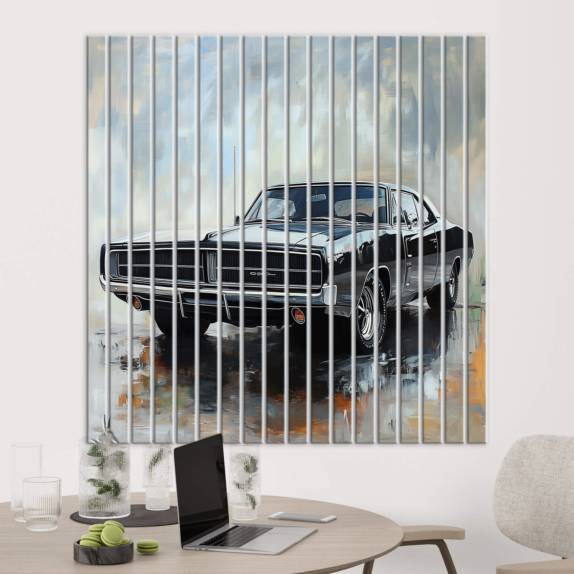 „Czarny samochód retro” to stylowy element wystroju, który wprowadza do wnętrza unikalny klimat. Dzięki swoim nowoczesnym wzorom i wysokiej jakości materiałom, doskonale sprawdzi się w każdym pomieszczeniu, dodając mu charakteru. To także świetne rozwiązanie jako lamele w biurze — tworzą eleganckie i profesjonalne tło, sprzyjające koncentracji i estetyce miejsca pracy. Jeśli szukasz nietuzinkowego akcentu do przestrzeni firmowej, te lamele biuro zamienią w nowoczesne i stylowe wnętrze z nutą retro. Nowoczesne obrazy z samochodami doskonale uzupełniają aranżację wnętrza z lamelami, podkreślając styl retro i dodając przestrzeni wyjątkowego charakteru.