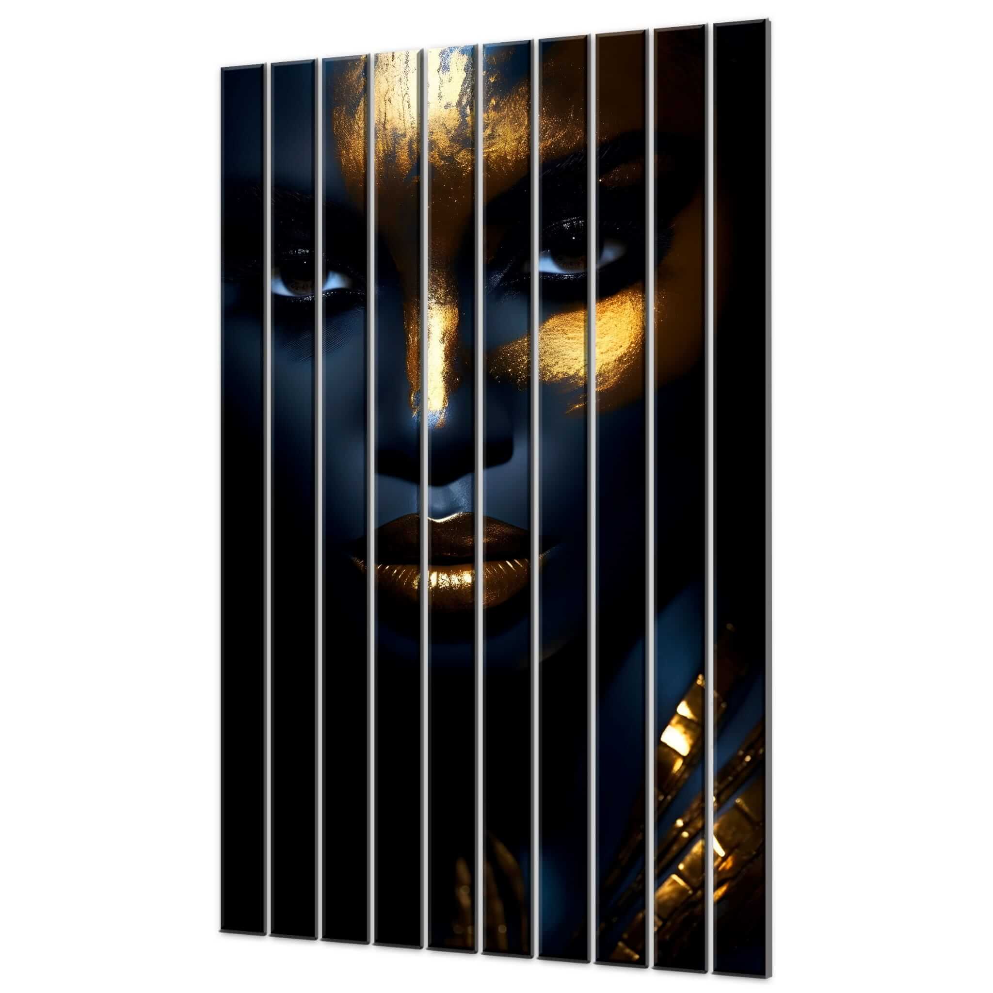 Dom • Katalog • LAMELE ŚCIENNE • LAMELE ŚCIENNE PCV • Lamele ścienne PCV z nadrukiem Afrykański złoto-czarny portret kobiety
