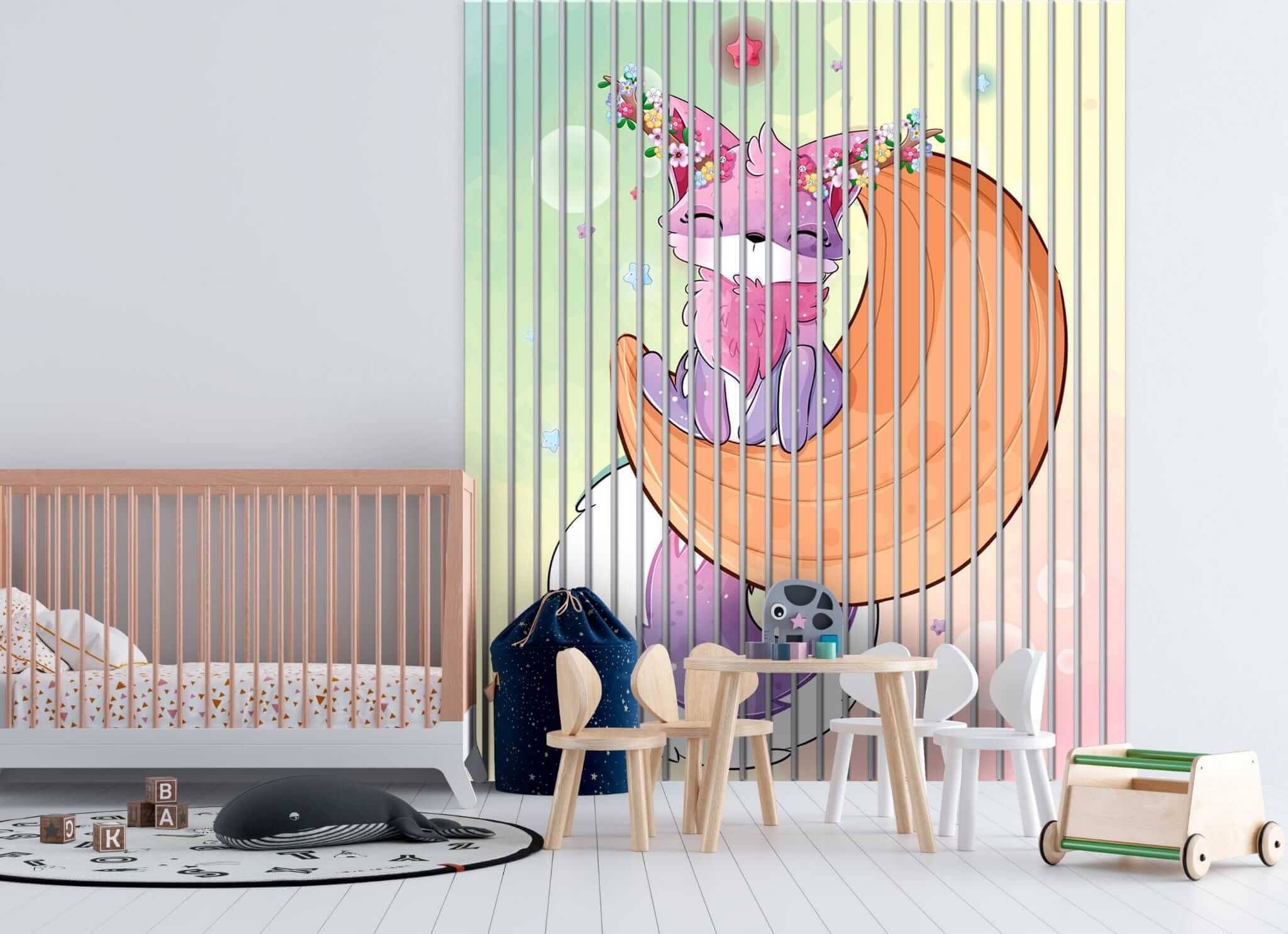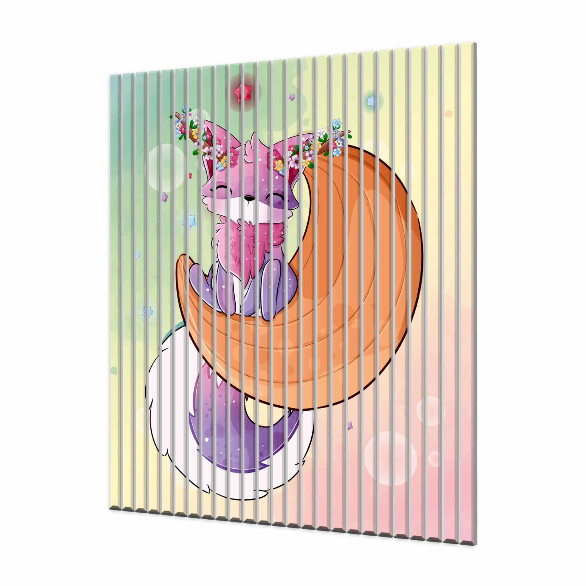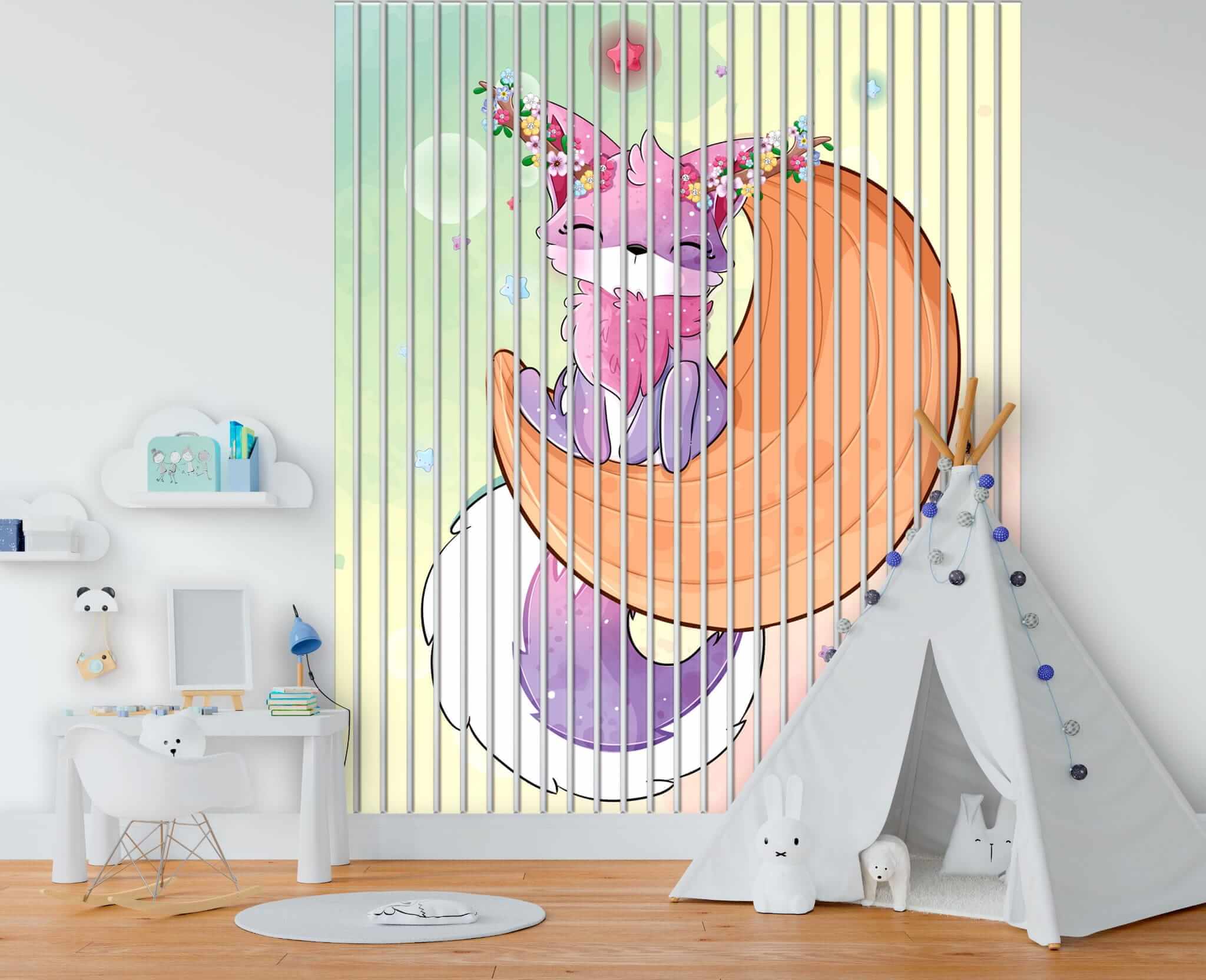 Lamele ścienne PCV z nadrukiem dla dzieci Lis z kwiatową ozdobą