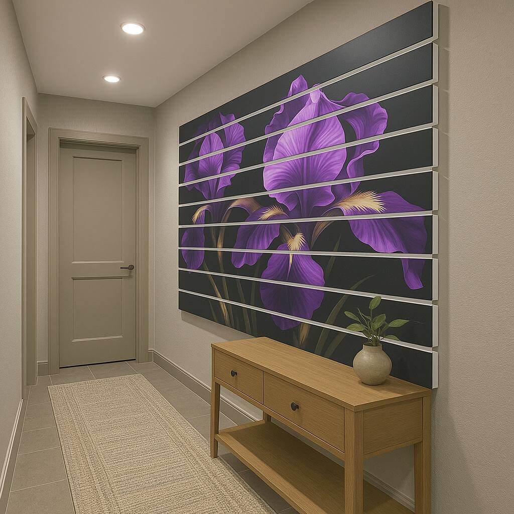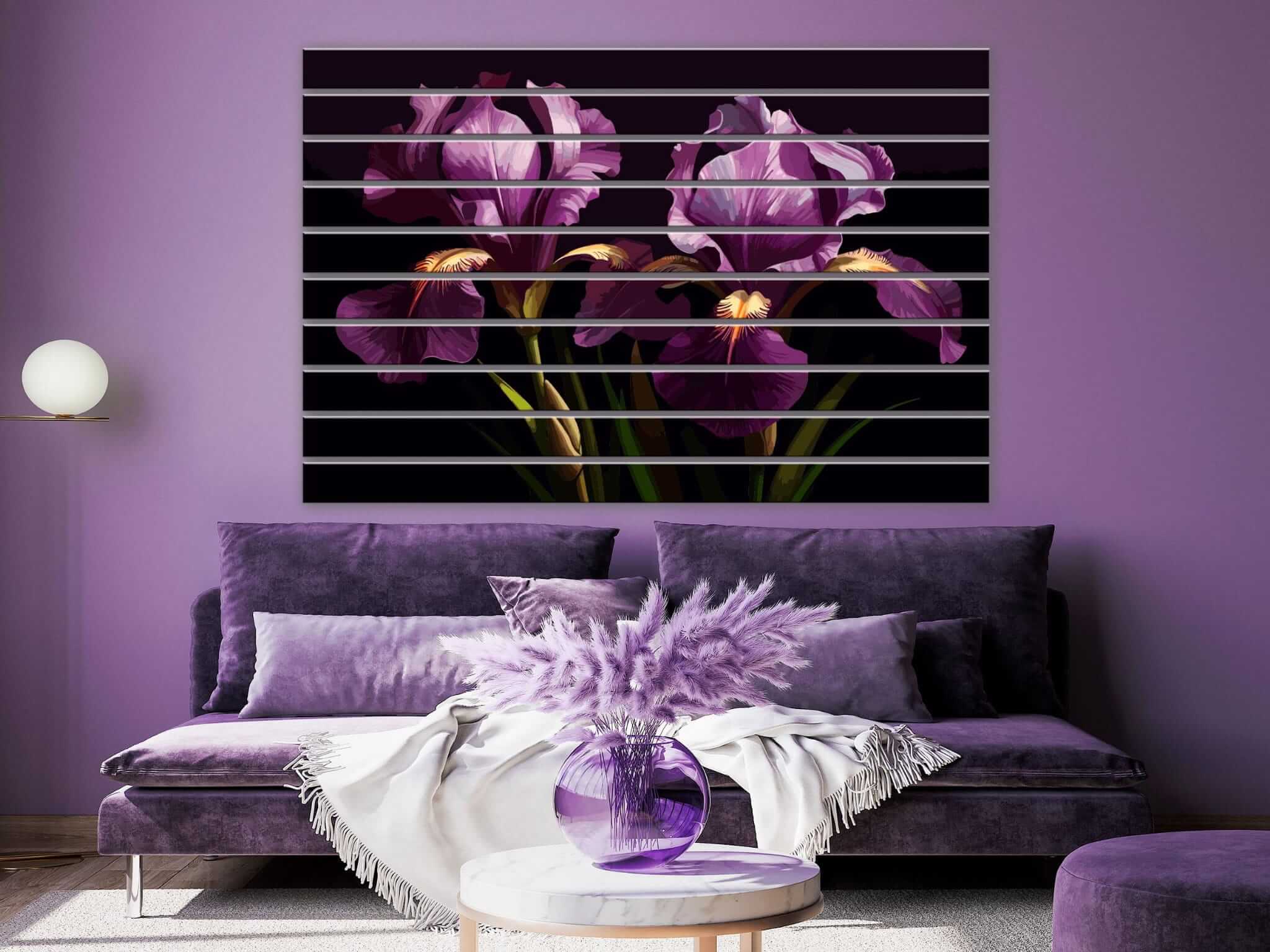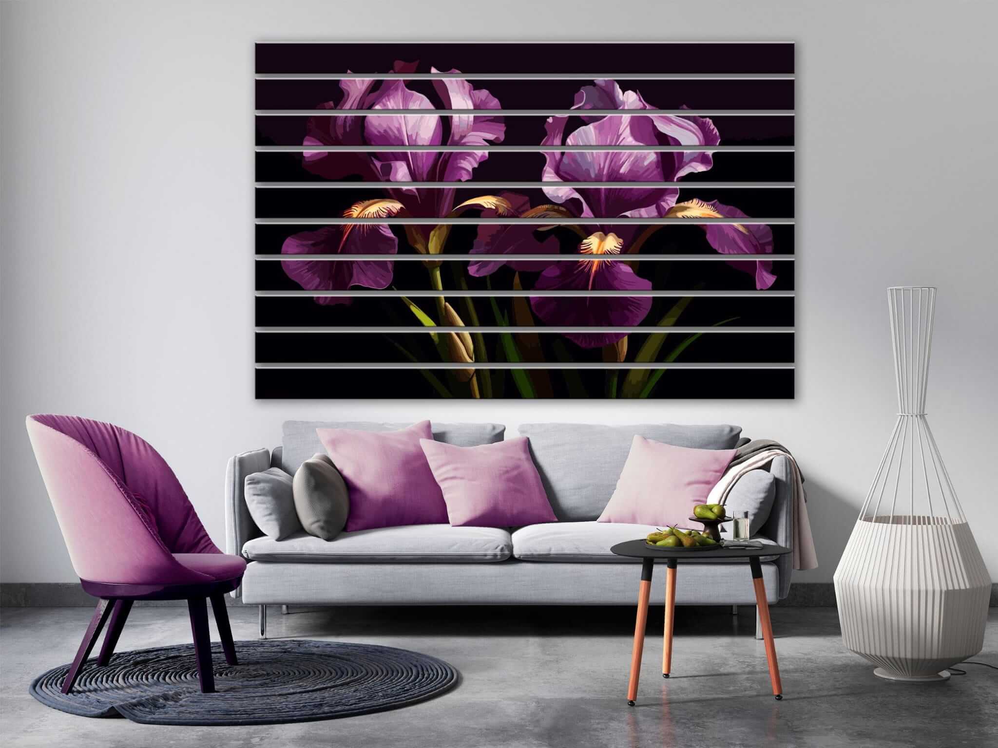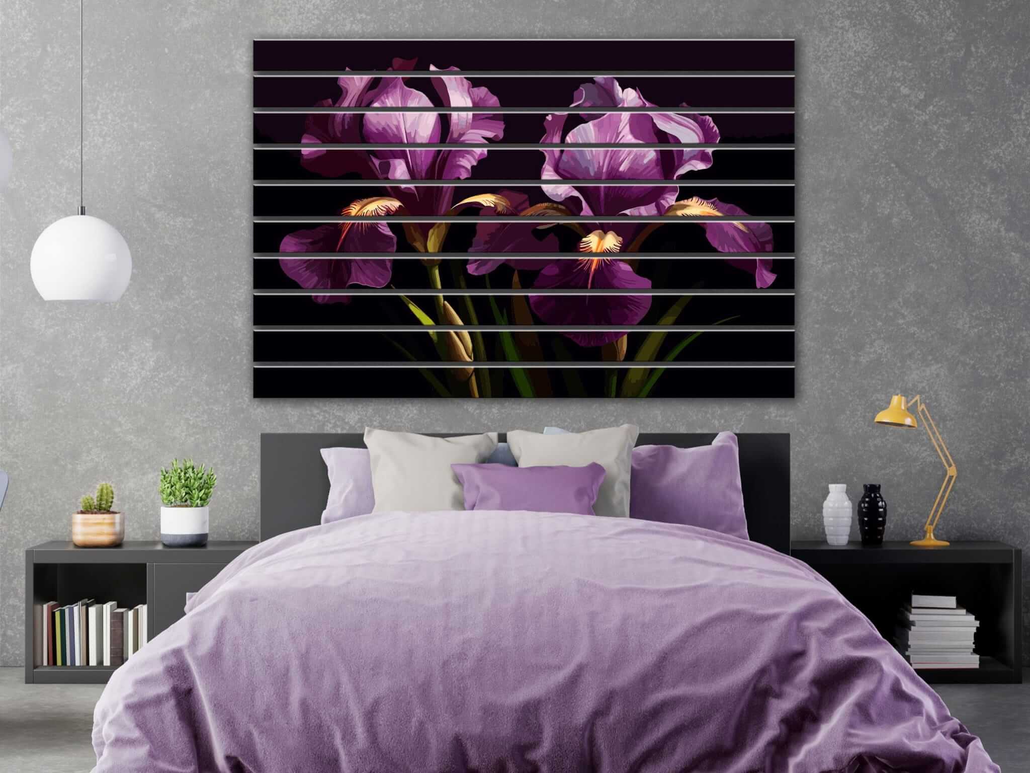 Dom • Katalog • LAMELE ŚCIENNE • Lamele ścienne PCV z nadrukiem Irysy na ciemnym tle