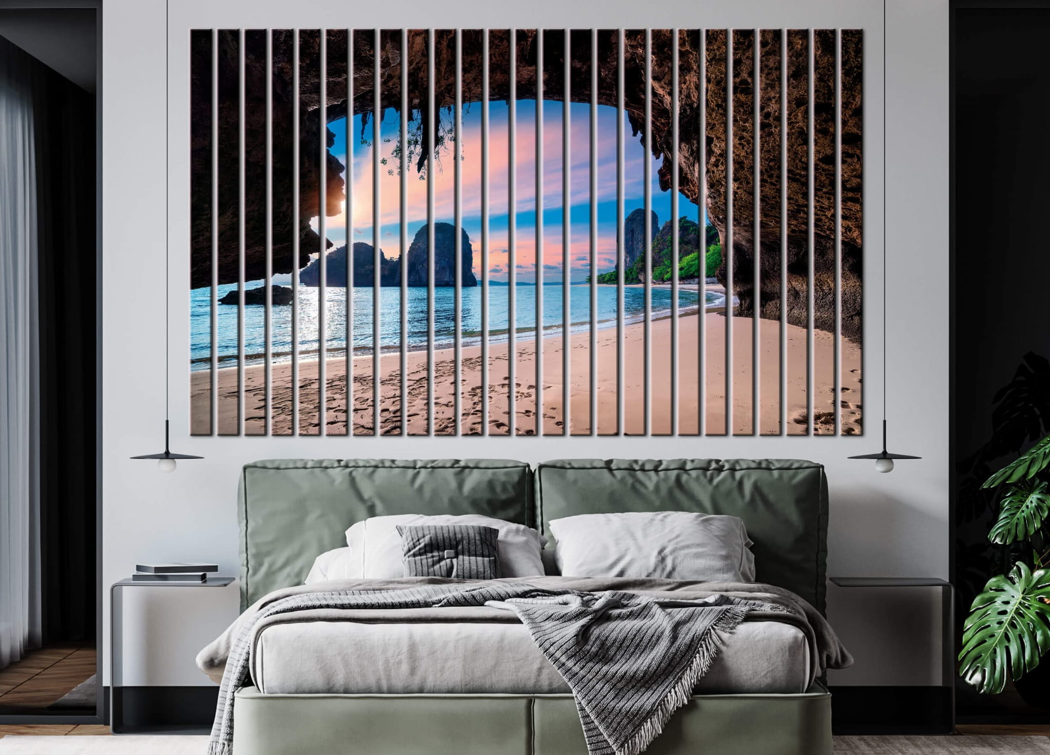 Dom • Katalog • LAMELE ŚCIENNE • Lamele ścienne PCV z nadrukiem Jaskinia wodna i zachód słońca