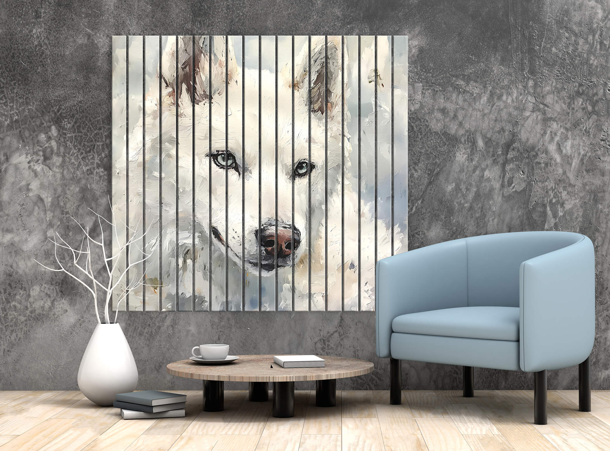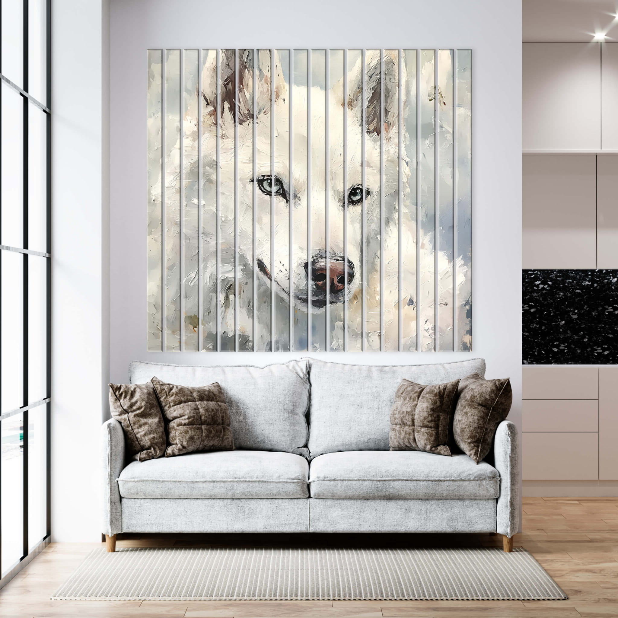Dom • Katalog • LAMELE ŚCIENNE • LAMELE ŚCIENNE SZKLANE • Białe lamele dekoracyjne szklane Wilk albinos