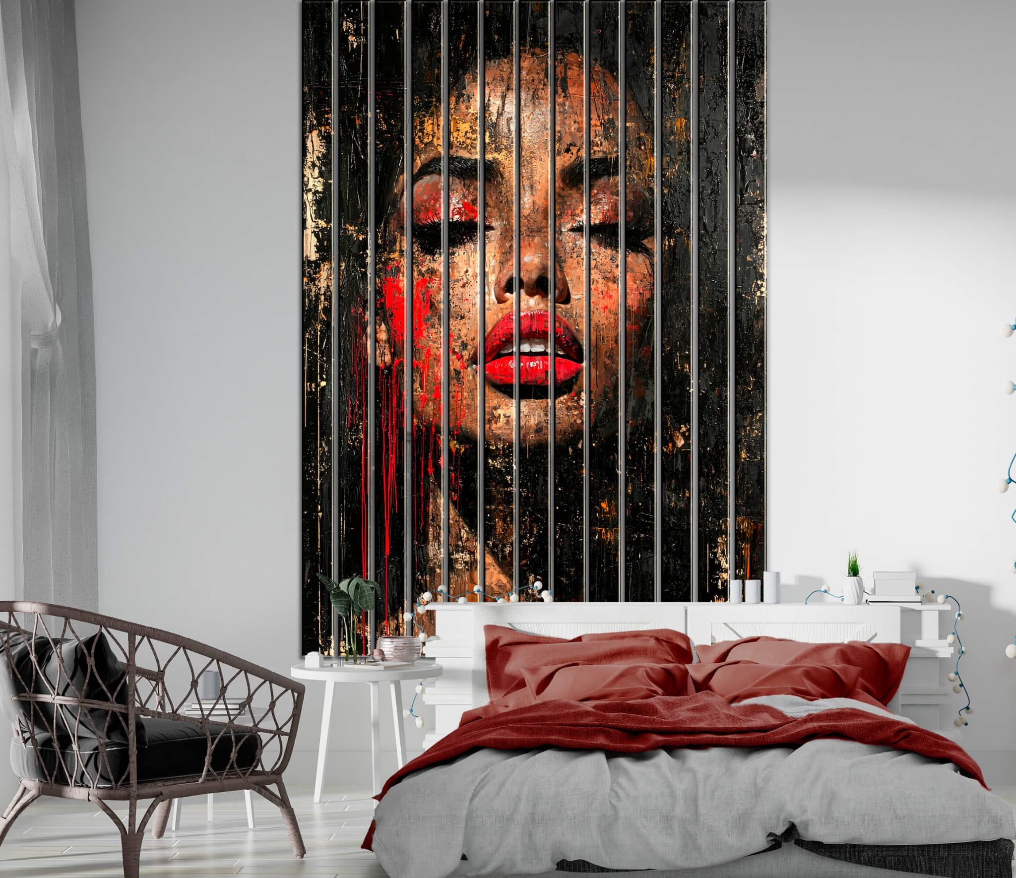 Dom • Katalog • LAMELE ŚCIENNE • LAMELE ŚCIENNE SZKLANE • Lamele dekoracyjne szklane Kobieca elegancja z czerwoną pomadką