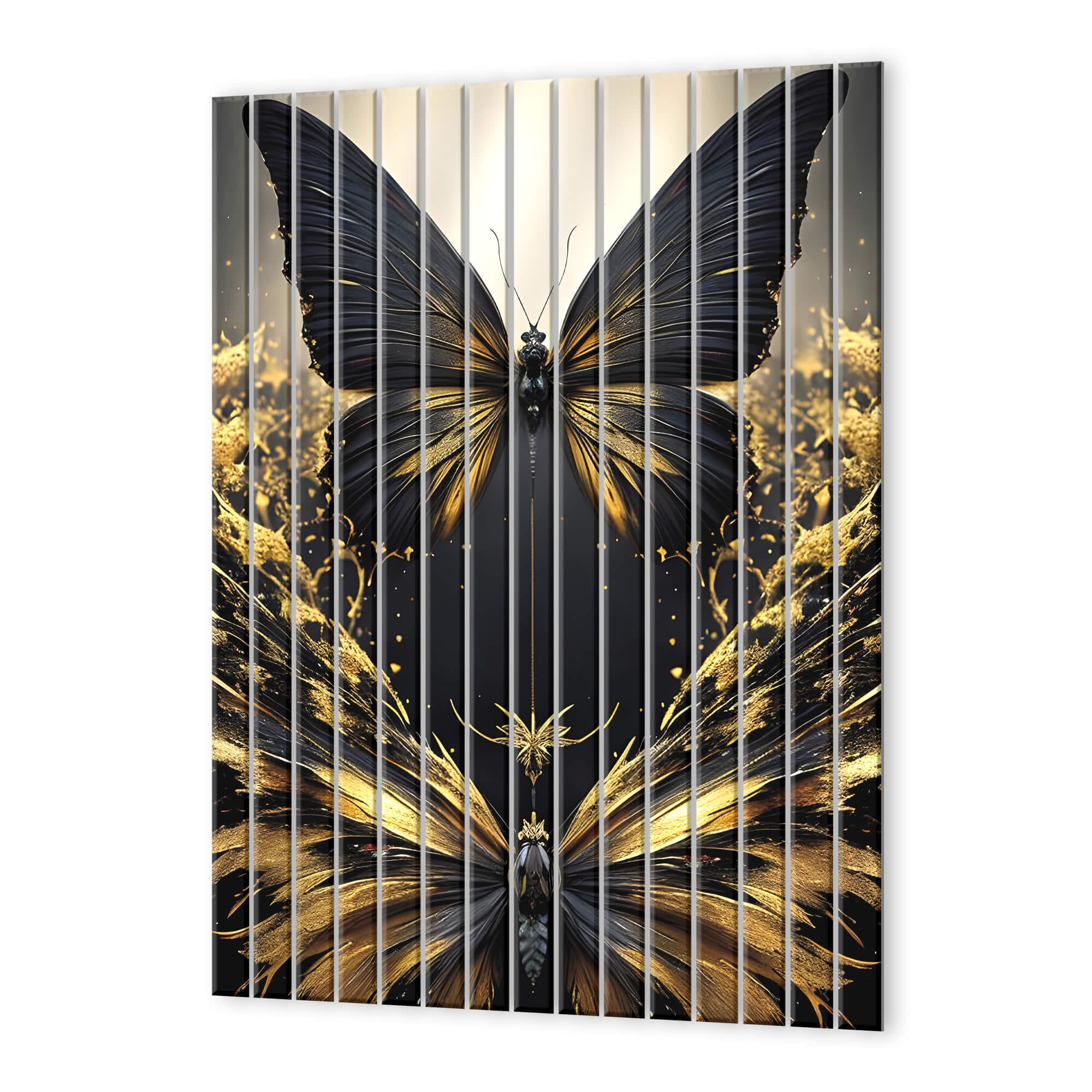 Dom • Katalog • LAMELE ŚCIENNE • LAMELE ŚCIENNE SZKLANE • Lamele ścienne szklane z nadrukiem Czarny motyl w złocie