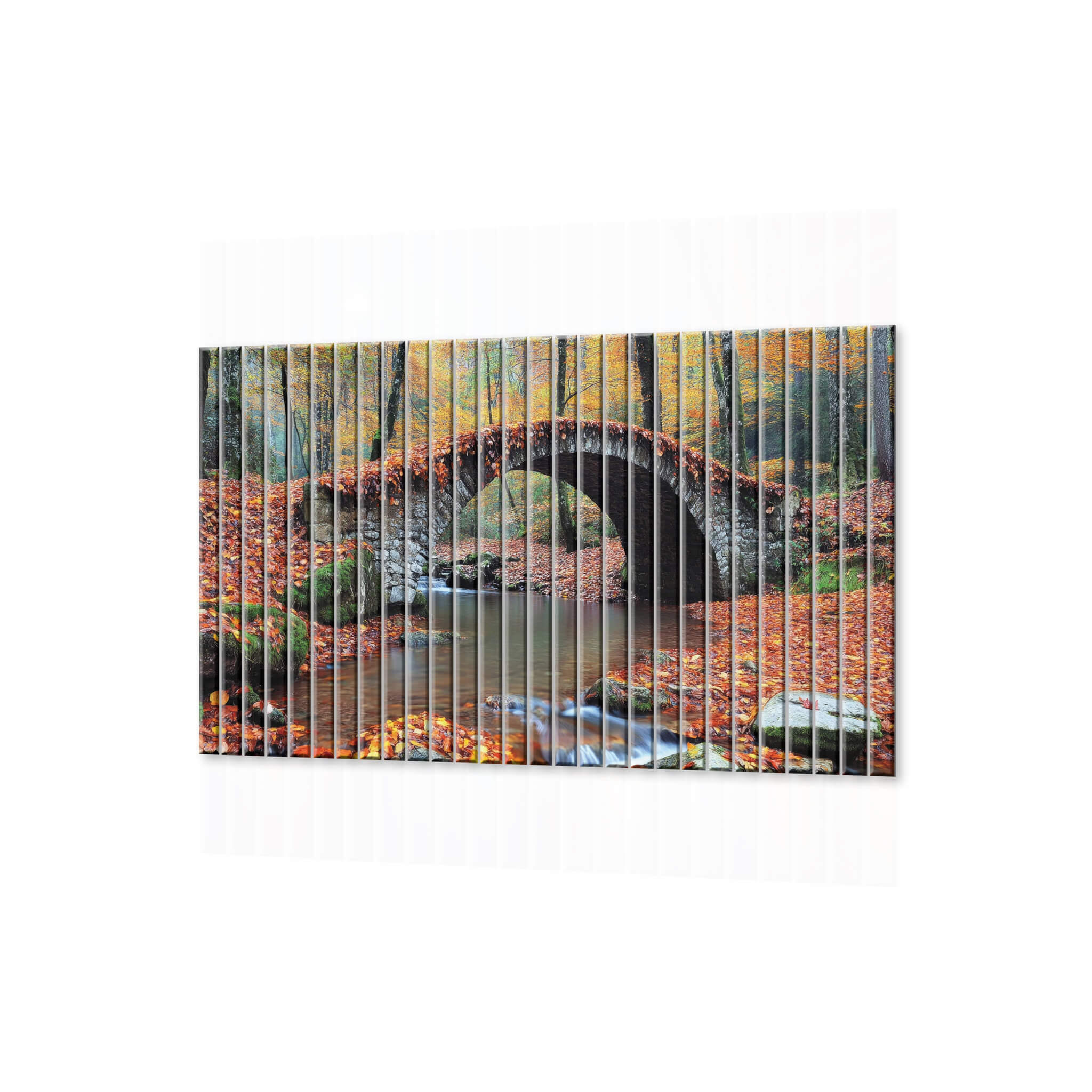 Dom • Katalog • LAMELE ŚCIENNE • LAMELE ŚCIENNE SZKLANE • Lamele ścienne szklane z nadrukiem Most w jesiennych liściach