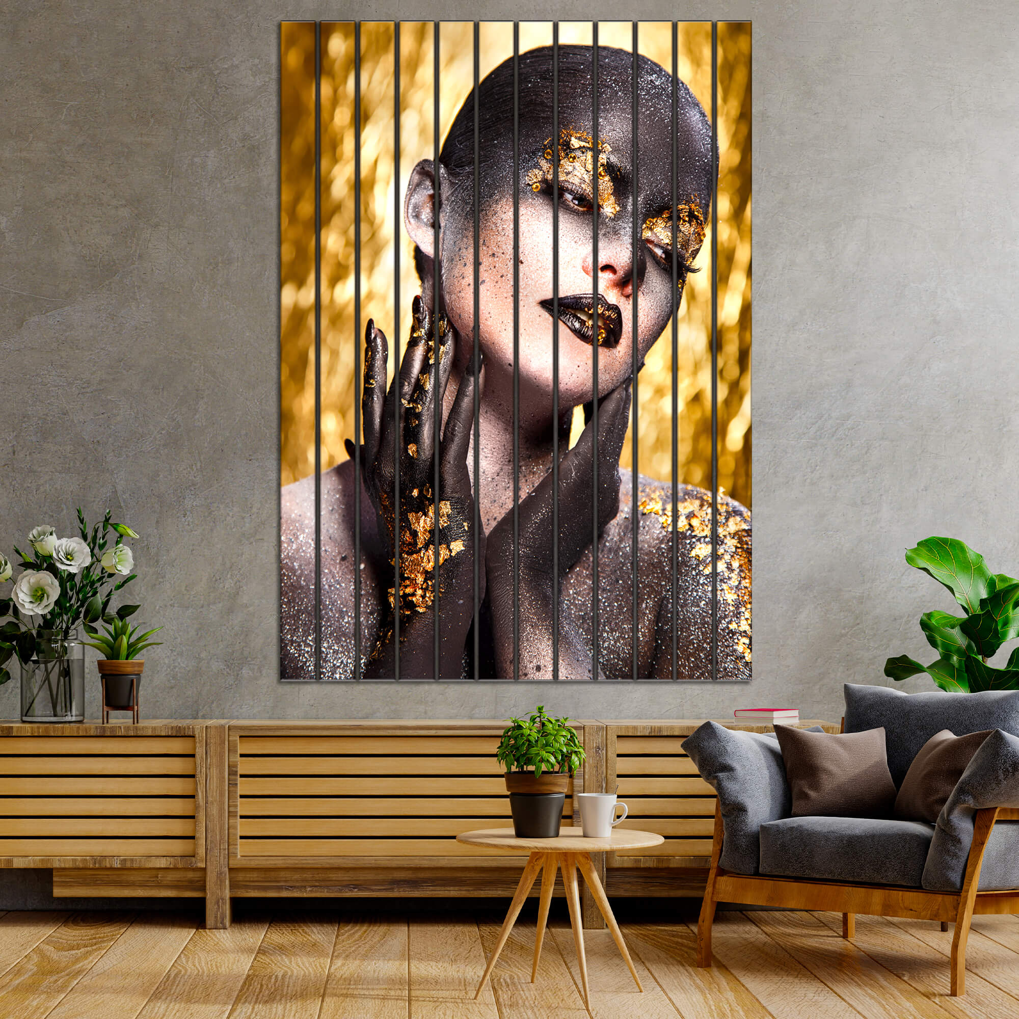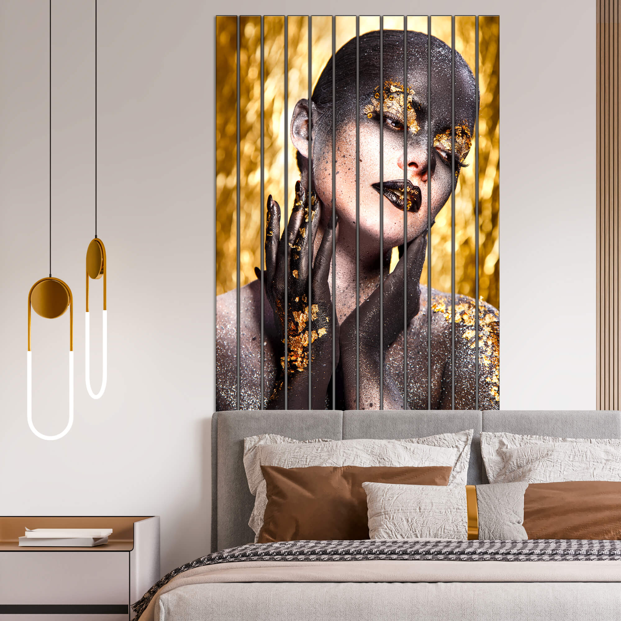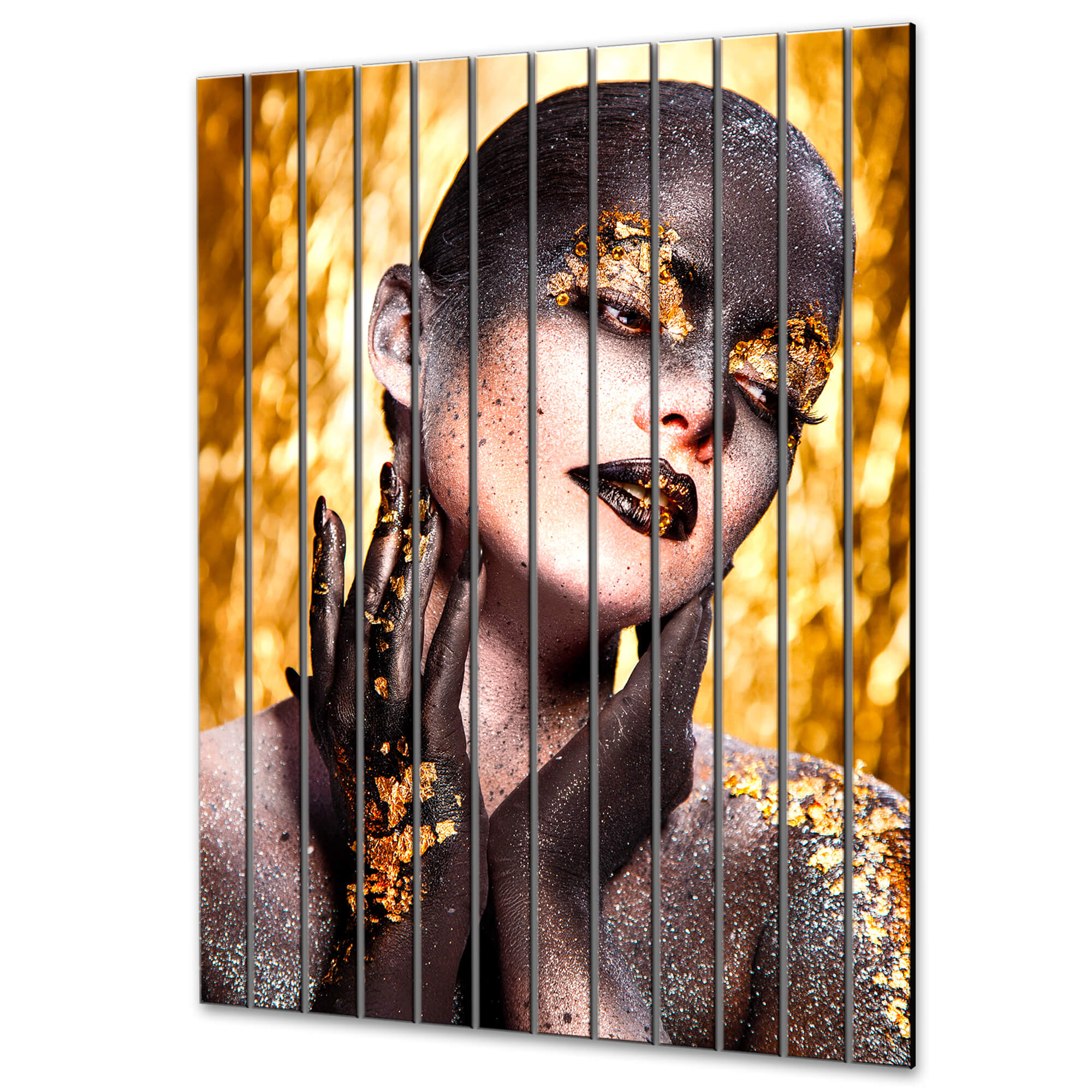 Dom • Katalog • LAMELE ŚCIENNE • LAMELE ŚCIENNE SZKLANE • Zlote lamele ścienne szklane z nadrukiem Złota, wyrafinowana twarz