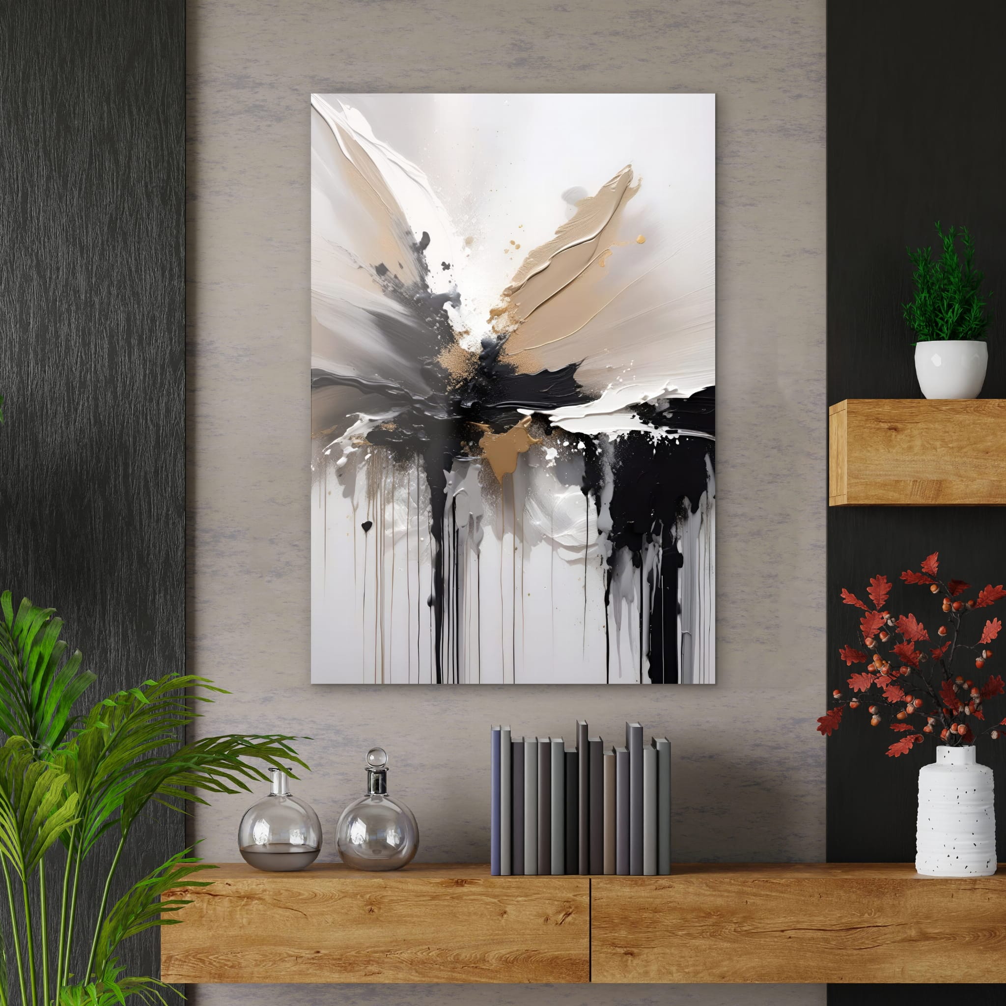 Dom • Katalog • OBRAZY NA SZKLE • ABSTRAKCJA • Obraz na szkle pionowy Złoto-Czarny Obraz