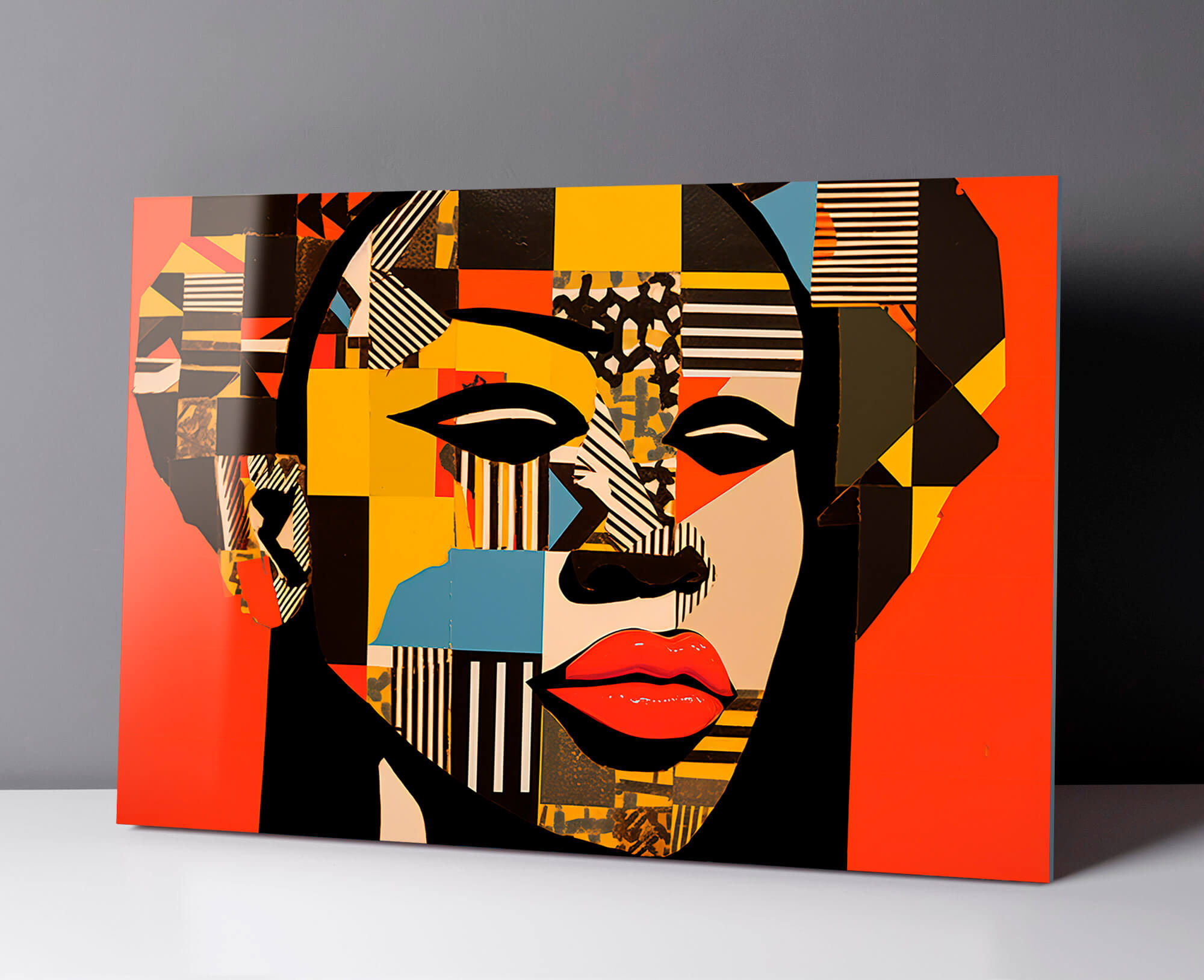 „Abstrakcyjny portret”. Ten obraz na szkle tętni życiem i przedstawia unikalną abstrakcyjną kompozycję, która doskonale odzwierciedla wszechstronność osobowości poprzez geometryczne kształty i żywą paletę kolorów. W nowoczesnym stylu ukazano twarz, która łączy intensywne odcienie czerwieni, żółci, błękitu i czerni, symbolizujące energię, siłę i indywidualność. Kontrastowe linie i geometryczne wzory nadają kompozycji dynamiki i nowoczesnego charakteru. Ten szklany obraz idealnie wkomponuje się w dekorację salonu, biura czy przestrzeni kreatywnej, dodając wnętrzu wyrazistości, stylu i unikalności.