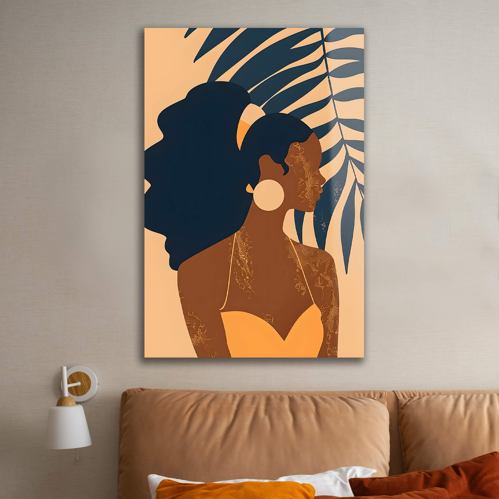 Obraz ten będzie świetnym dodatkiem do nowoczesnego wnętrza, tworząc atmosferę spokoju, elegancji i harmonii. Idealnie nadaje się do stylowych sypialni lub salonów, dodając pomieszczeniu kobiecego uroku i wyrafinowania.