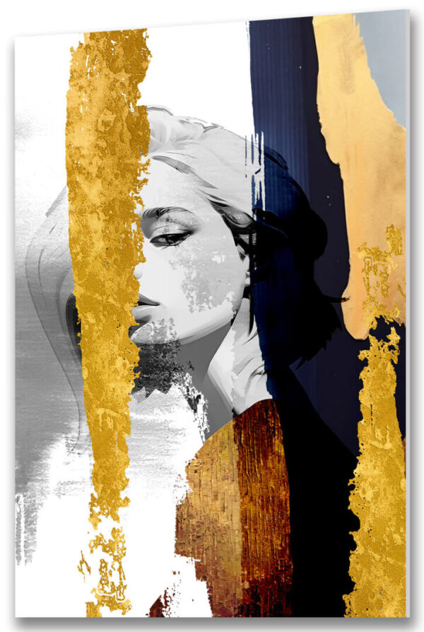 Obraz nowoczesny kobieta harmonizuje z aranżacjami, w których liczą się styl i charakter: nad sofą w salonie, przy toaletce w sypialni, w garderobie jako biżuteryjny akcent, a także w nowoczesnym biurze, gdzie podkreśla prestiż i wyrafinowanie.