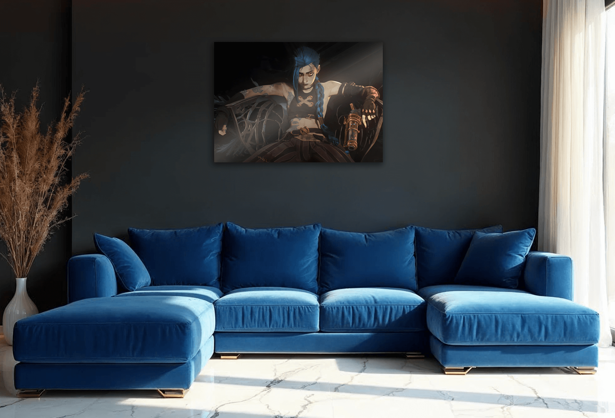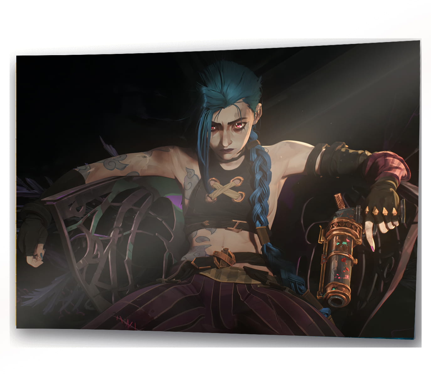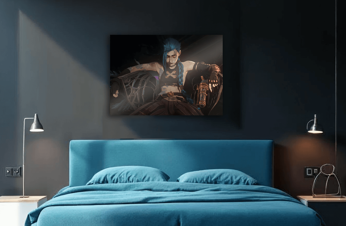 „Arcane Jinx – moc, chaos i niezależność” to niezwykła dekoracja ścienna inspirowana kultową postacią z serialu Arcane i gry League of Legends. Dynamiczna kompozycja przedstawia Jinx w intensywnych barwach, oddających jej energię, szaleństwo i wolność. Szklana powierzchnia obrazu nadaje mu głębi, połysku i nowoczesnego charakteru, dzięki czemu doskonale wpasowuje się w przestrzenie urządzone w stylu gamingowym, industrialnym lub loft.