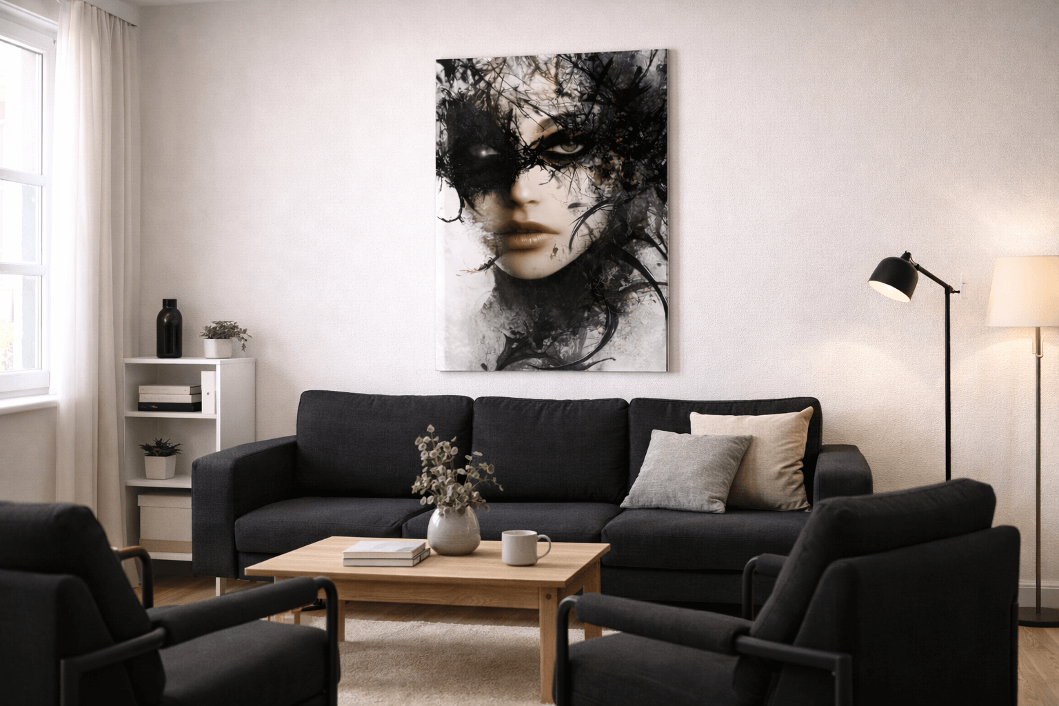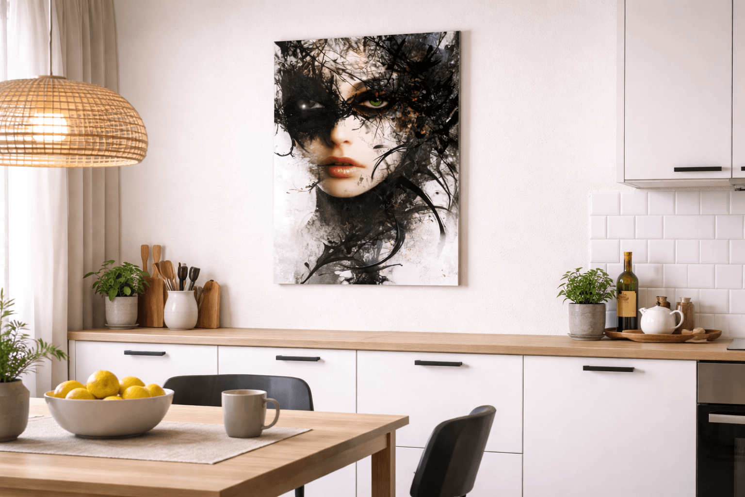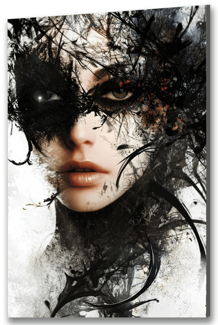 „Mroczna elegancja” to wyjątkowy obraz na szkle glamour, który łączy nowoczesną formę z tajemniczą głębią i wyrafinowanym charakterem. Artystyczny portret kobiecej twarzy, zanurzony w kontrastach światła i cienia oraz wzbogacony złotymi akcentami, tworzy intrygującą i pełną emocji kompozycję. Ten obraz szklany glamour przyciąga uwagę połączeniem czerni, bieli i złota, nadając wnętrzu intensywności, elegancji i nowoczesnego wyrazu. Mroczna stylistyka portretu podkreśla indywidualność dekoracji i sprawia, że obraz staje się wyrazistym elementem aranżacji.