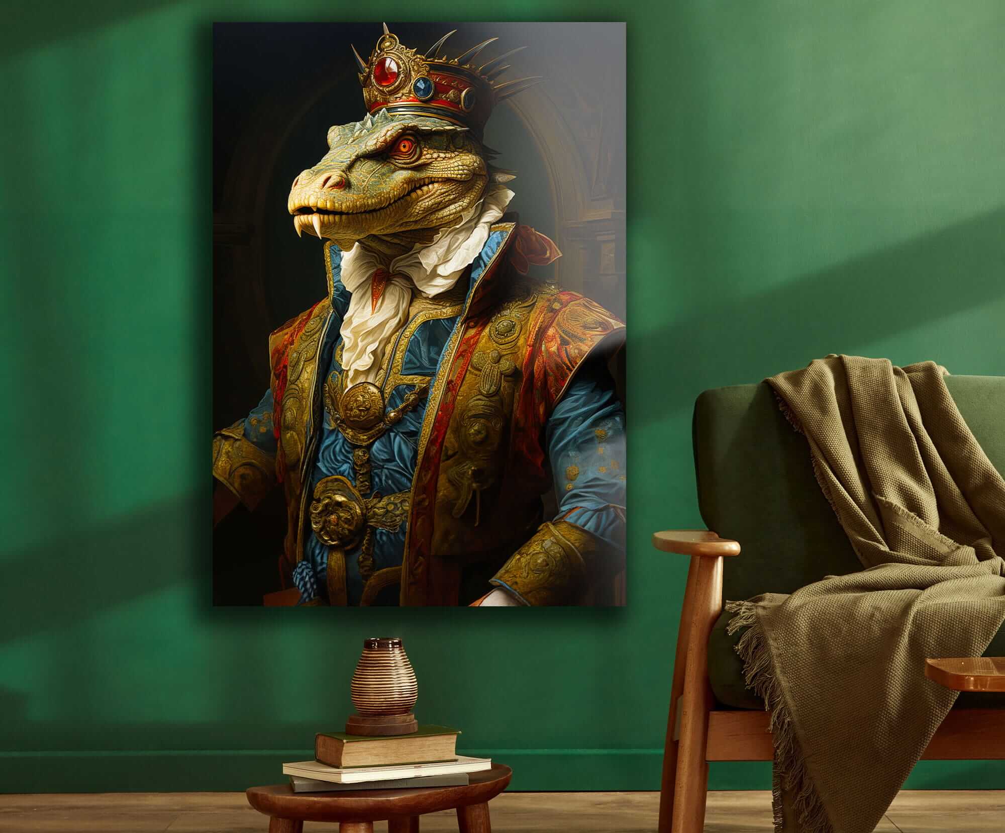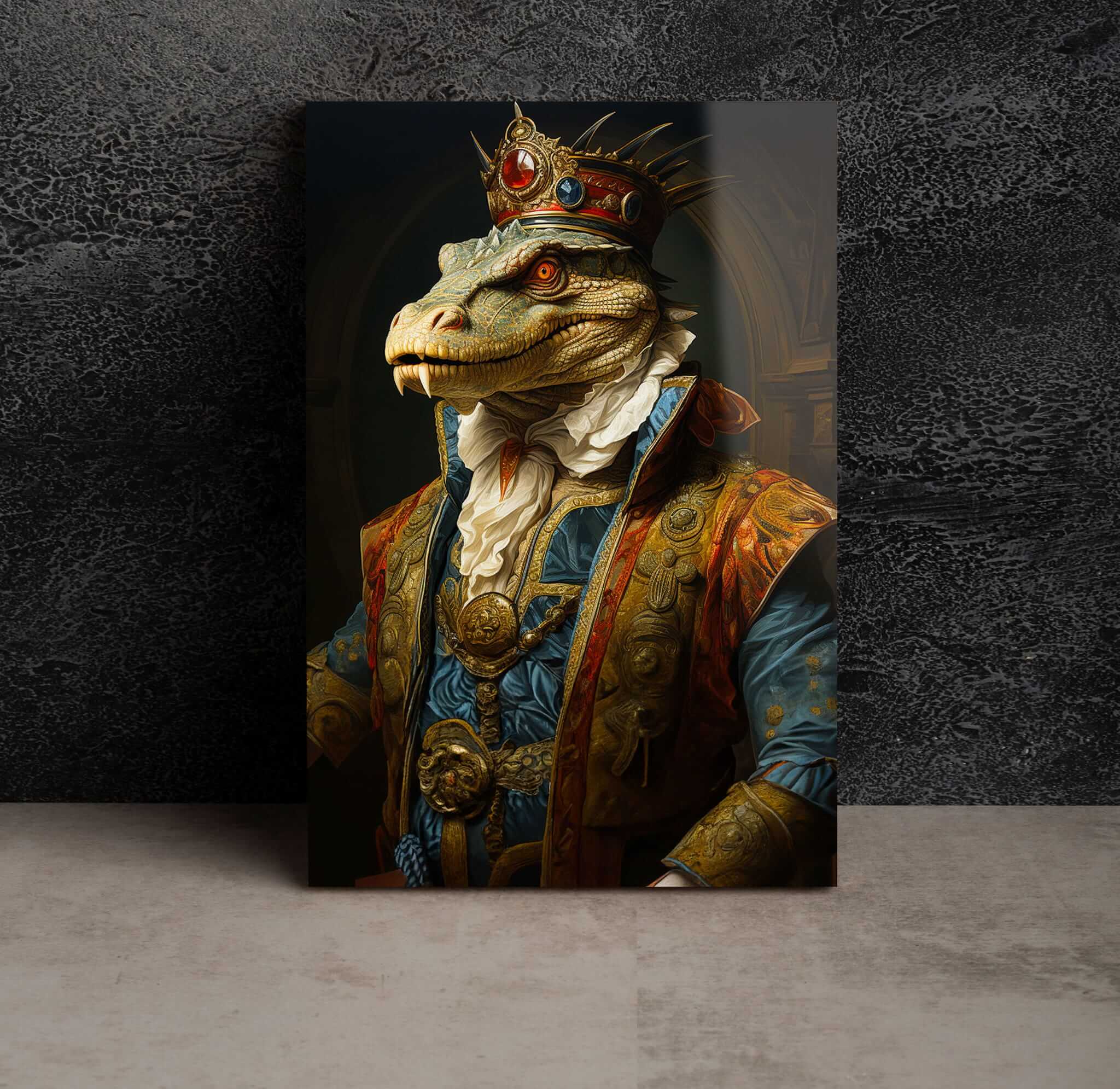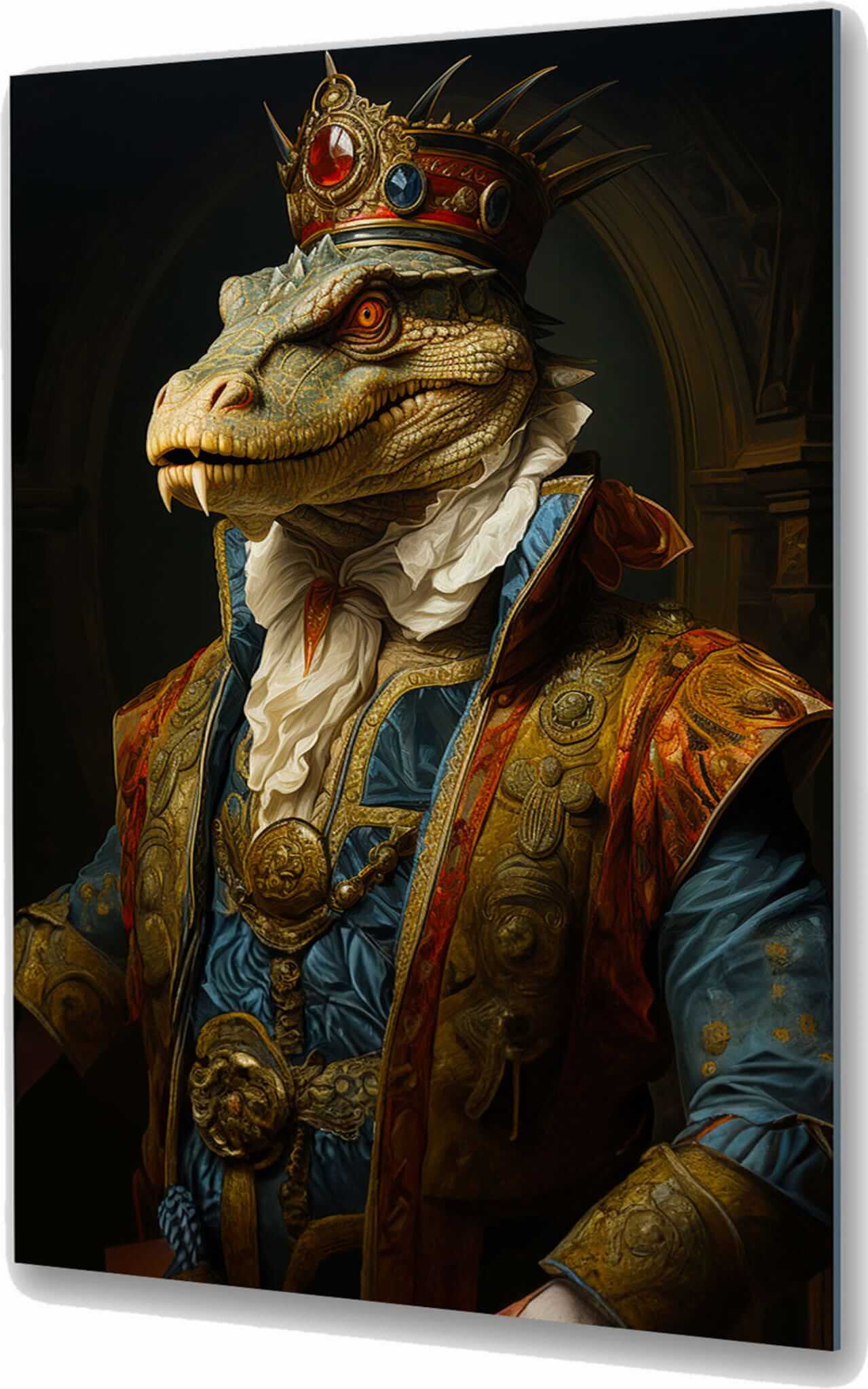 „Obraz węża. Rok Węża”. Ten wykwintny obraz na szkle przedstawia majestatycznego węża, który jest symbolem Roku Węża według chińskiego horoskopu. Wąż jest przedstawiony w królewskim wizerunku: z koroną, wykwintnym strojem i szczegółami, które podkreślają jego mądrość, elegancję i urok.