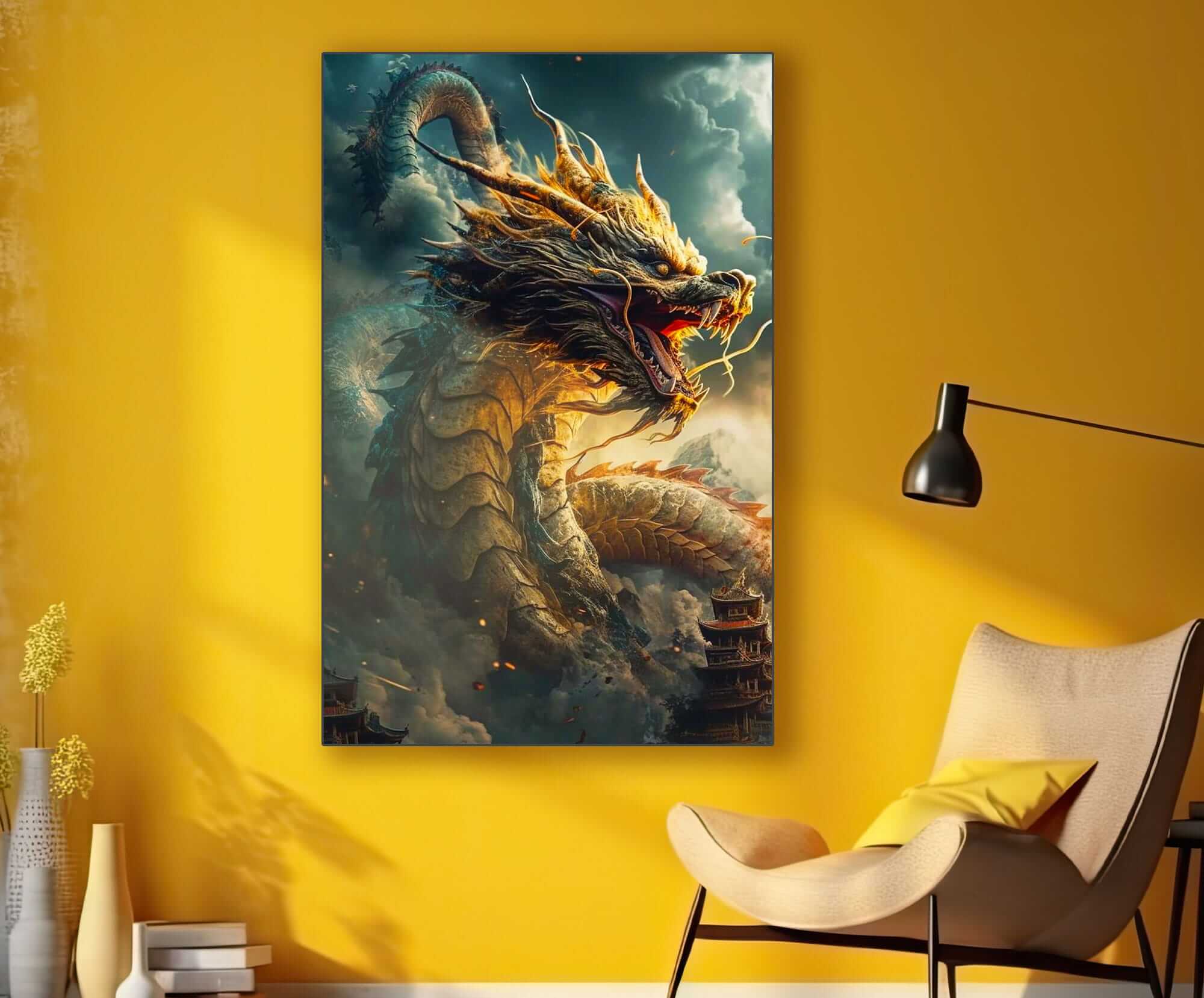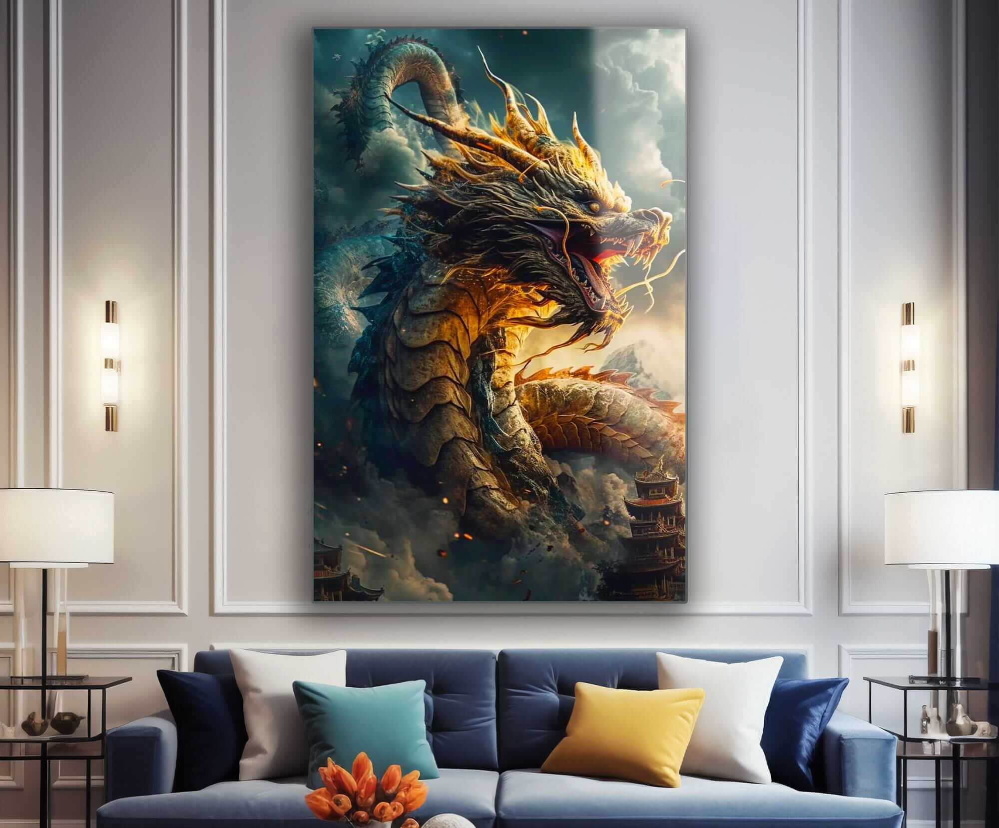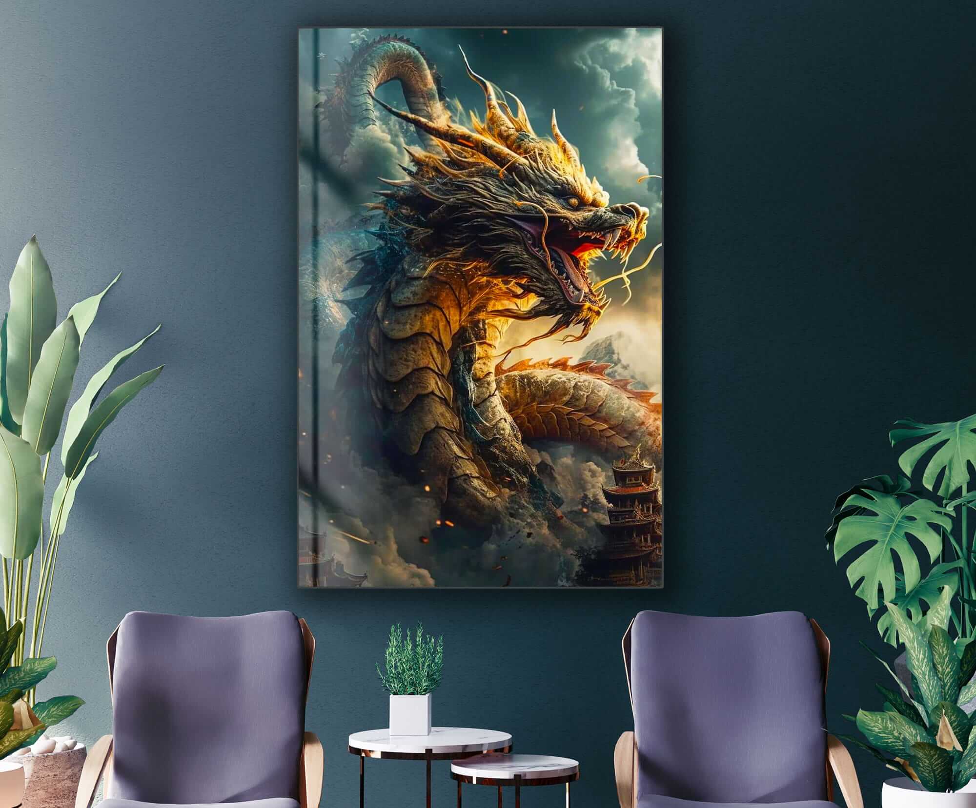 „Smok – Król Roku. Rok Smoka”. Ten fascynujący obraz na szkle przedstawia majestatycznego smoka – symbol mocy, mądrości i szczęścia według chińskiego horoskopu. Smok prezentuje się w uderzający sposób: jego złote łuski lśnią w świetle, a potężne skrzydła i ognisty oddech podkreślają jego siłę i energię. Fantazyjne tło z chińskimi pagodami i chmurami dodaje obrazowi głębi i atmosfery. Dzięki bogatej kolorystyce i detalom, ten obraz szklany stanie się centralnym elementem wnętrza, wnosząc do niego dynamikę, harmonię i symboliczne znaczenie. Jest idealny dla osób ceniących symbolikę chińskiego horoskopu i sztukę z energetycznym przesłaniem.