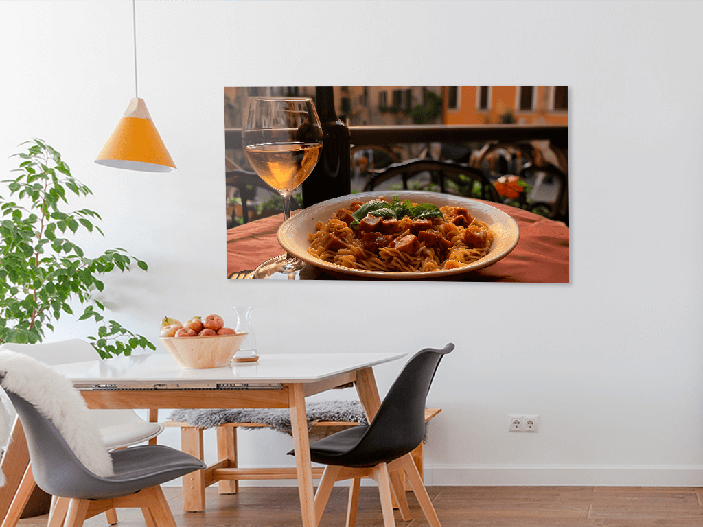 „Smak wieczoru” to subtelna i elegancka dekoracja, która wprowadza do wnętrza atmosferę spokoju i wyrafinowania. Szklany obraz ukazuje romantyczną scenę, idealną do salonu czy jadalni, gdzie doda ciepła i stylu. Grafika na szkle doskonale komponuje się w różnych przestrzeniach, a jej trwałość i odporność na wilgoć sprawiają, że będzie wyglądać świetnie także w kuchni. Szklane obrazy to doskonały wybór dla osób, które pragną wprowadzić nowoczesny akcent do swojego wnętrza.