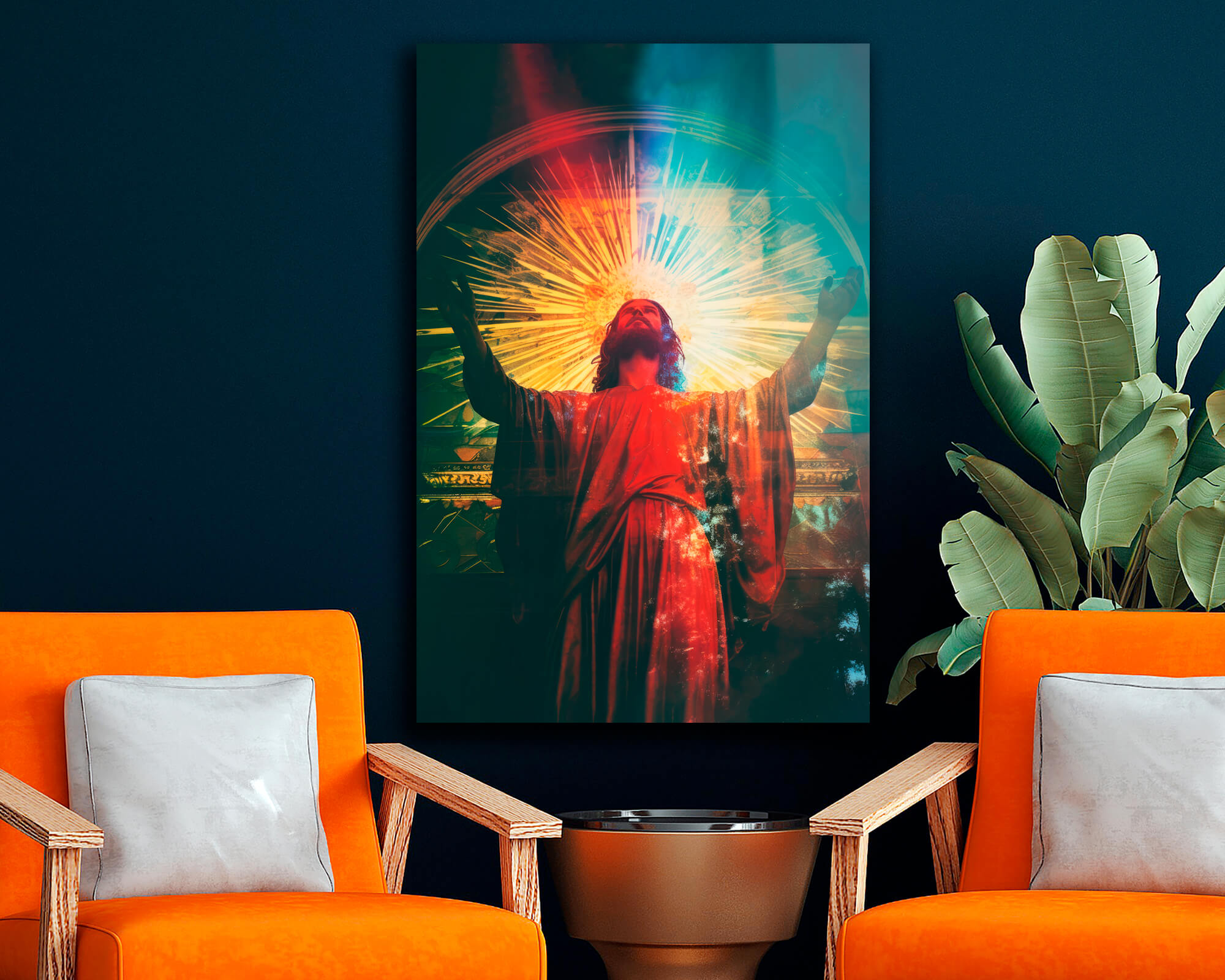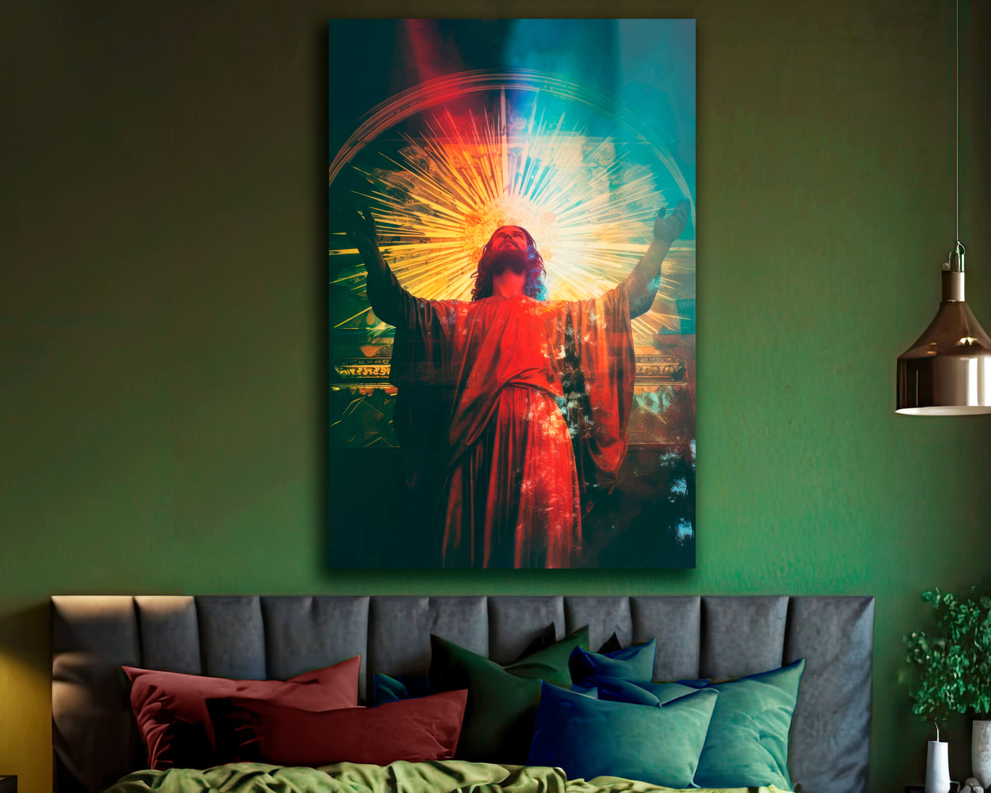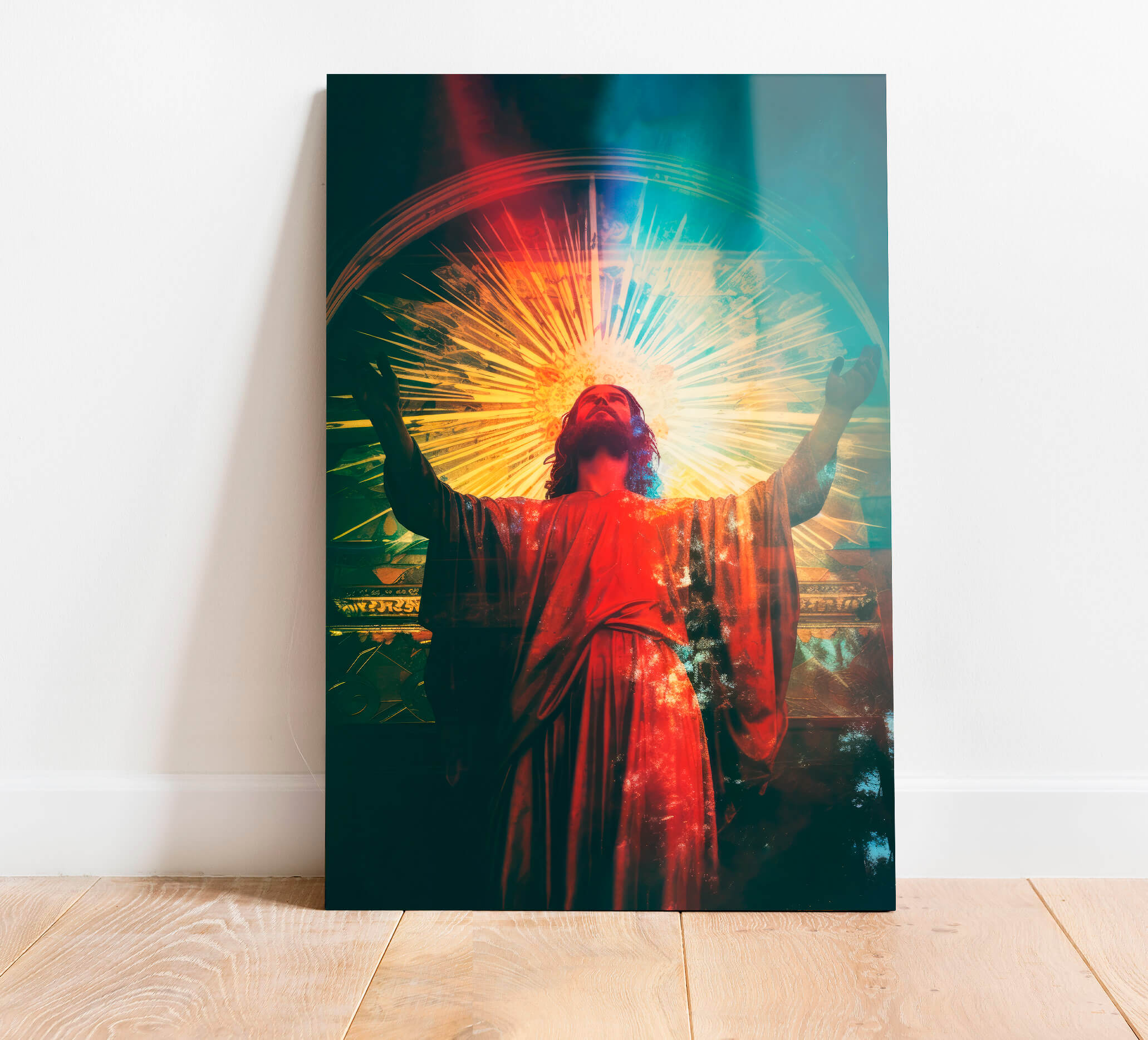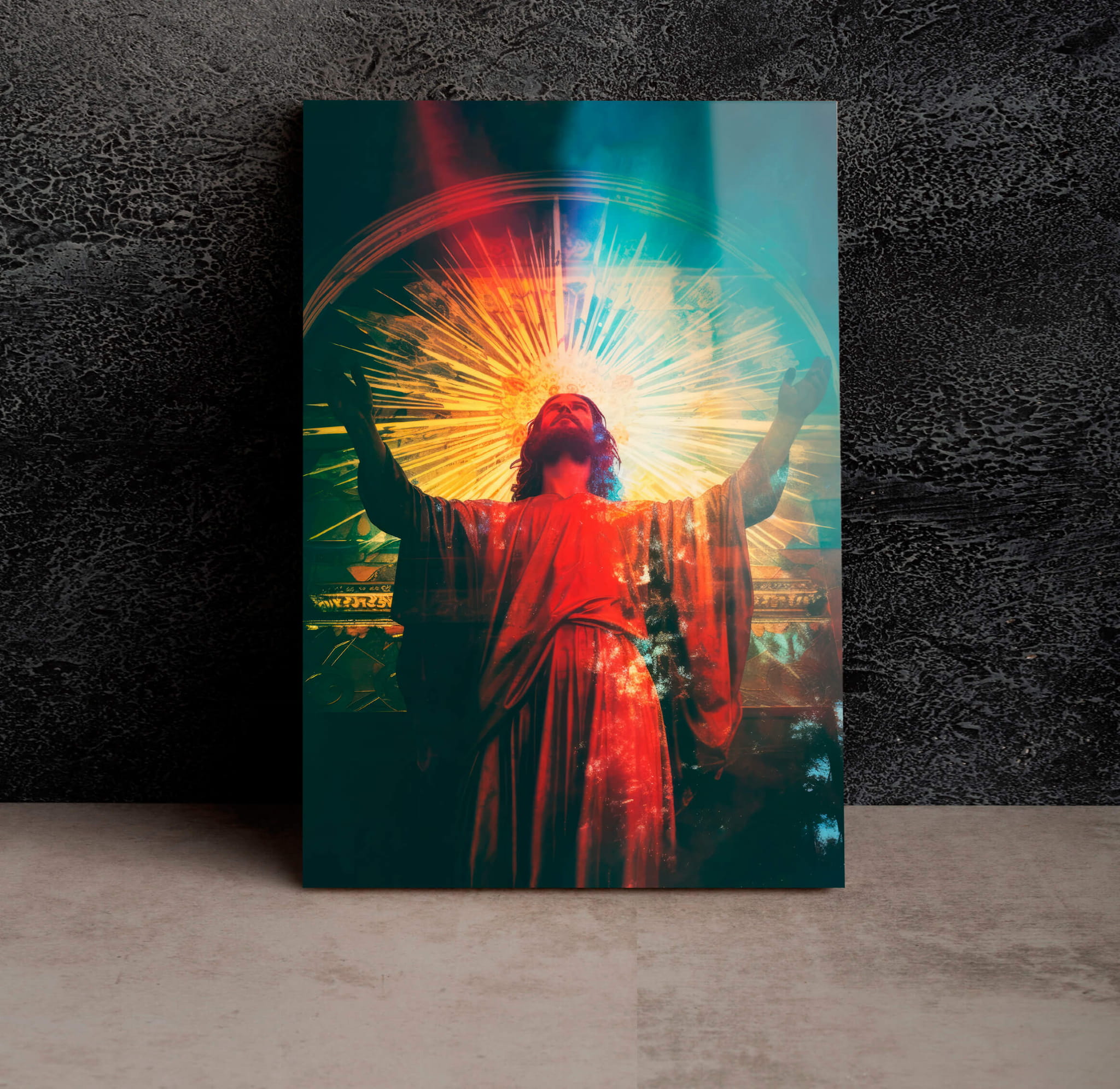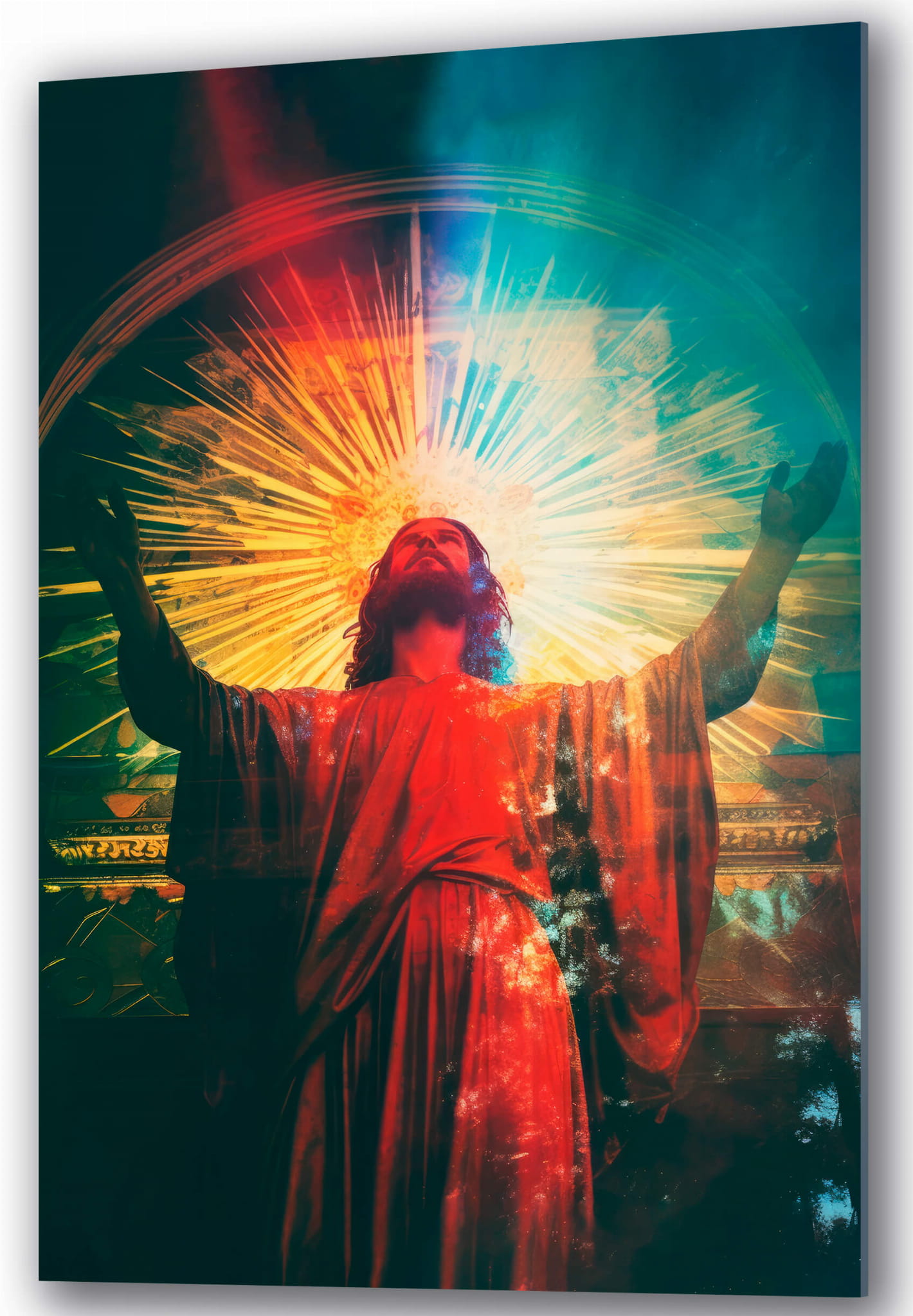 „Chrystus w Promieniach Światłości” jest uderzającym symbolem duchowego światła, siły i nadziei. Wizerunek Jezusa z uniesionymi ramionami, otoczonego blaskiem niebiańskiego światła, przypomina nam o boskiej obecności i łasce, która otacza nas wszystkich. Jego wizerunek symbolizuje błogosławieństwo, miłość i przewodnictwo pochodzące z nieba.