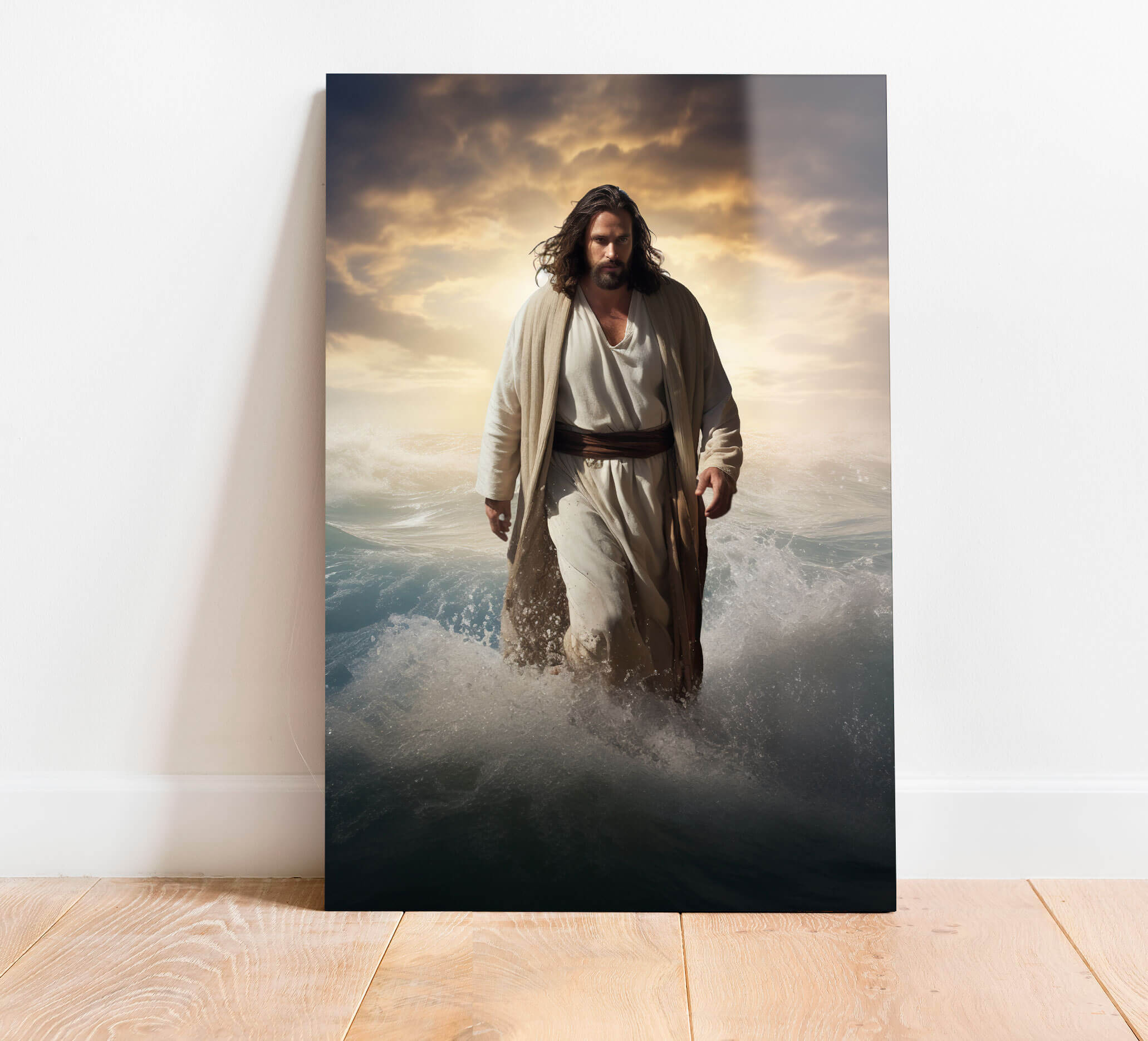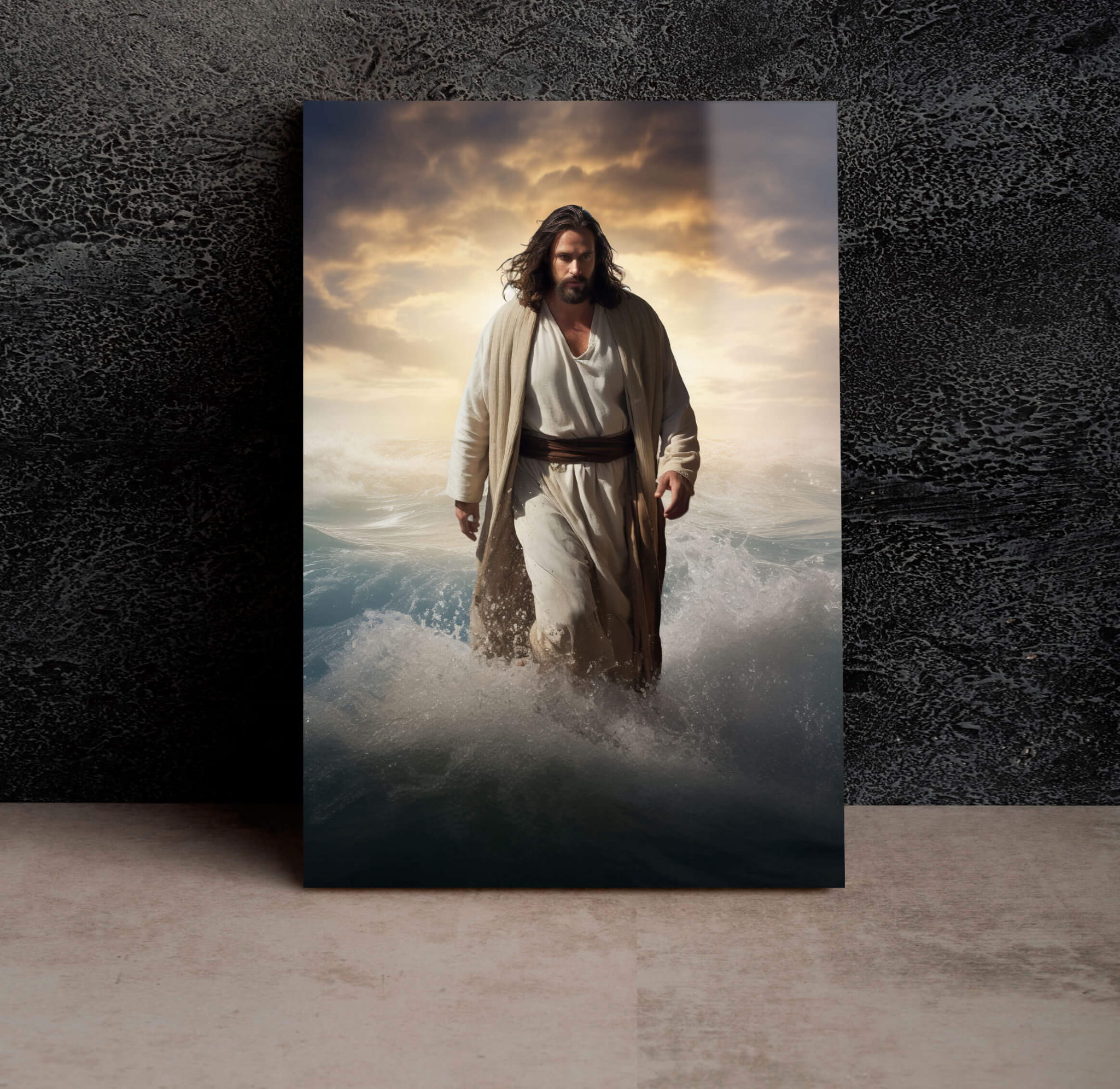 „Cuda Jezusa: Chodzenie po wodzie” to wyjątkowy symbol wiary, nadziei i Bożego cudu. Wizerunek Jezusa pewnie kroczącego po falach pod niebiańskim światłem przypomina nam o Jego boskiej mocy i duchowym przewodnictwie. Obraz ten reprezentuje niezachwianą wiarę i zachęca nas do zaufania Bogu nawet w najtrudniejszych okolicznościach.