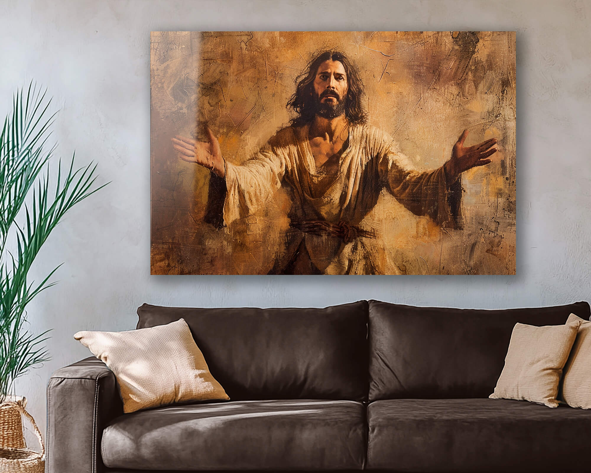 „Jezus Miłosierny” symbolizuje boską moc, duchowe światło i nadzieję. Wizerunek Jezusa Chrystusa z otwartymi ramionami przekazuje poczucie akceptacji, miłości i łaski. Jego przenikliwe spojrzenie i wyciągnięte ramiona przypominają nam o mocy Słowa Bożego, które prowadzi nas do harmonii i pokoju.