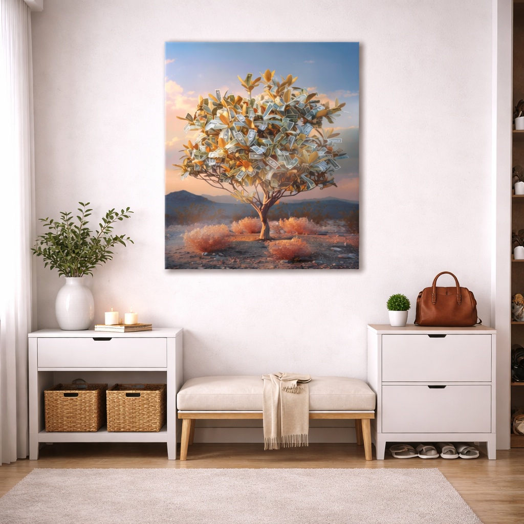 Błyszcząca, szklana powierzchnia wzmacnia głębię kolorów i nadaje obrazowi nowoczesny wygląd, dzięki czemu doskonale komponuje się zarówno z wnętrzami domowymi, jak i przestrzeniami biurowymi. „Symbol obfitości” to idealny wybór dla osób, które chcą wprowadzić do swojego otoczenia inspirujący akcent, sprzyjający pomyślności, równowadze i estetyce na najwyższym poziomie.