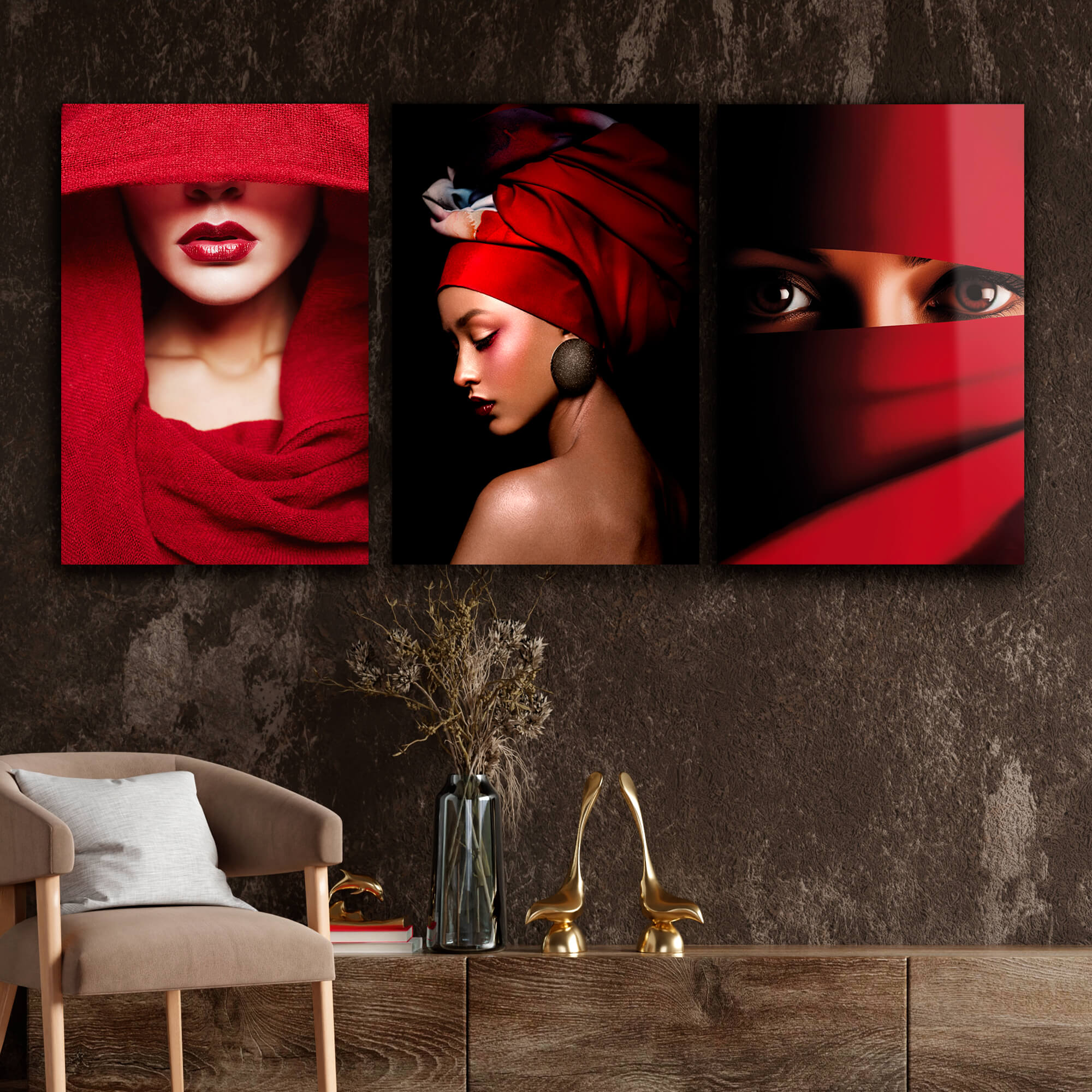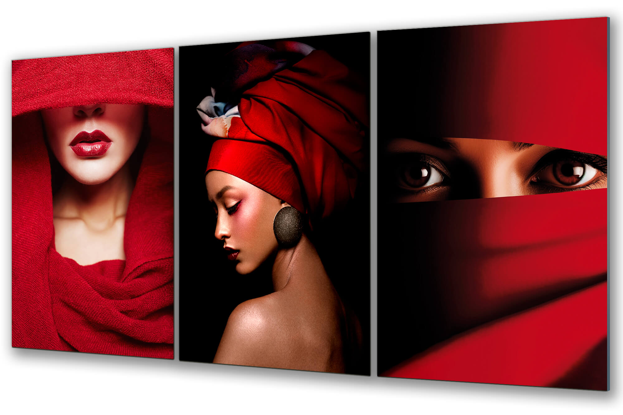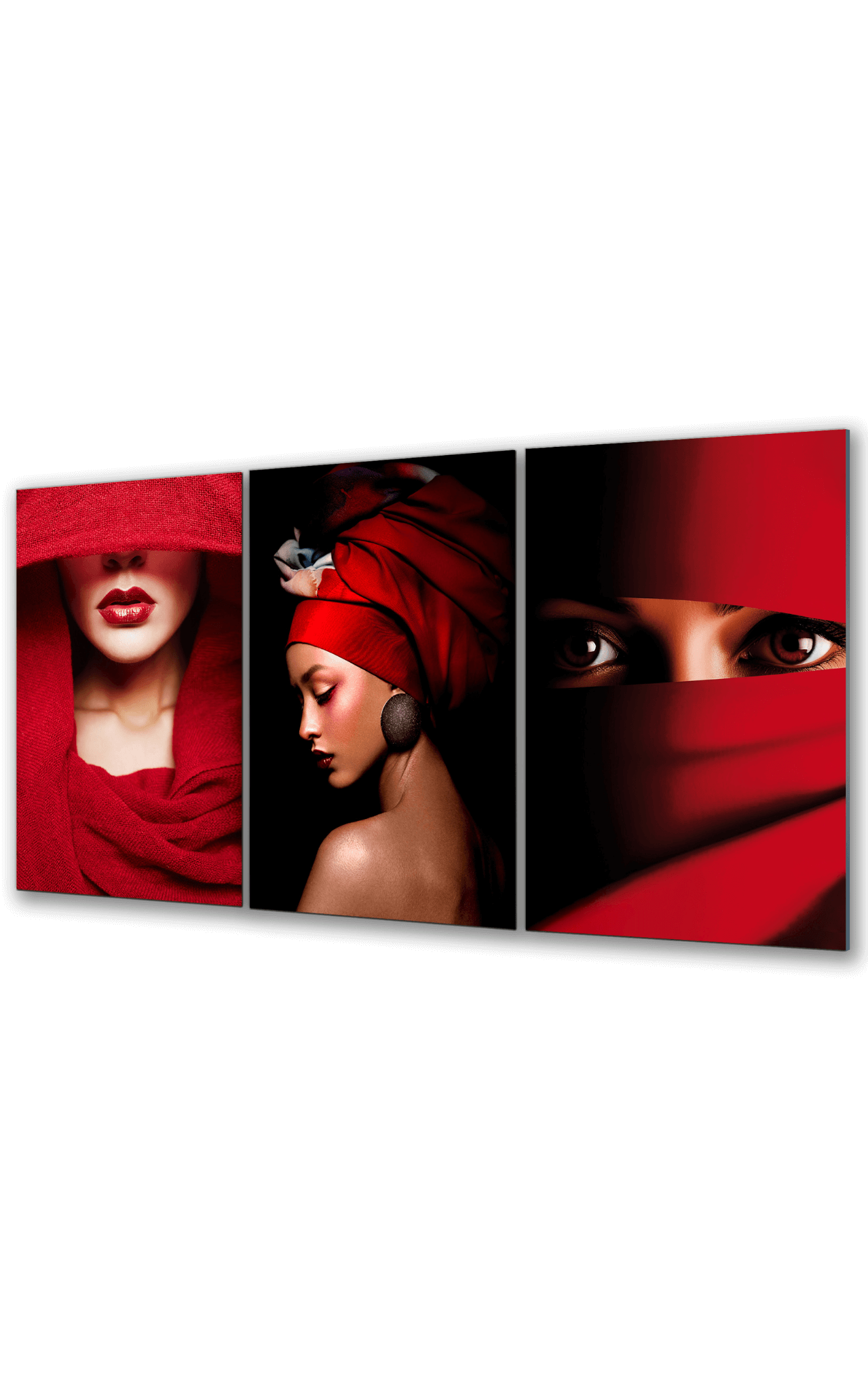 Dom • Katalog • OBRAZY NA SZKLE • TRYPTYKI 3W1 • Obraz na szkle Tryptyk Czerwona Pasja – Urok i Piękno