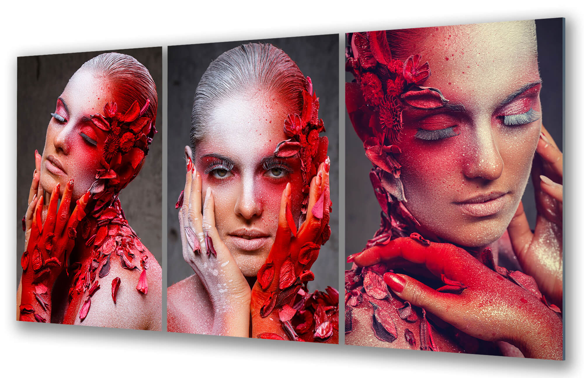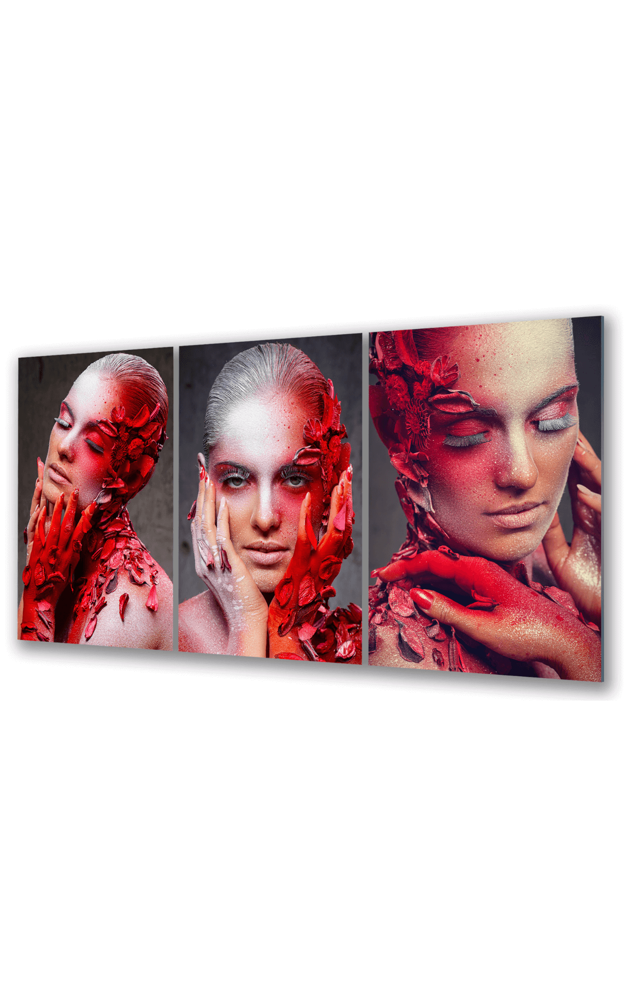 Dom • Katalog • OBRAZY NA SZKLE • TRYPTYKI 3W1 • Obraz na szkle Tryptyk Kwiatowy Urok – Gracja i Czar