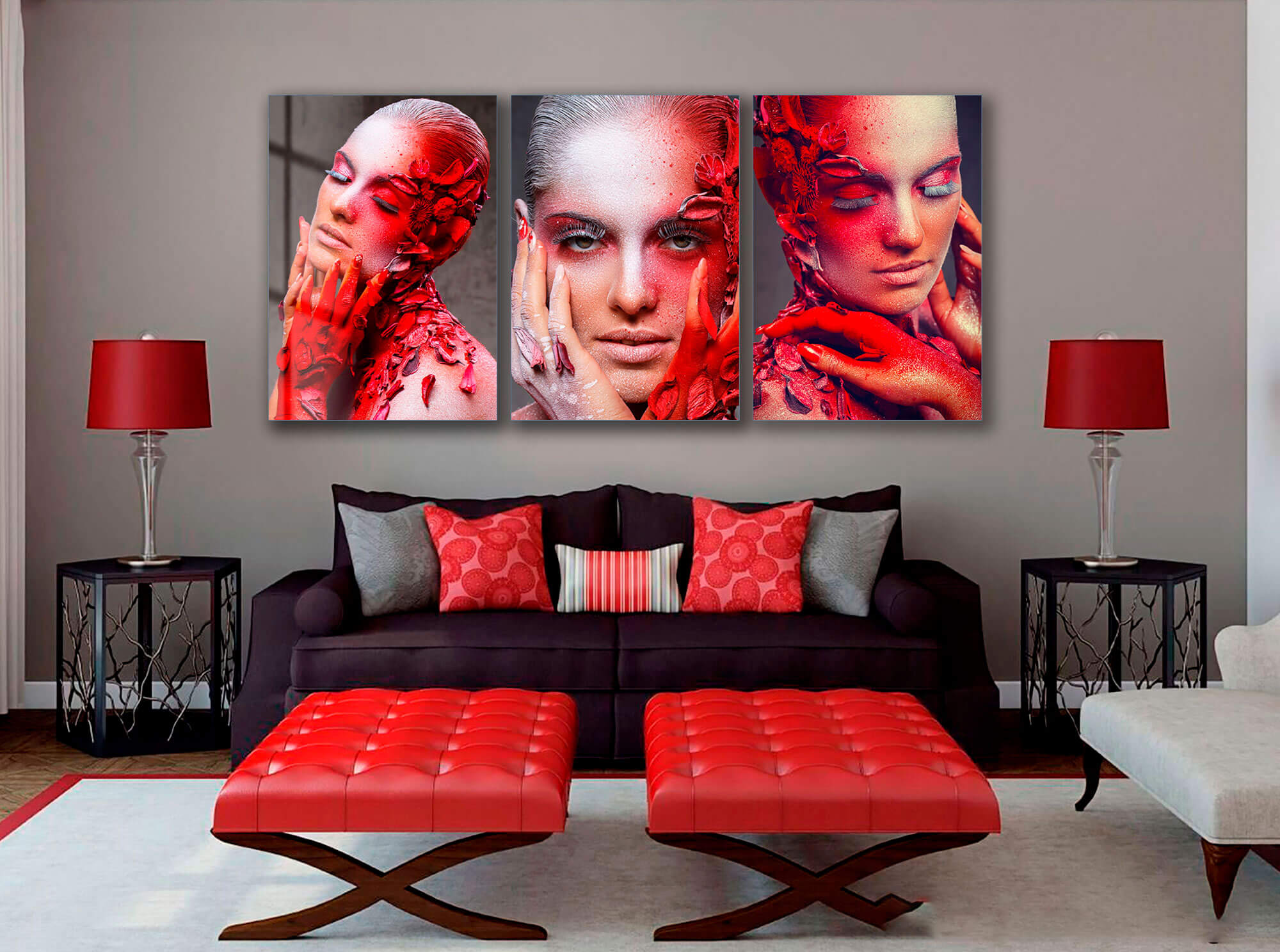 „Kwiatowy Urok – Gracja i Czar” to wyjątkowy triptych, który łączy subtelność kobiecej urody z pięknem natury. Elegancka kobieta w różnych pozach, ozdobiona delikatnymi kwiatami, emanuje wdziękiem i harmonią. To nowoczesny duży obraz do salonu, który wprowadza do wnętrza lekkość i artystyczną finezję. Idealnie sprawdzi się także jako obraz do przedpokoju, dekoracja do kuchni lub stylowy akcent do sypialni, nadając przestrzeni wyrafinowanego charakteru.