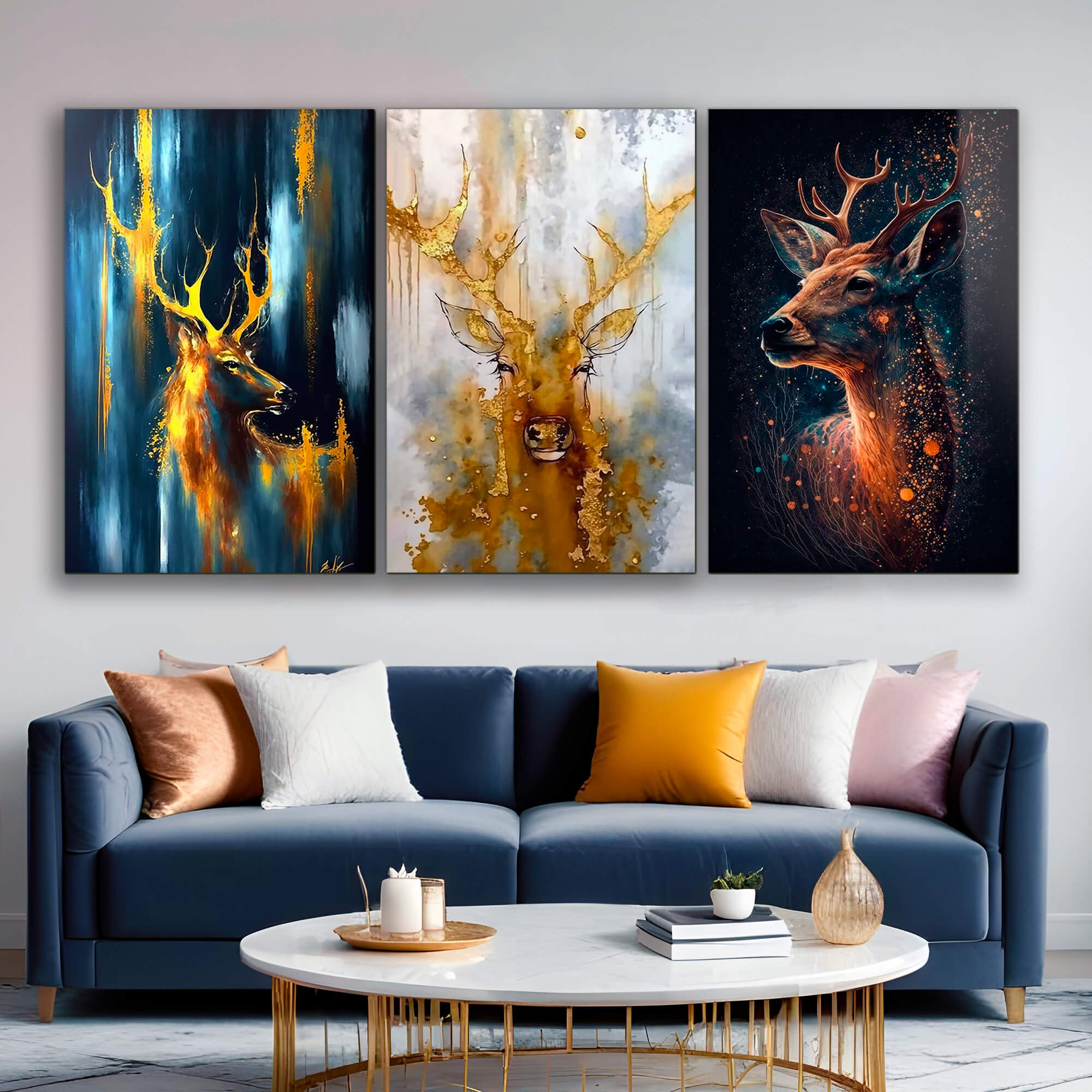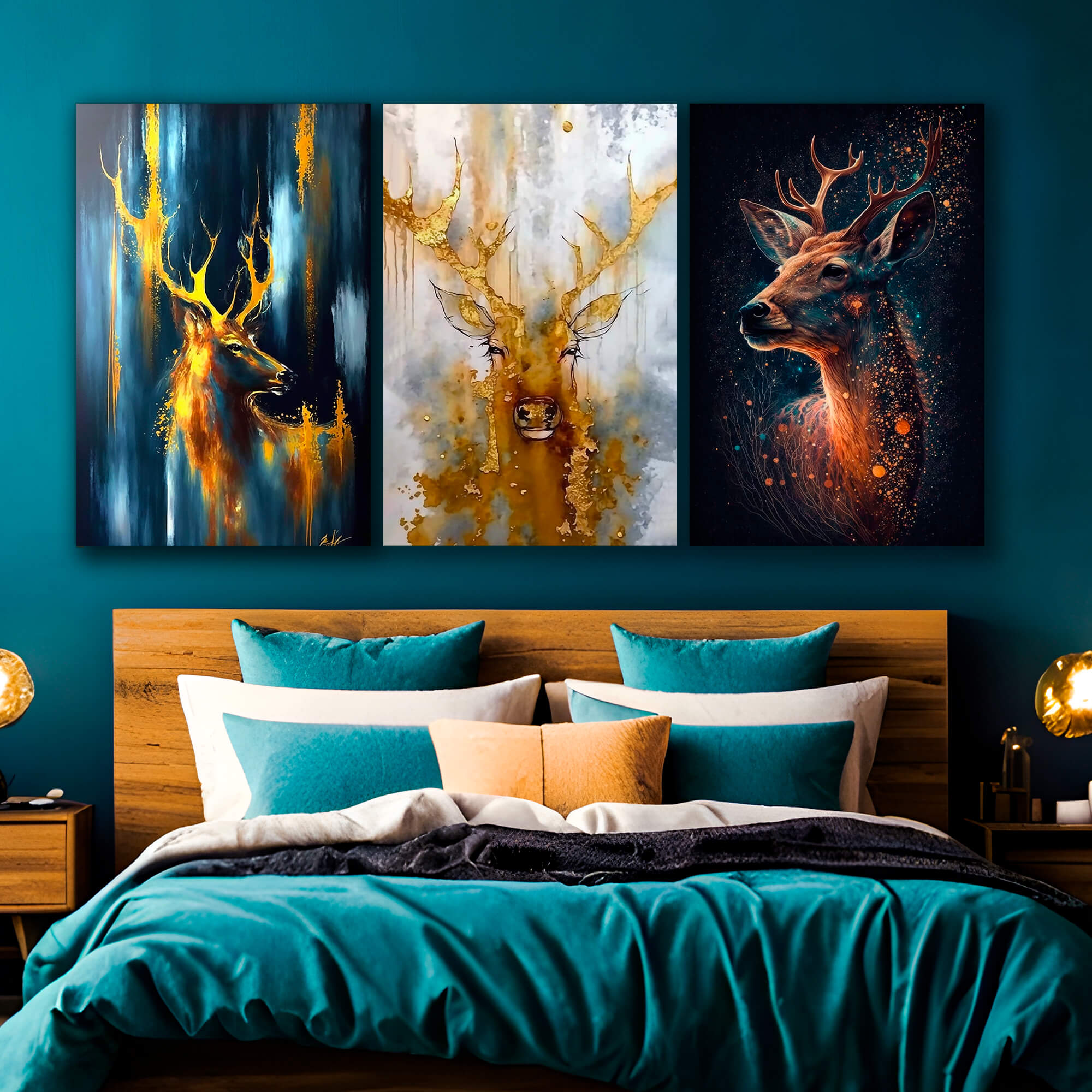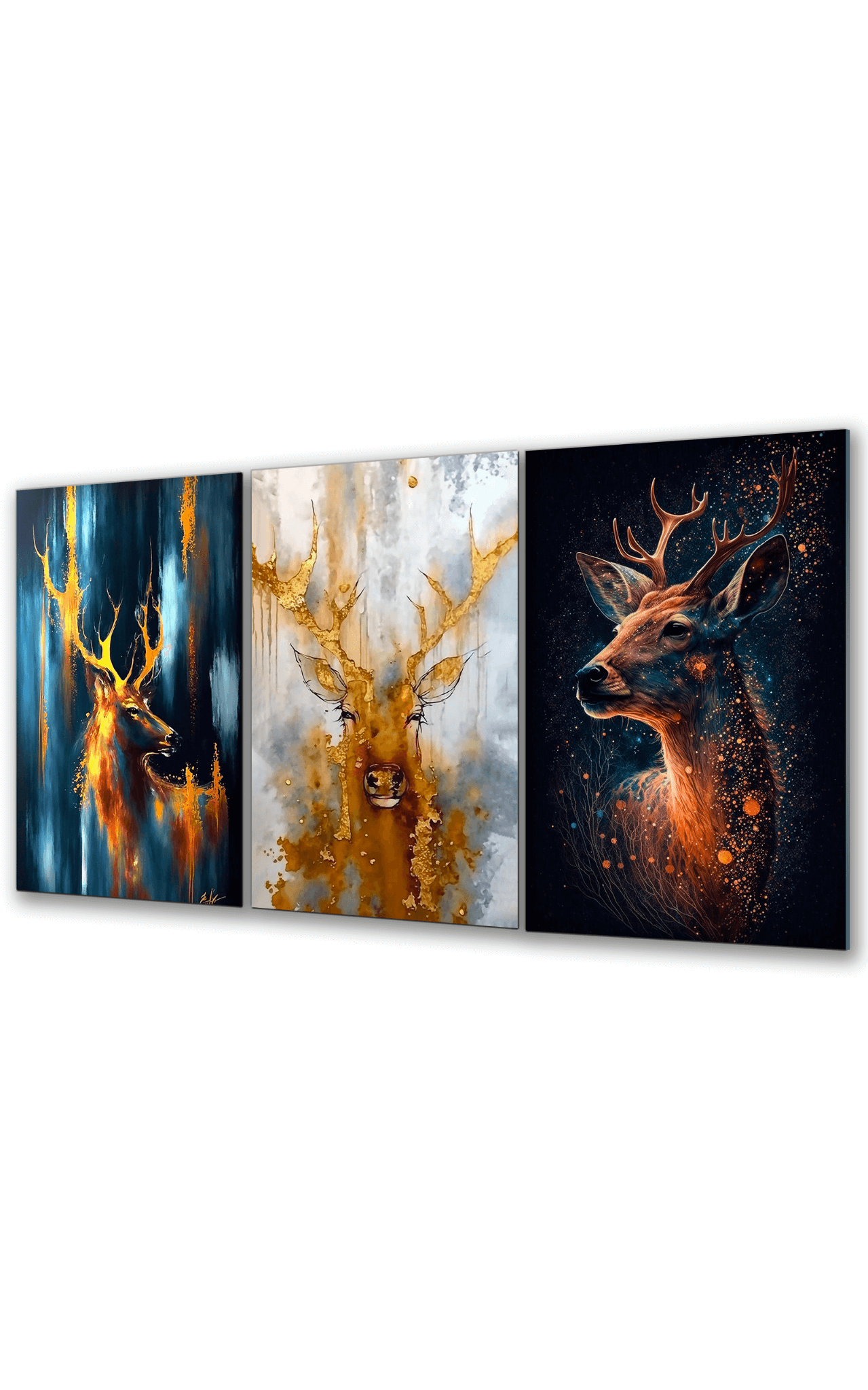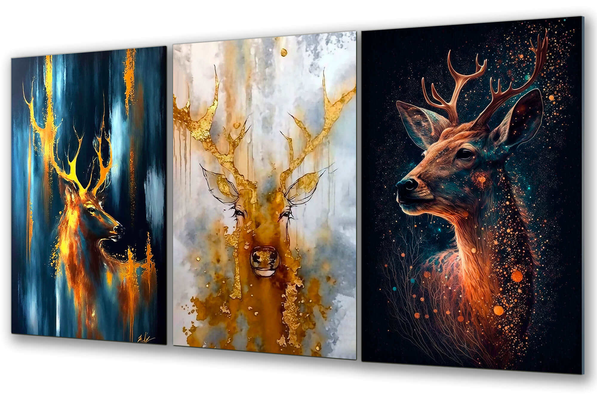 Dom • Katalog • OBRAZY NA SZKLE • TRYPTYKI 3W1 • Obraz na szkle Tryptyk Magia Lasu – Łosie w Barwach