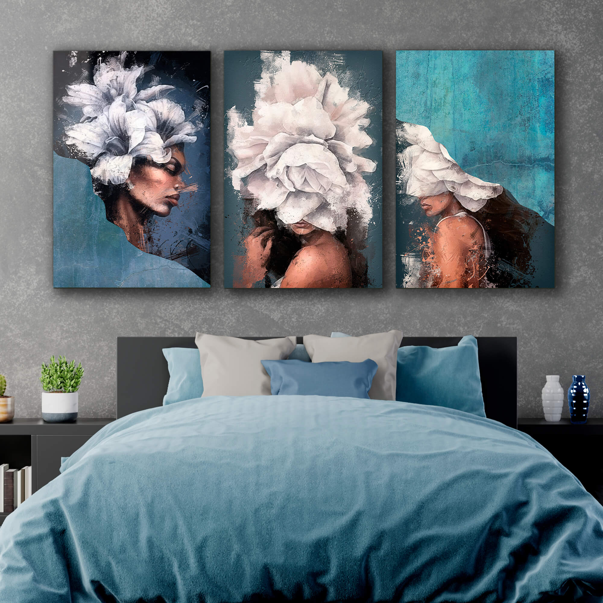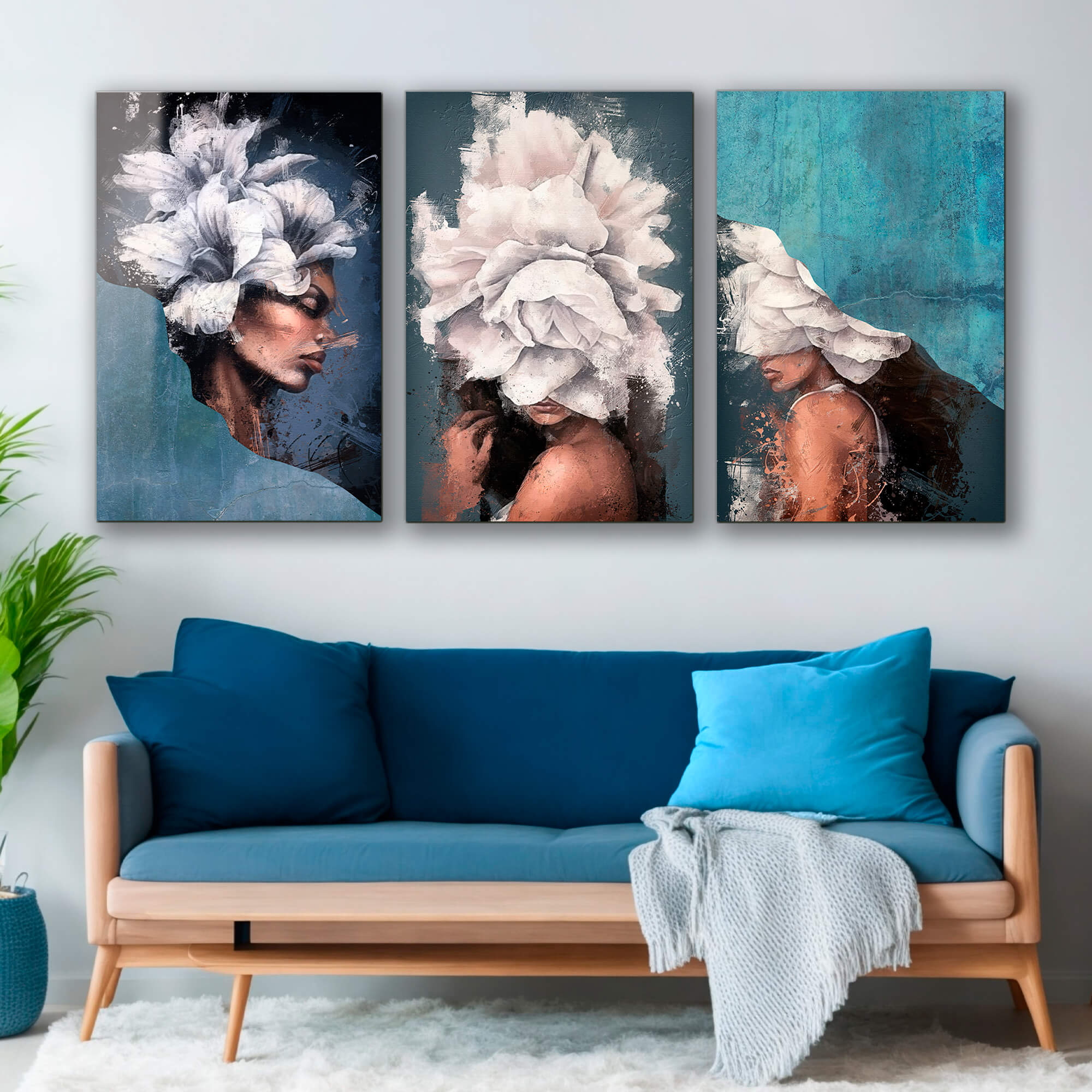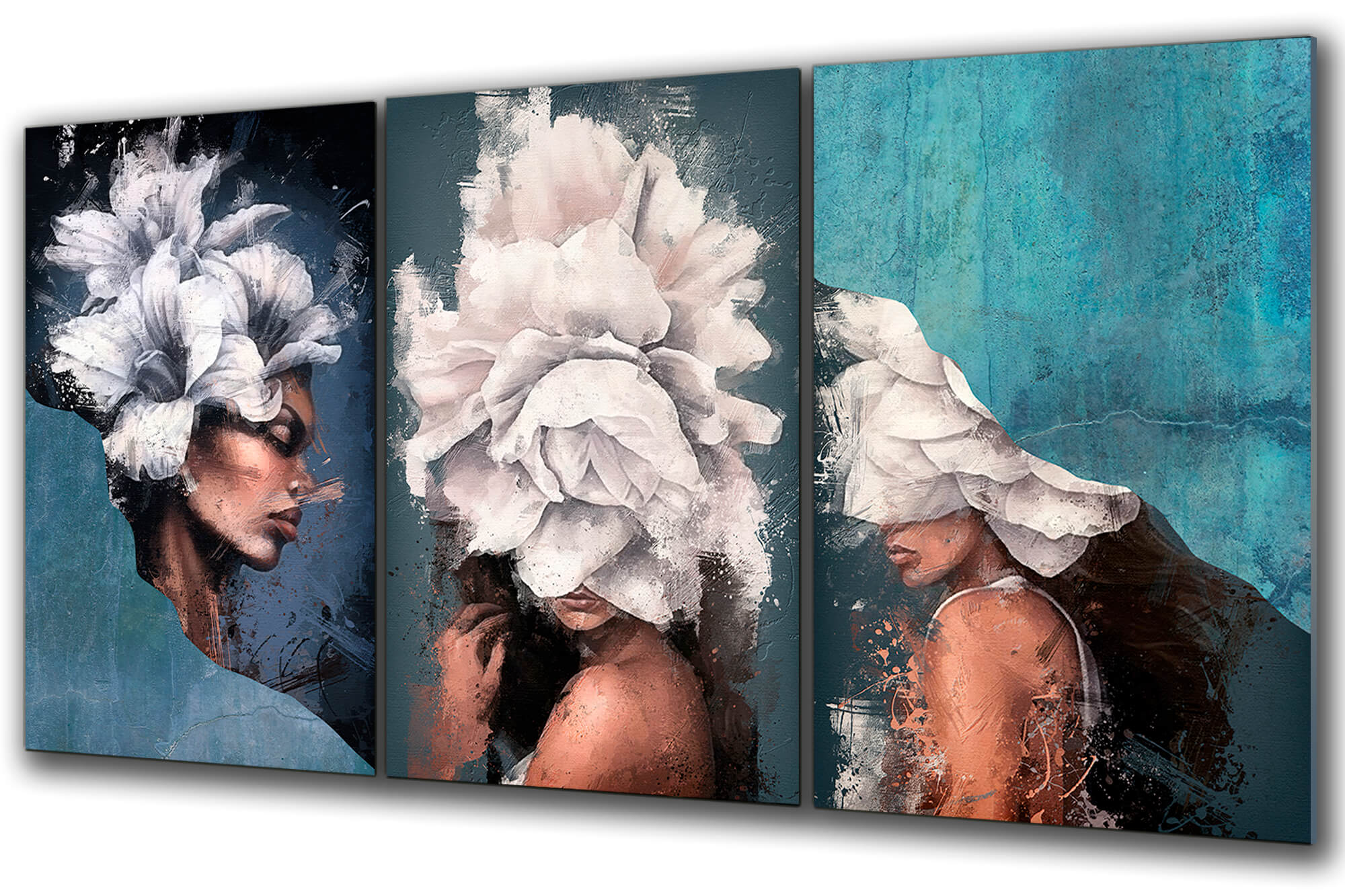 Dom • Katalog • OBRAZY NA SZKLE • TRYPTYKI 3W1 • Obraz na szkle Tryptyk Niebiańska Delikatność – Piękno w Kwiatach