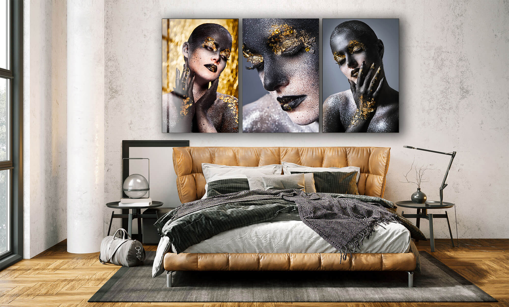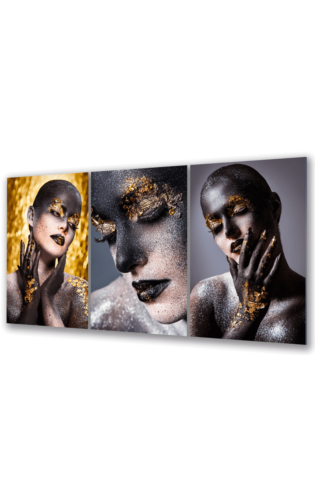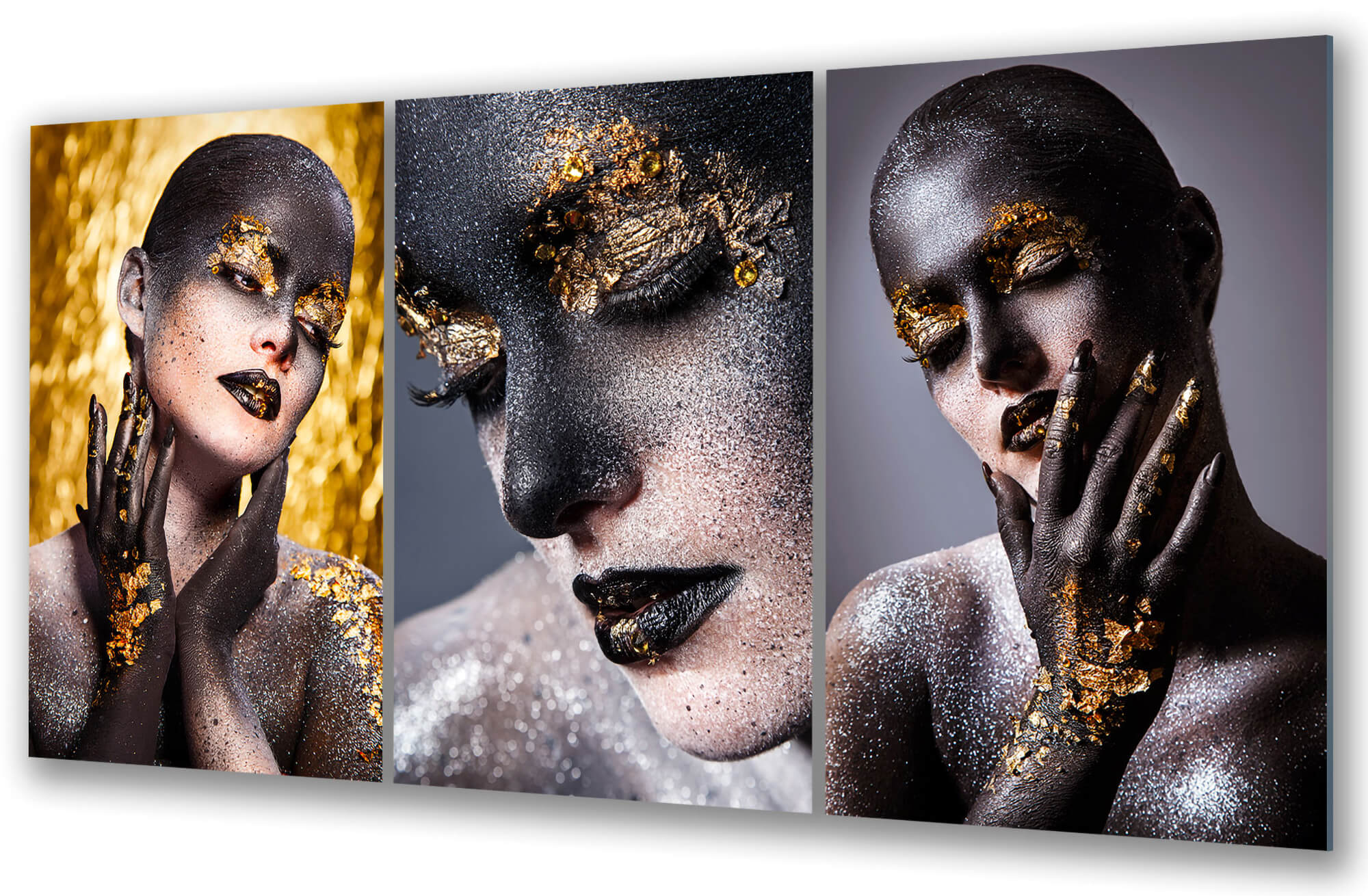 Obraz na szkle Tryptyk Złota Gracja – Subtelność w Blasku