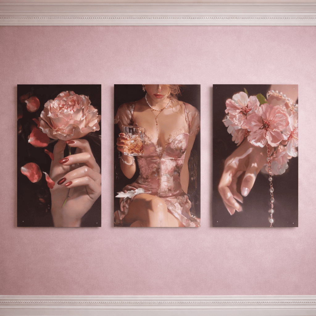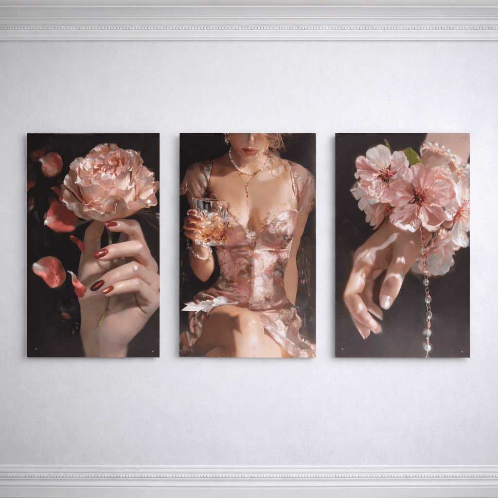„Zmysłowa kobieta i różowe kwiaty” to subtelna i elegancka kompozycja, która łączy kobiecą delikatność, zmysłowość oraz piękno natury w nowoczesnej formie. Motywy różowych kwiatów zestawione z kobiecą sylwetką i wyrafinowanymi detalami tworzą spójną całość o wyjątkowo eleganckim i luksusowym charakterze. Obraz na szkle zachwyca głębią barw, miękkim światłem oraz fotograficzną jakością detali, które nadają wnętrzu lekkości i wyrafinowanego stylu.