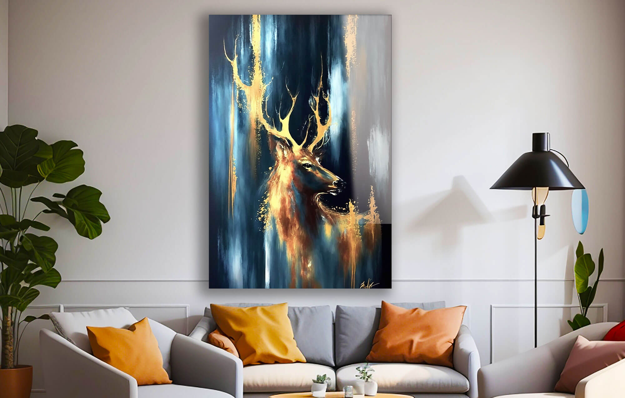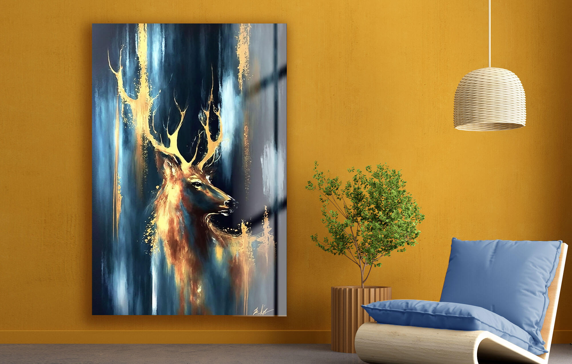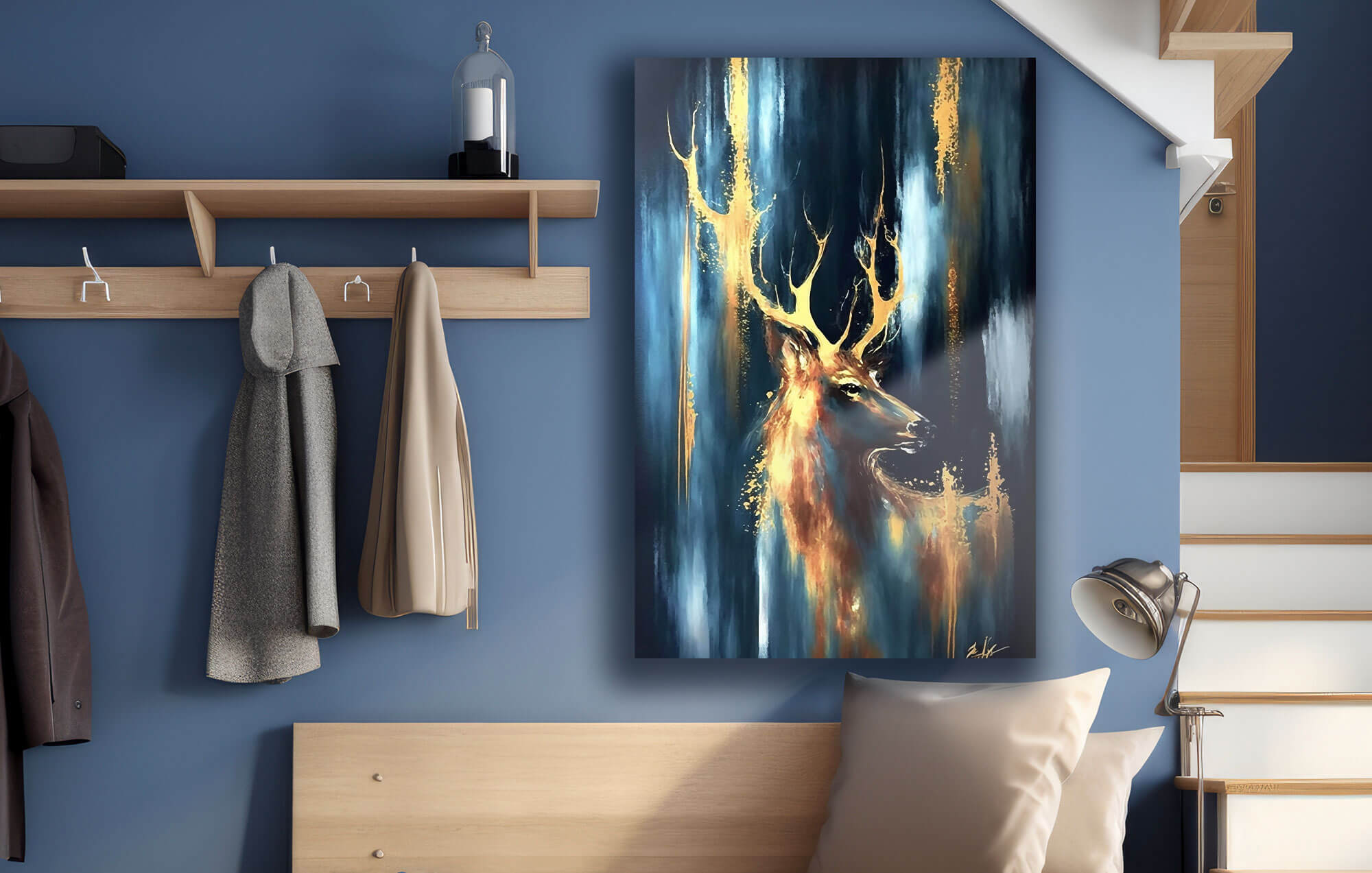 Dom • Katalog • OBRAZY NA SZKLE • ZWIERZĘTA • Obraz na szkle Złoto-błękitny jeleń