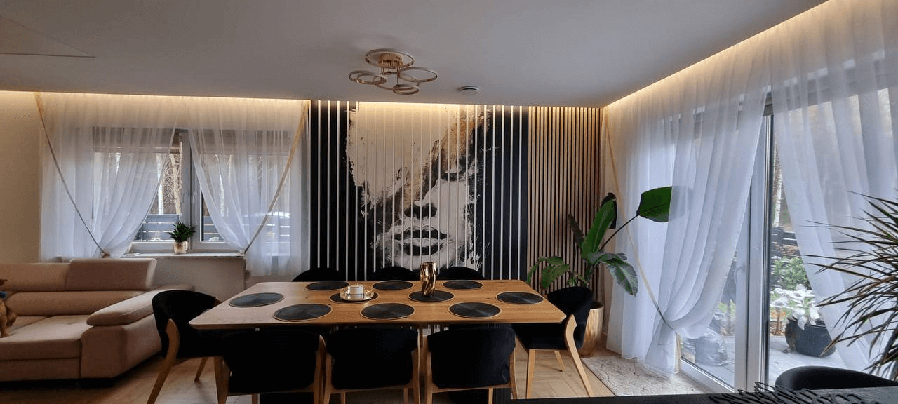 W tej sekcji prezentujemy nasze realizacje lameli ściennych w prawdziwych wnętrzach klientów. Zobaczysz, jak lamele PCV z nadrukiem UV wyglądają po montażu w salonach, sypialniach, korytarzach i przestrzeniach komercyjnych – w różnych światłach, układach i stylach aranżacji. To najlepszy sposób, aby ocenić efekt 3D, skalę dekoracji oraz to, jak projekt „na wymiar” pracuje z meblami i architekturą wnętrza. Jeśli szukasz inspiracji i chcesz wyobrazić sobie efekt na własnej ścianie, to miejsce jest dla Ciebie.