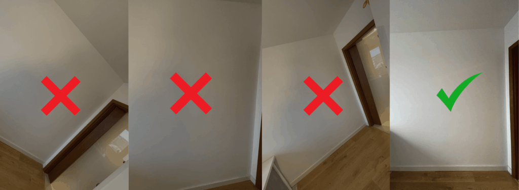 • Upewnij się, że na zdjęciu widoczne są ściana, podłoga i sufit.