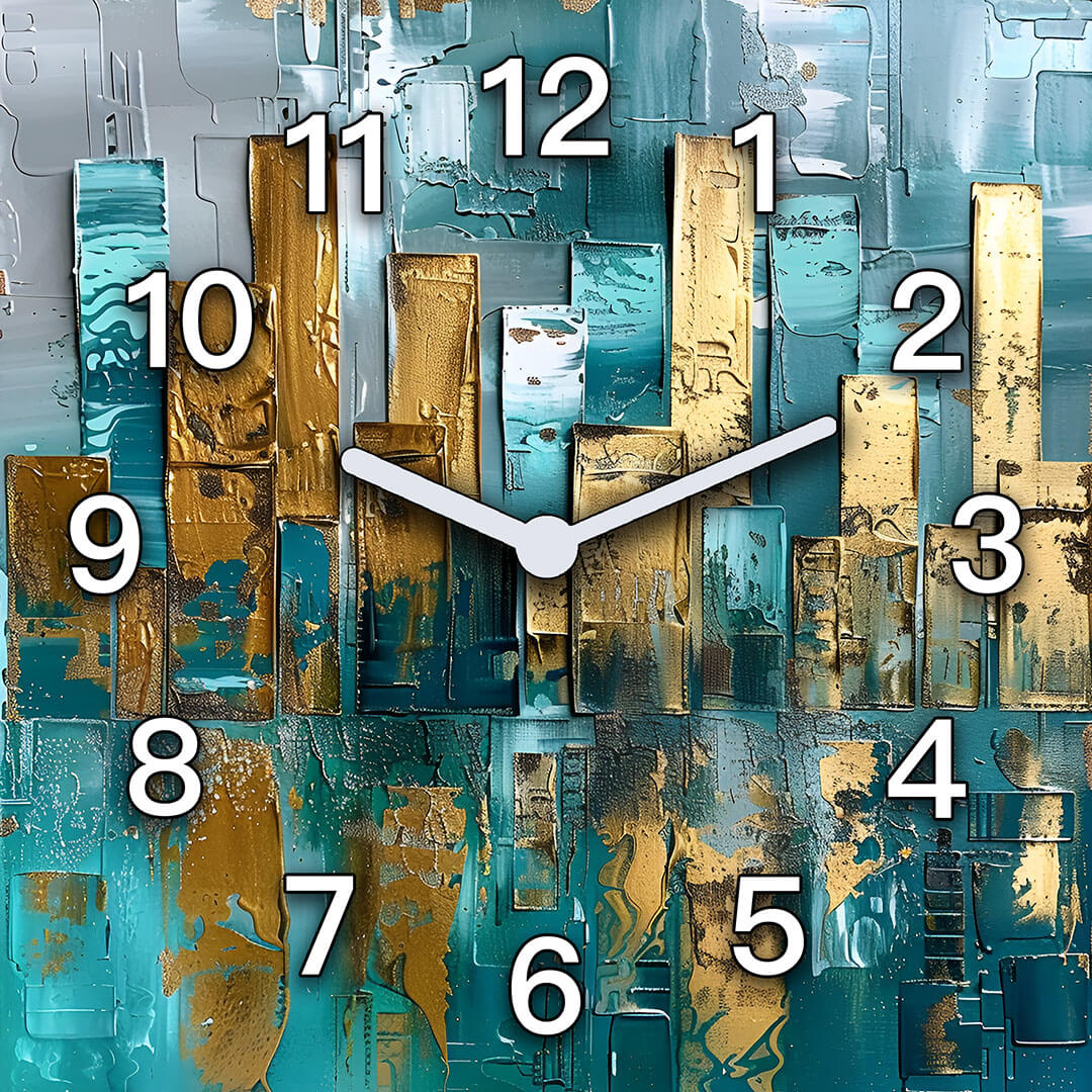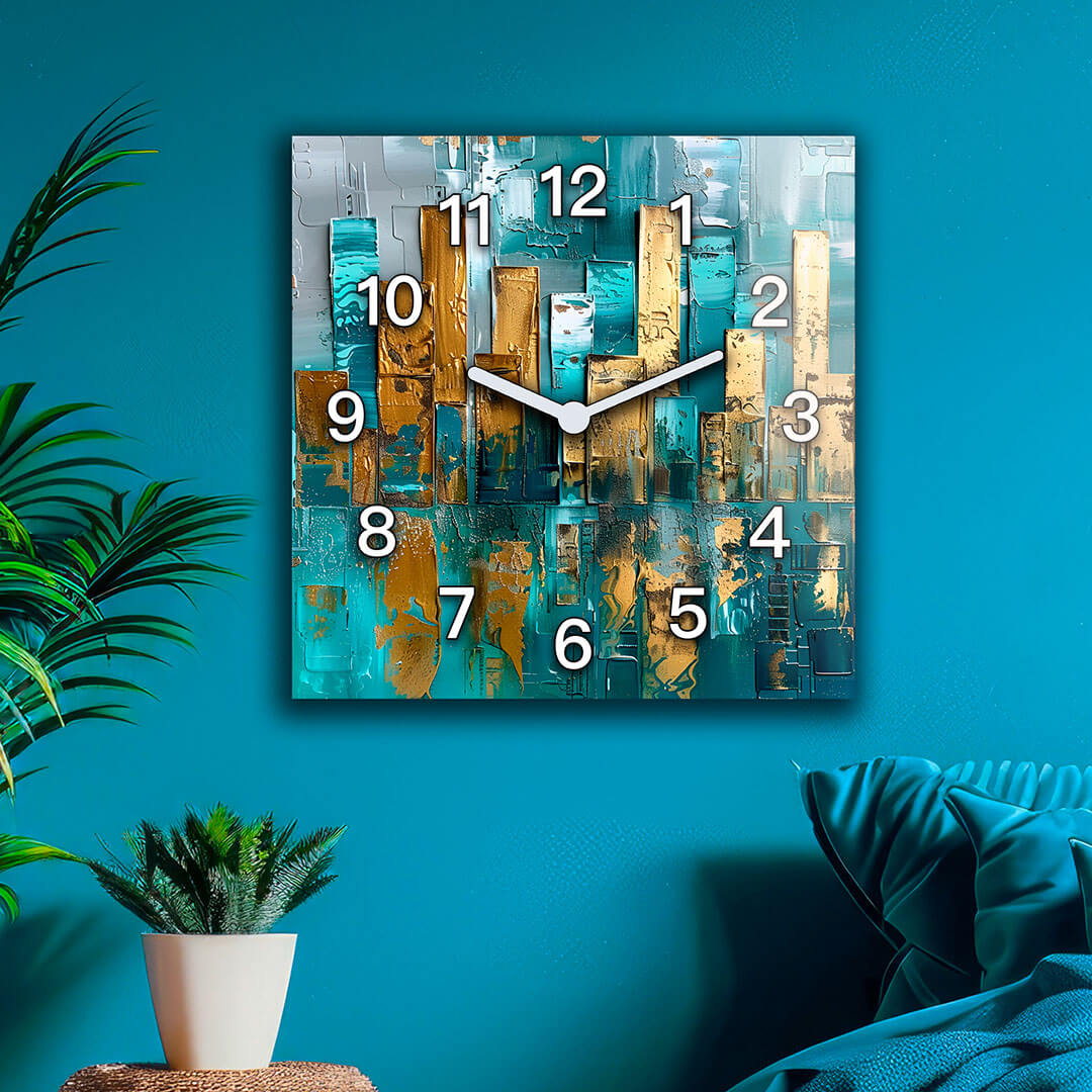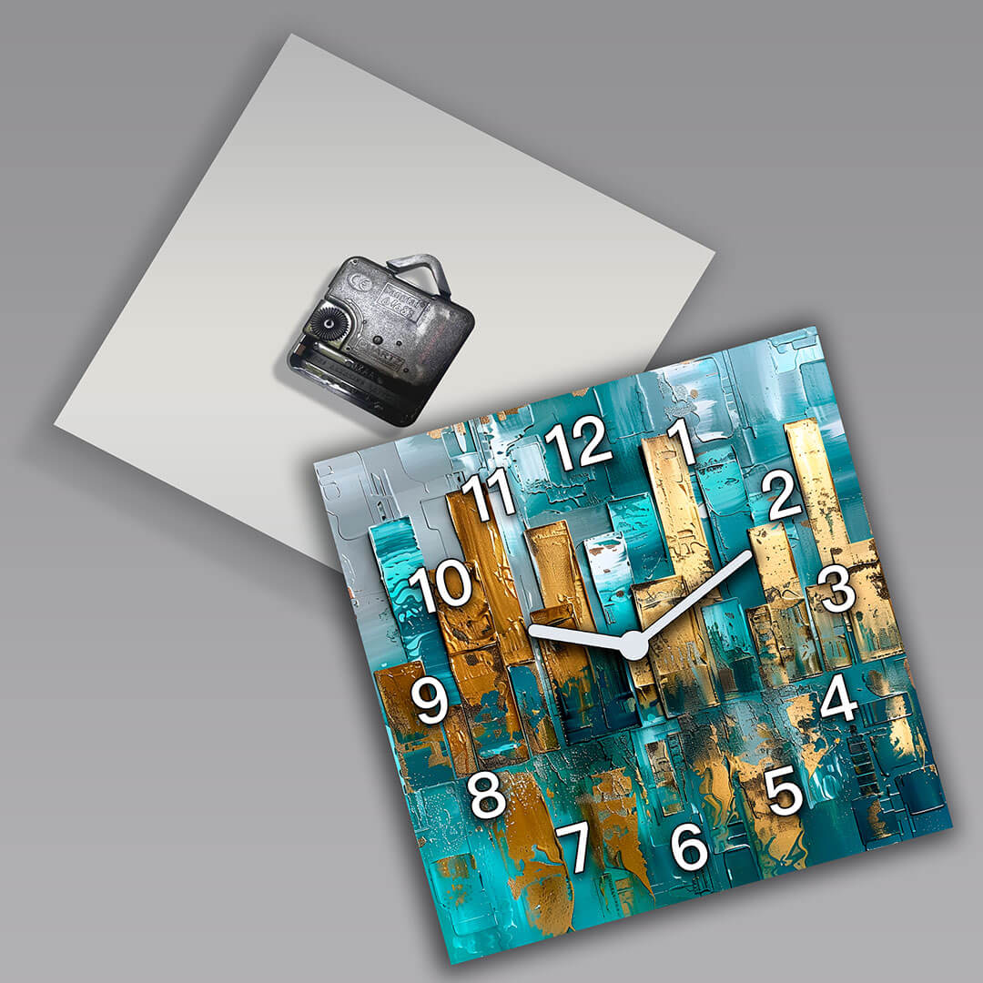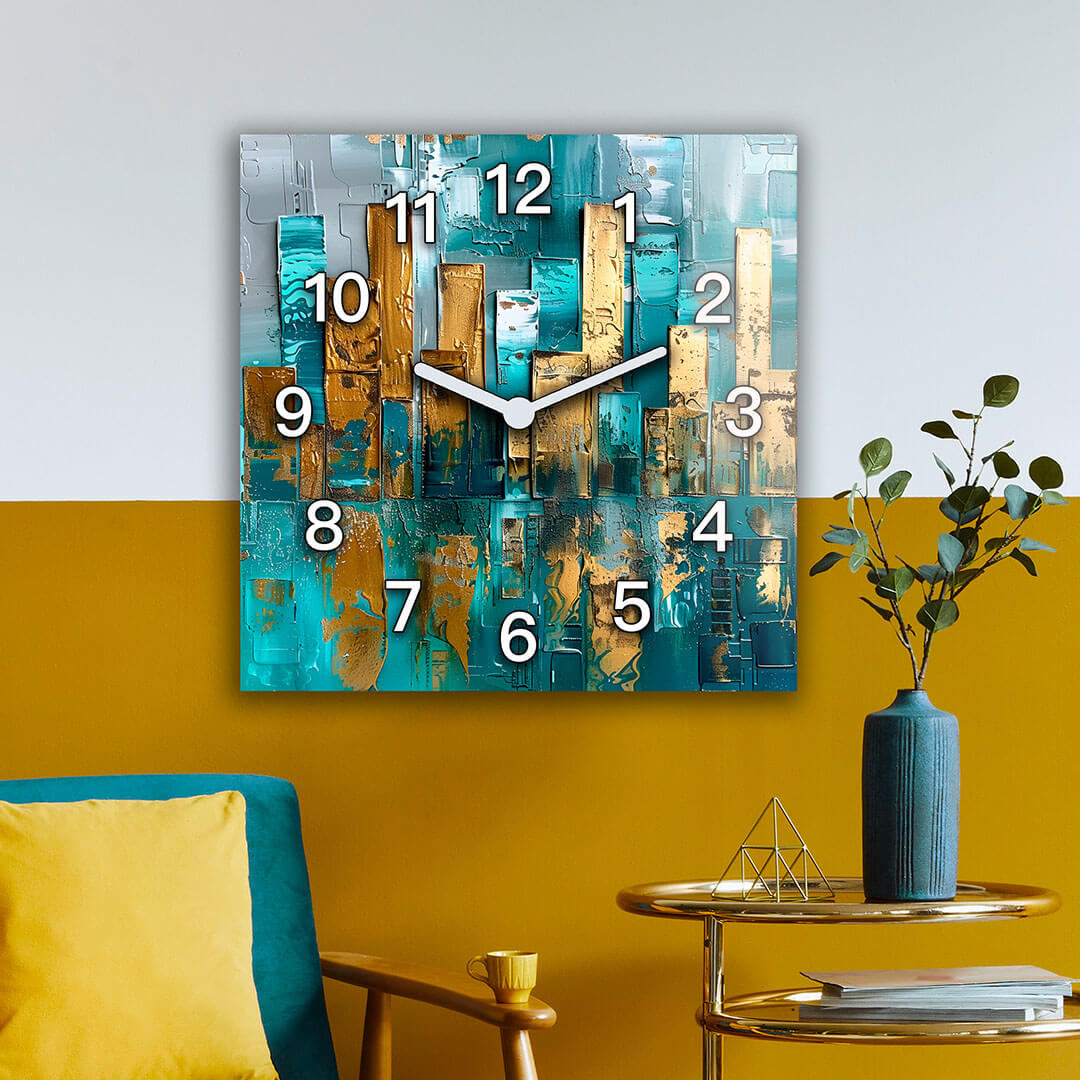 Dom • Katalog • ZEGARY ŚCIENNE • ABSTRAKCJA • Zegar ścienny dekoracyjny kwadratowy Abstrakcyjna Kompozycja Złota