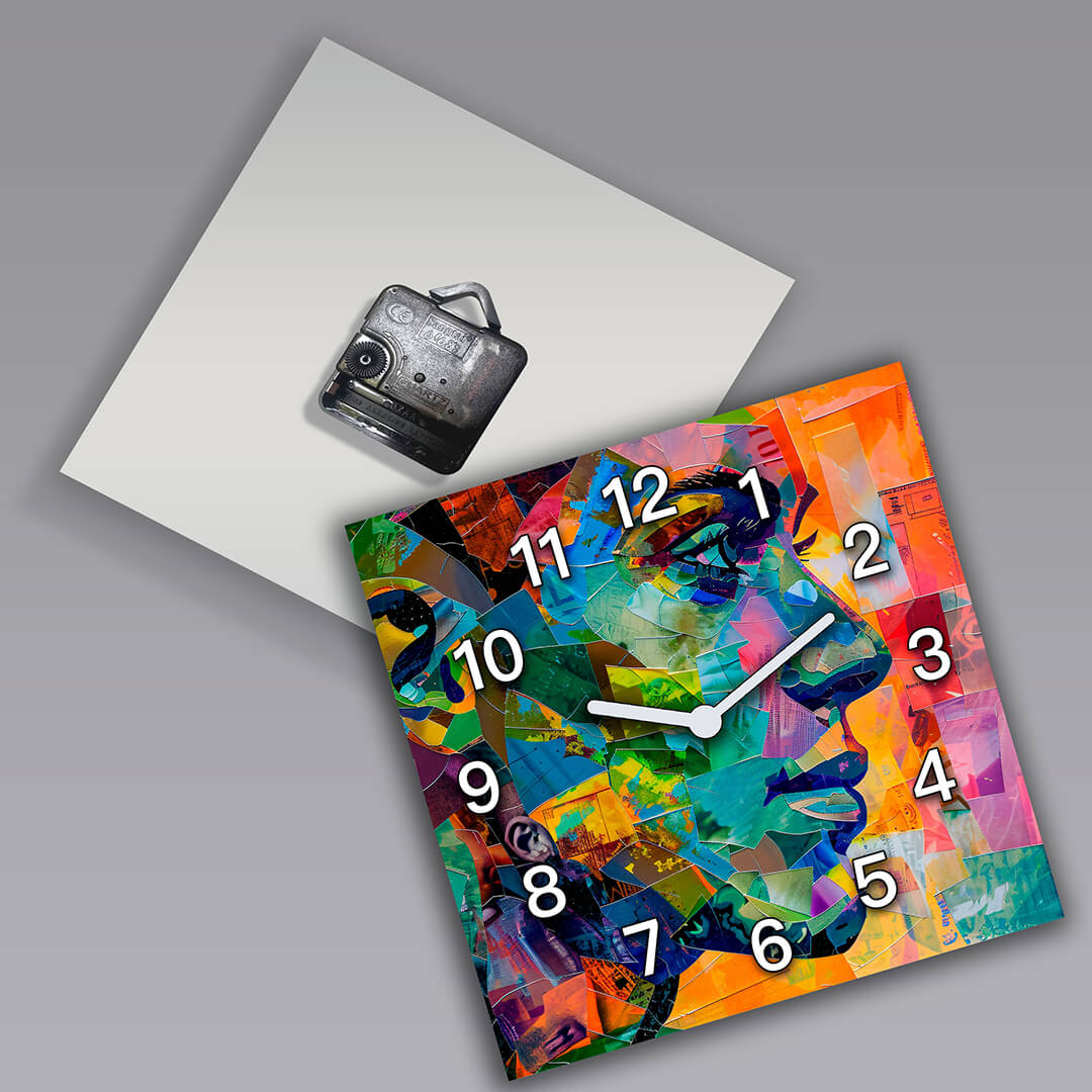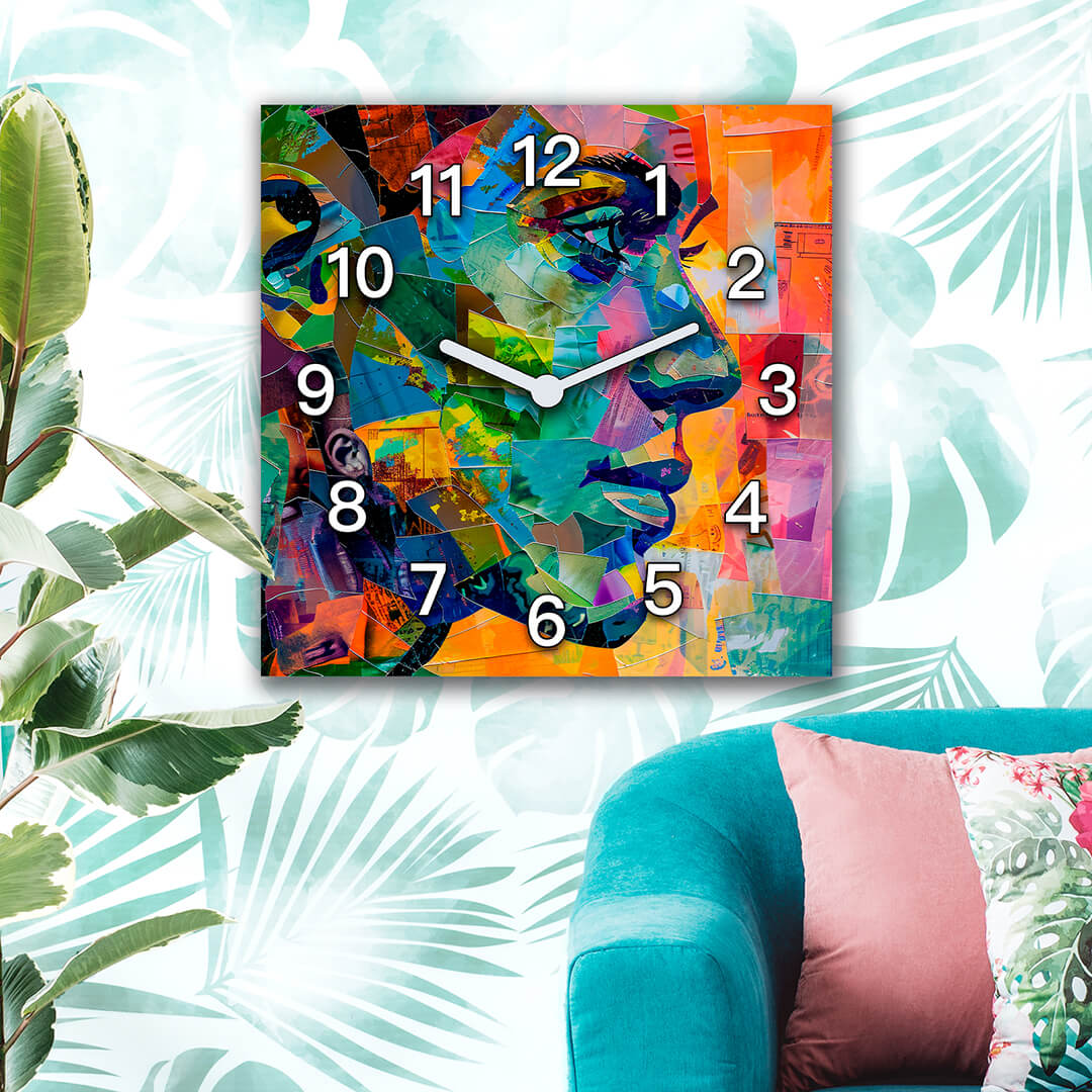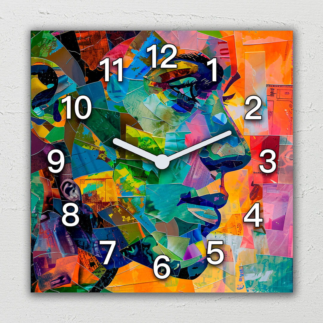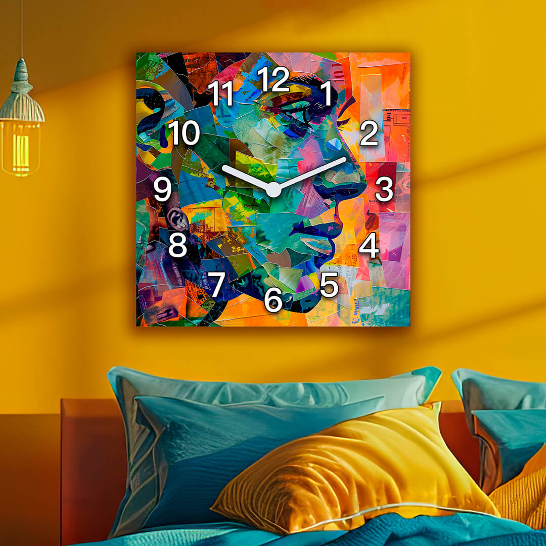 Dom • Katalog • ZEGARY ŚCIENNE • ABSTRAKCJA • Zegar ścienny dekoracyjny kwadratowy Abstrakcyjna Twarz w Kolorach