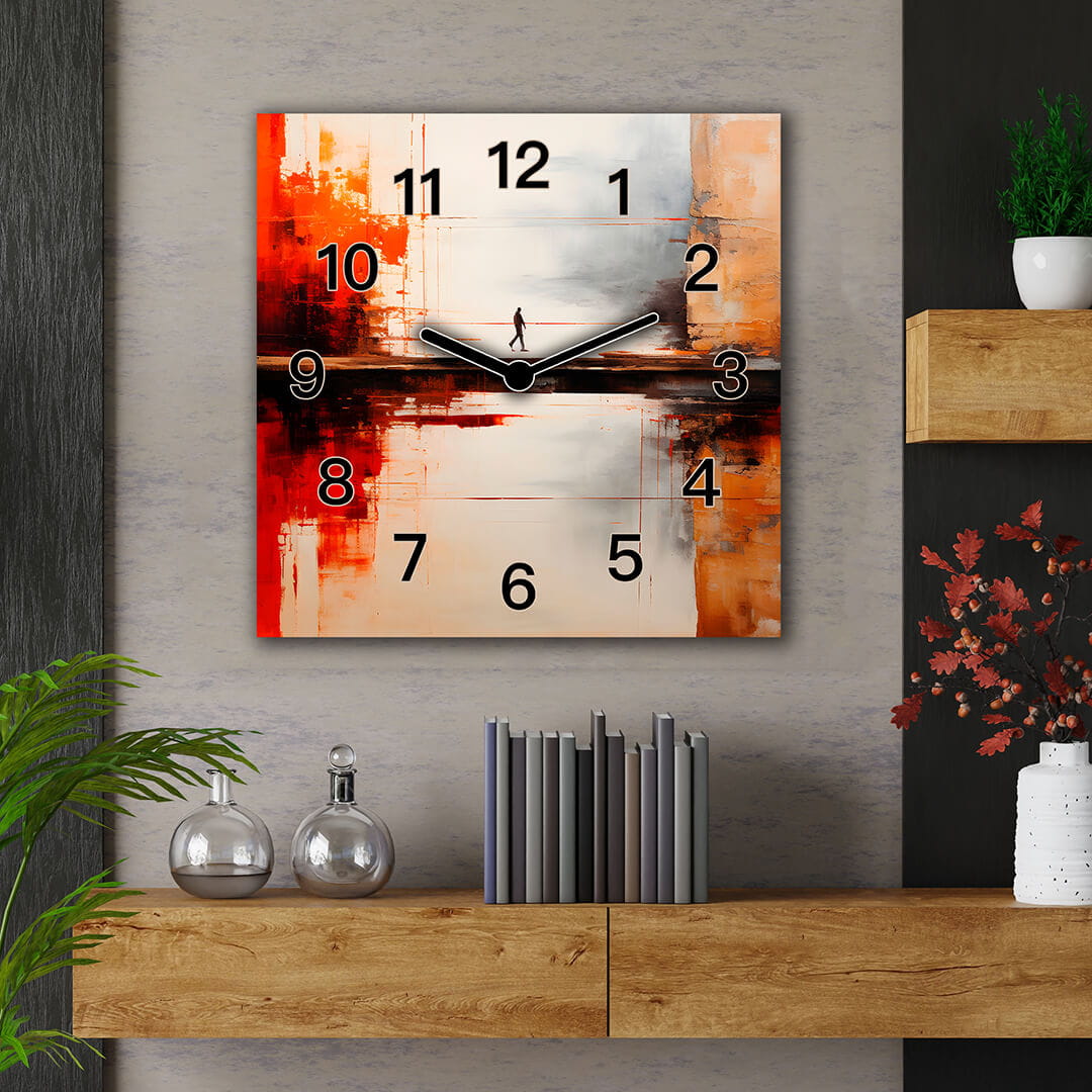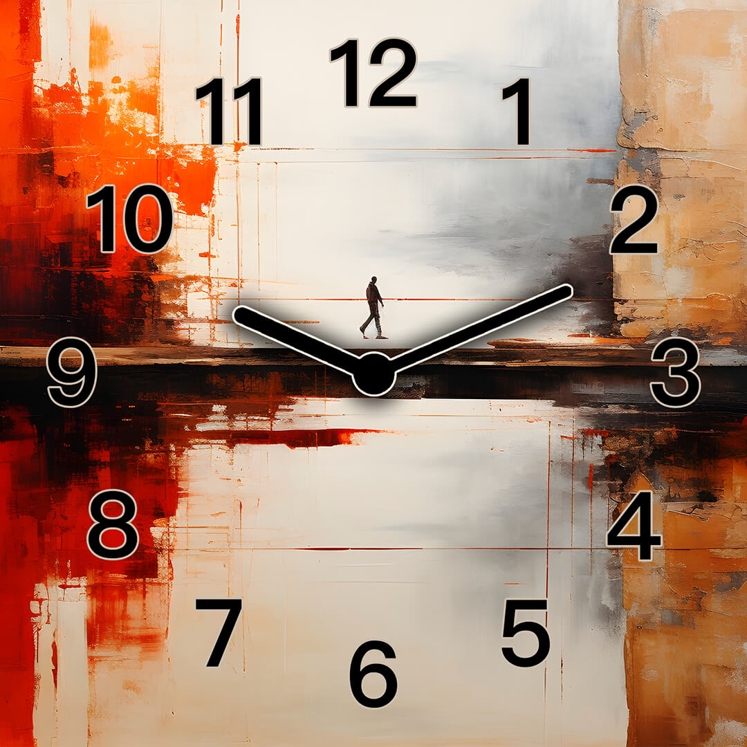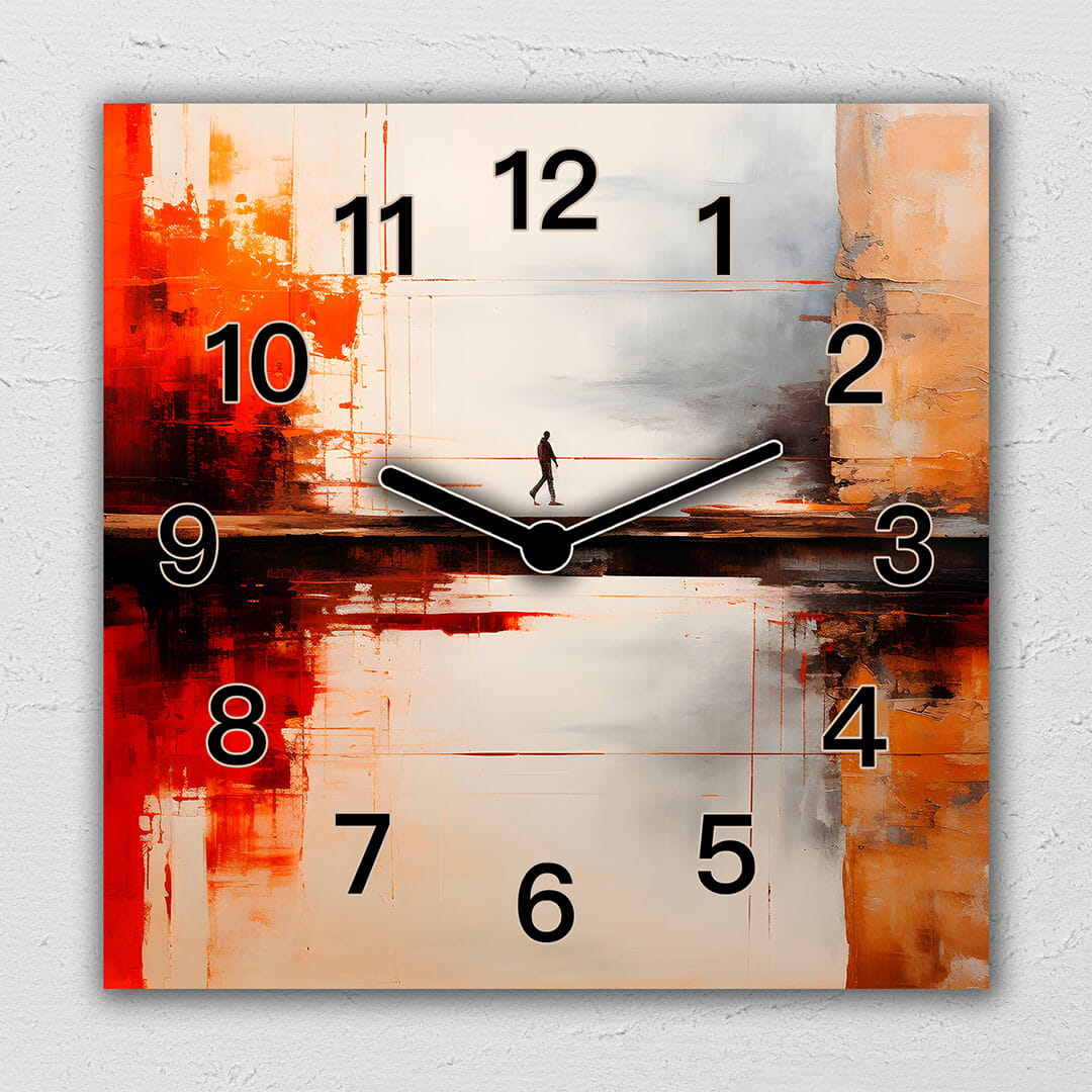 „Droga w Kolorach”. Ten zegar ścienny dekoracyjny „Droga w Kolorach” łączy w sobie sztukę abstrakcyjną i funkcjonalność, stanowiąc wyjątkowy element dekoracyjny do nowoczesnych wnętrz. Jego unikalny wzór przedstawia postać spacerującą w otoczeniu abstrakcyjnych kształtów i intensywnych kolorów. Zegar doskonale komponuje się w salonie, biurze, a także w innych przestrzeniach, dodając im nowoczesnego charakteru. Wykonany z wysokiej jakości materiałów, ten zegar jest nie tylko ozdobą, ale także precyzyjnym urządzeniem do odmierzania czasu. Jego wyrazisty design oraz kolorystyka sprawiają, że jest idealnym wyborem do osób poszukujących czegoś oryginalnego i nowoczesnego.