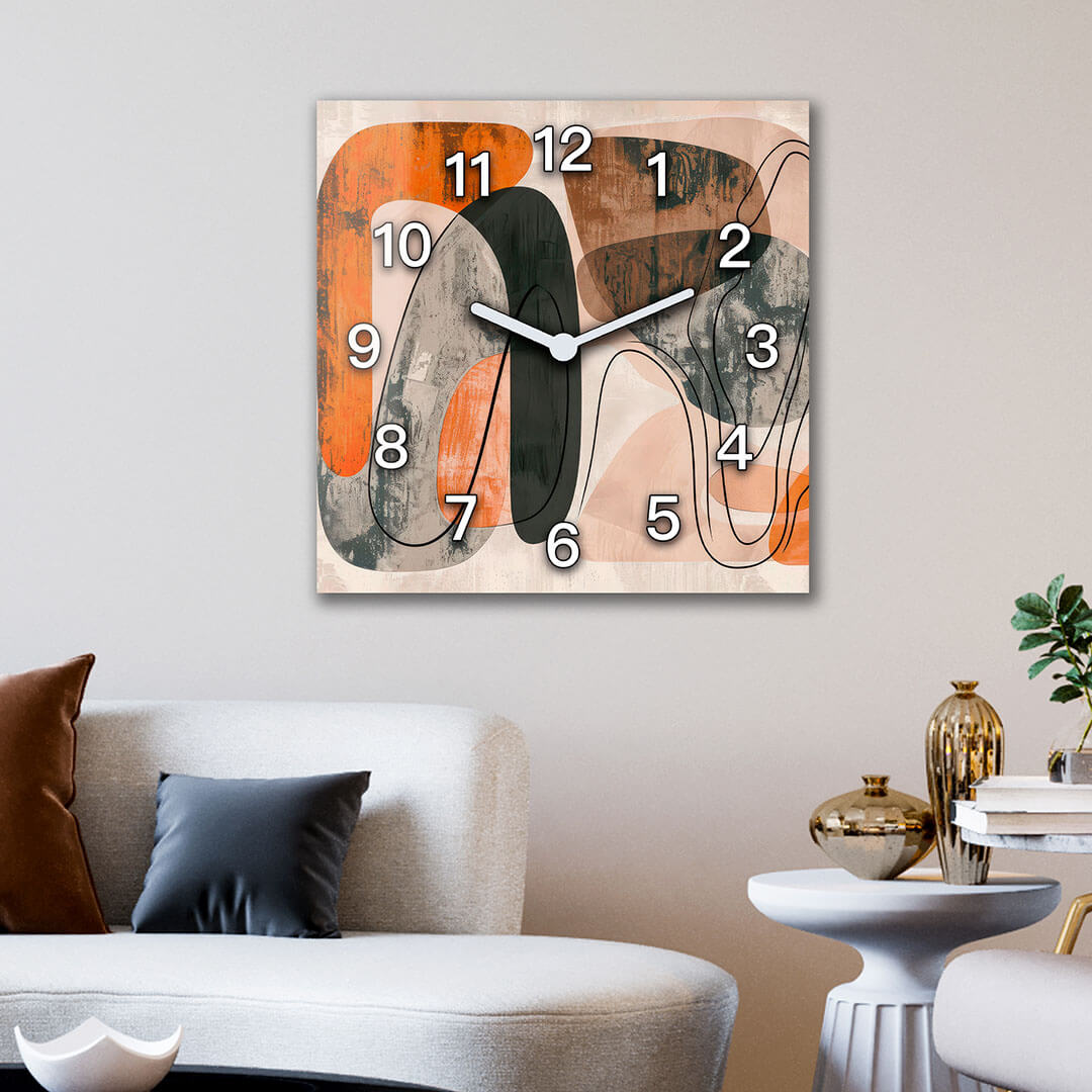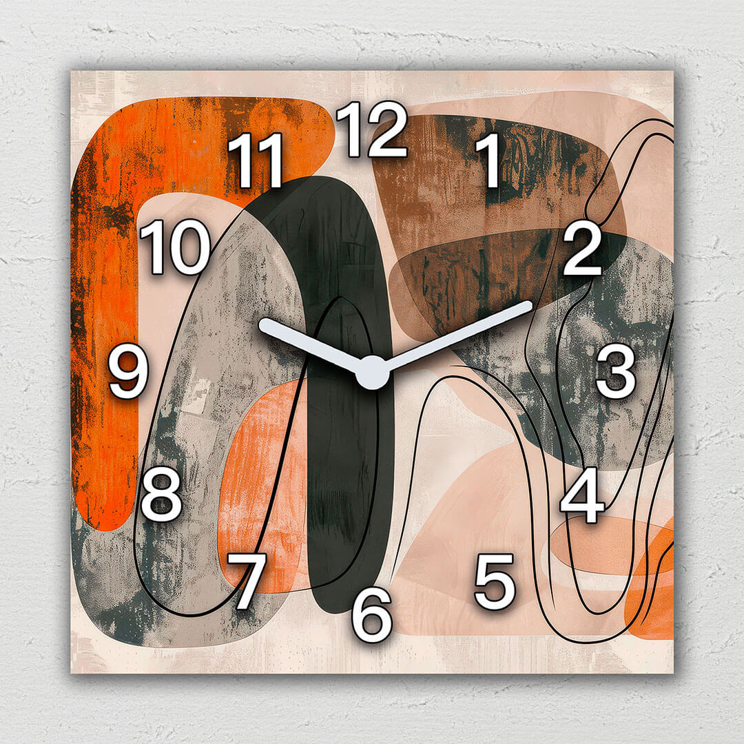 Dom • Katalog • ZEGARY ŚCIENNE • ABSTRAKCJA • Zegar ścienny dekoracyjny kwadratowy Naturalne Linie i Kolory