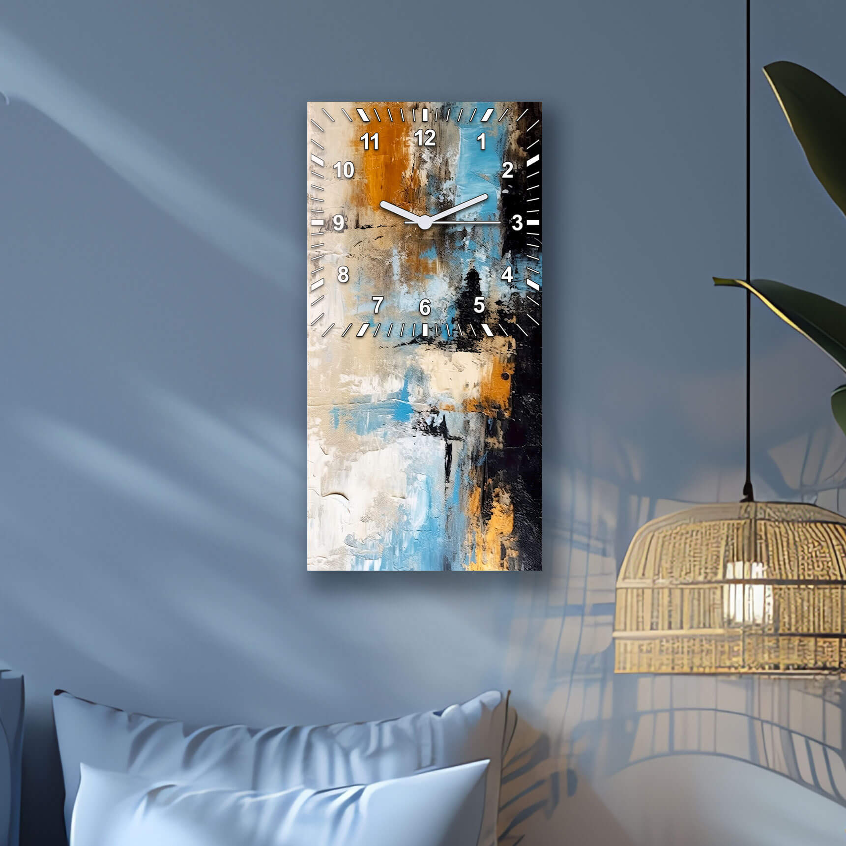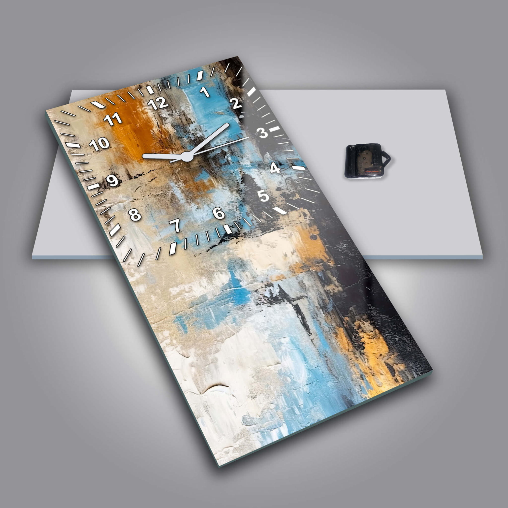 Dom • Katalog • ZEGARY ŚCIENNE • ABSTRAKCJA • Zegar ścienny dekoracyjny prostokątny Abstrakcja w błękicie i złocie