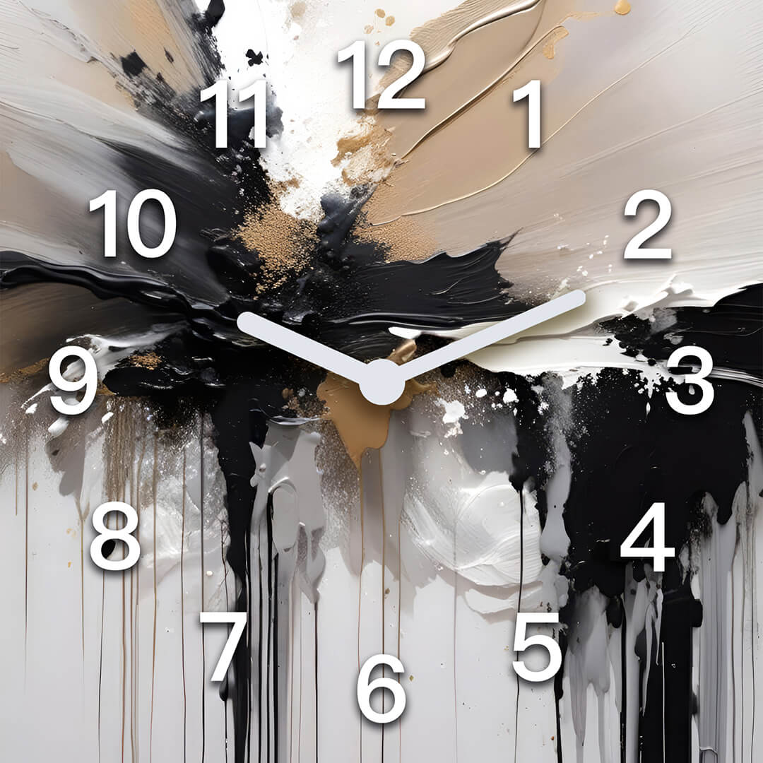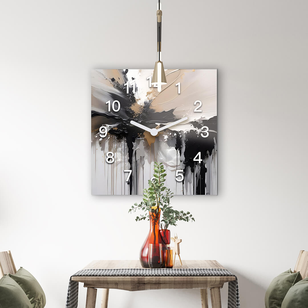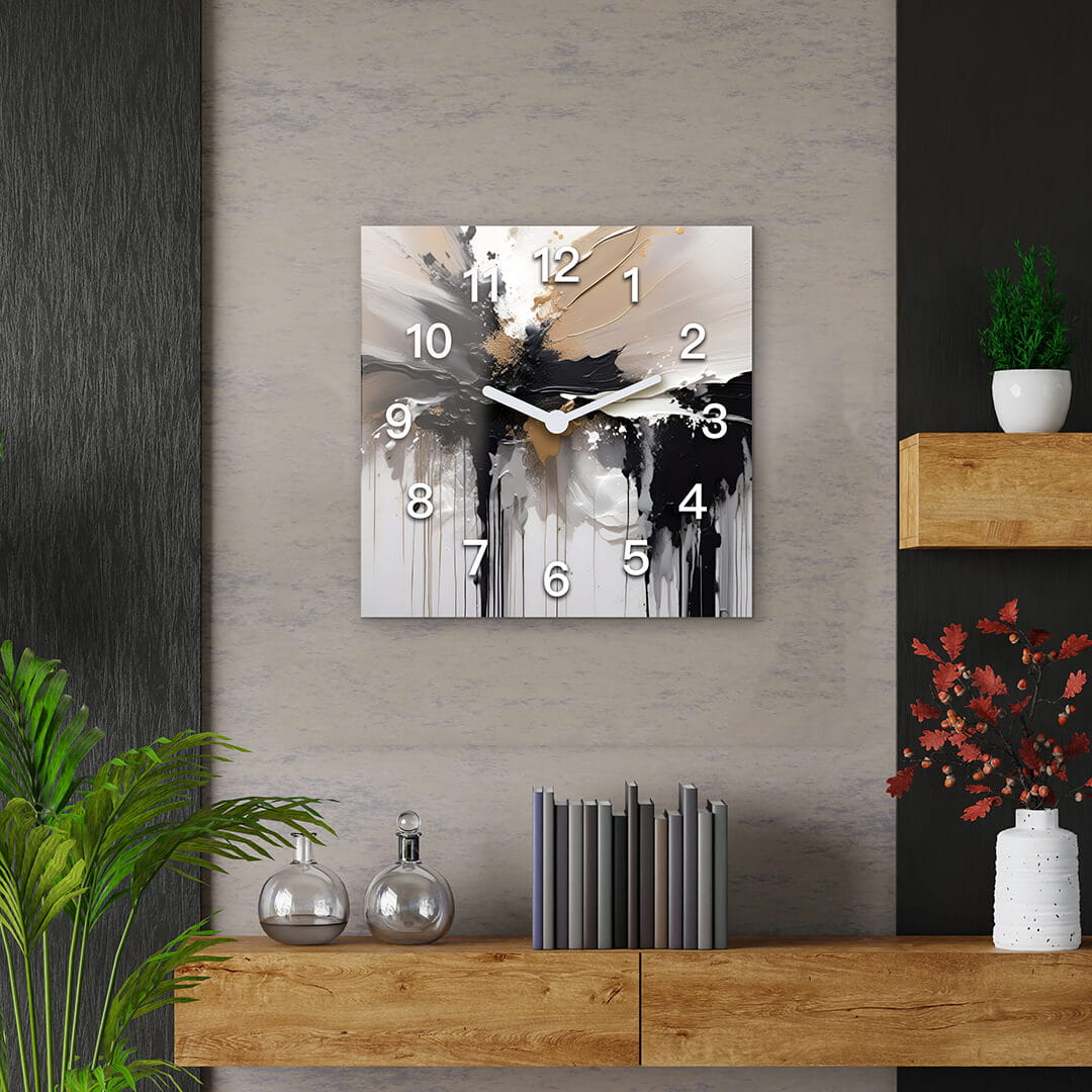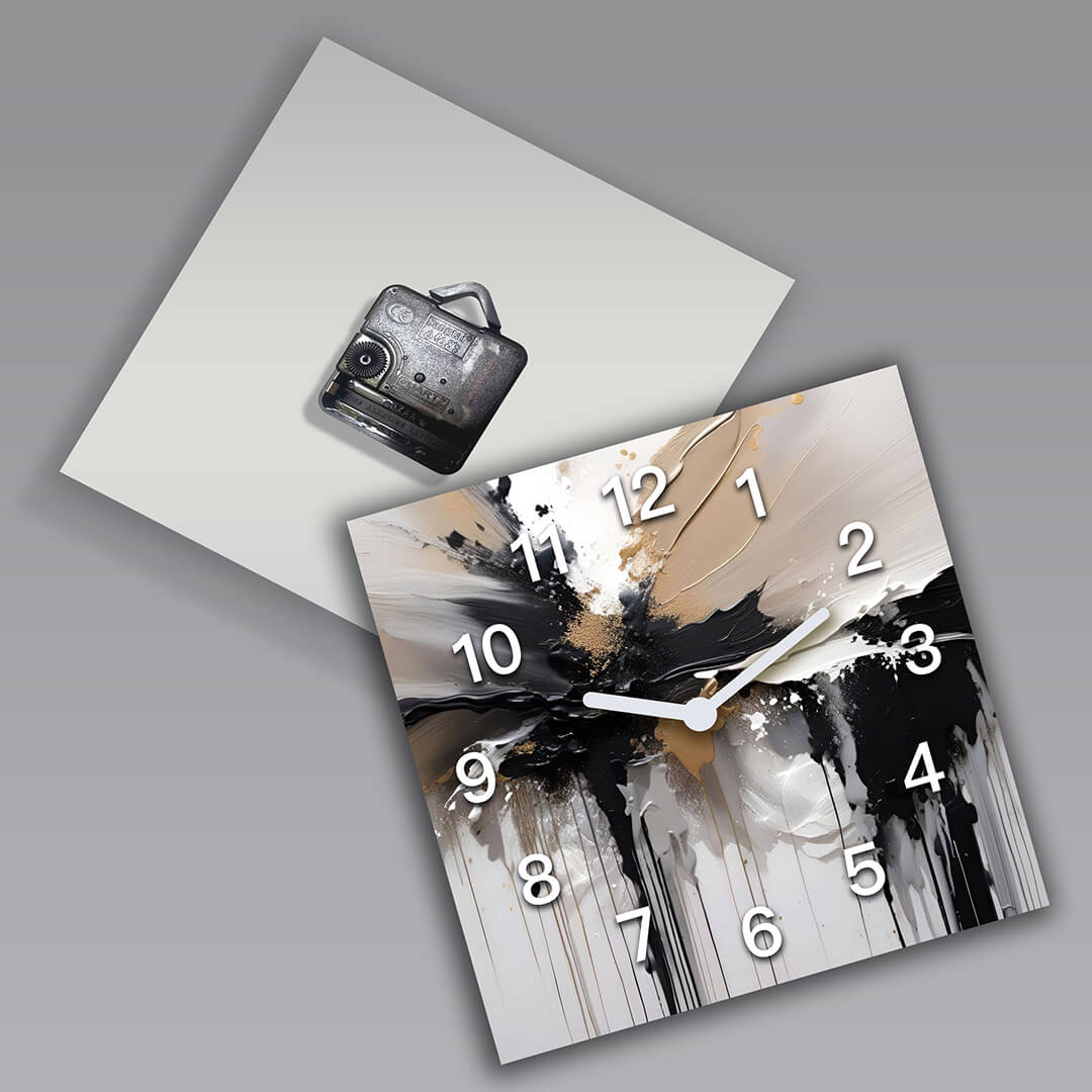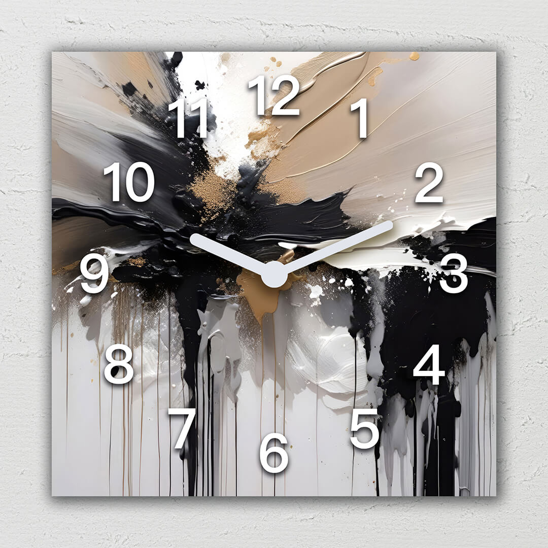 Dom • Katalog • ZEGARY ŚCIENNE • ABSTRAKCJA • Zegar ścienny nowoczesny kwadratowy Złoto-Czarny Obraz