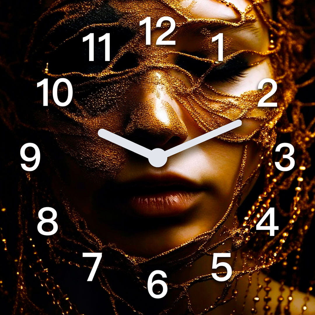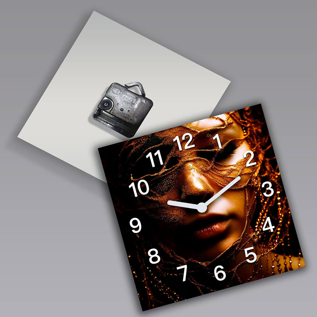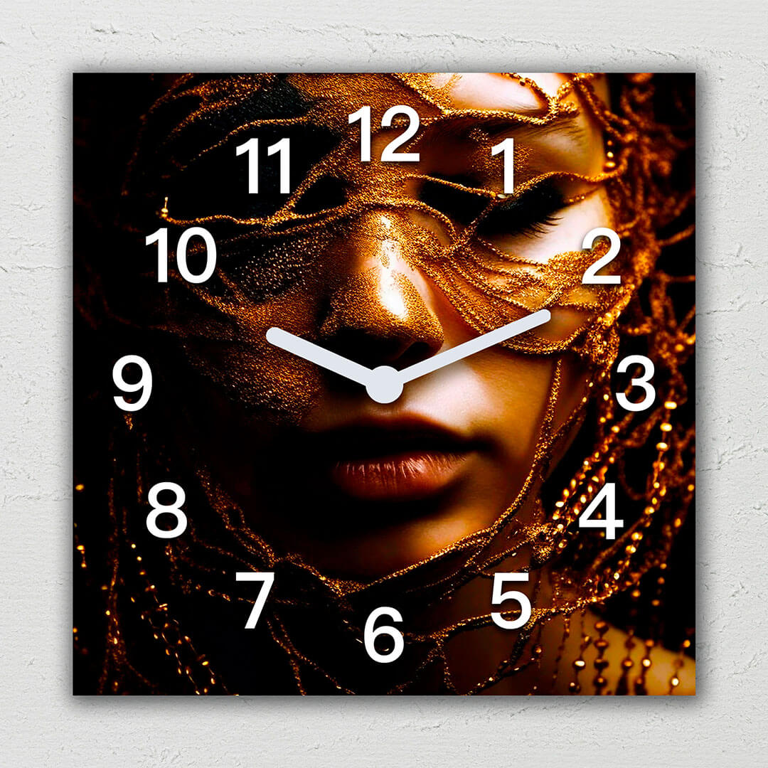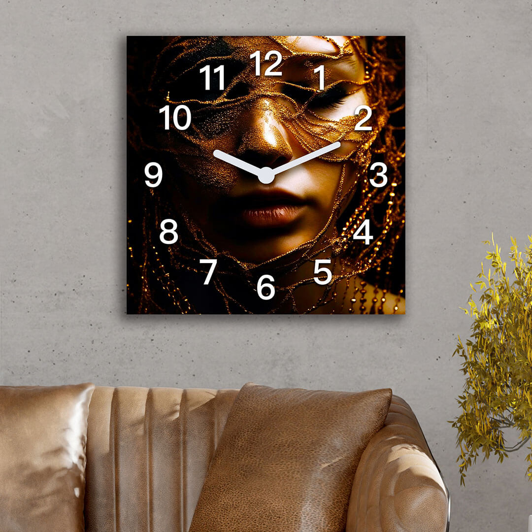 Dom • Katalog • ZEGARY ŚCIENNE • AFRYKA • Zegar ścienny dekoracyjny kwadratowy Afrykańska kobieta w złotej tkaninie