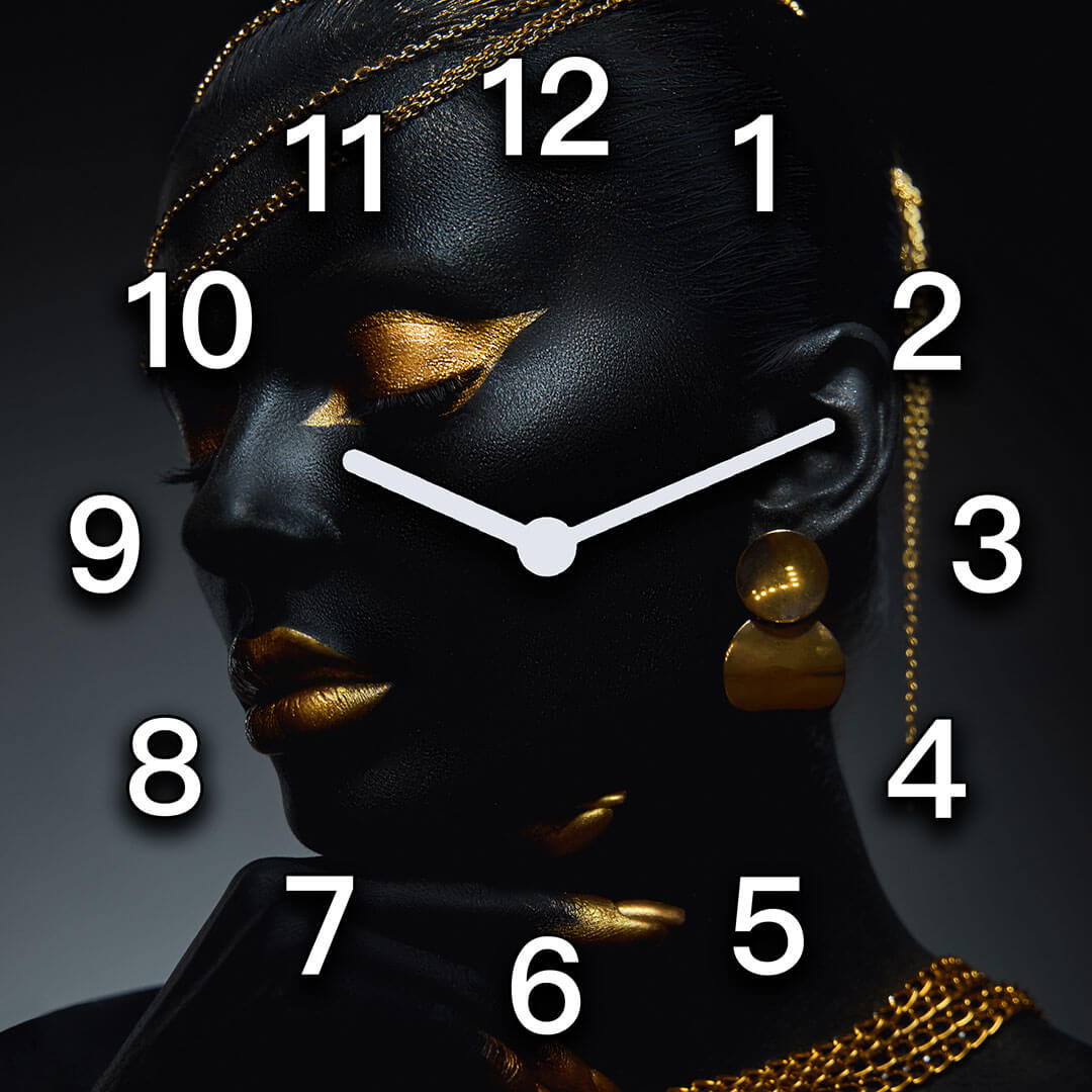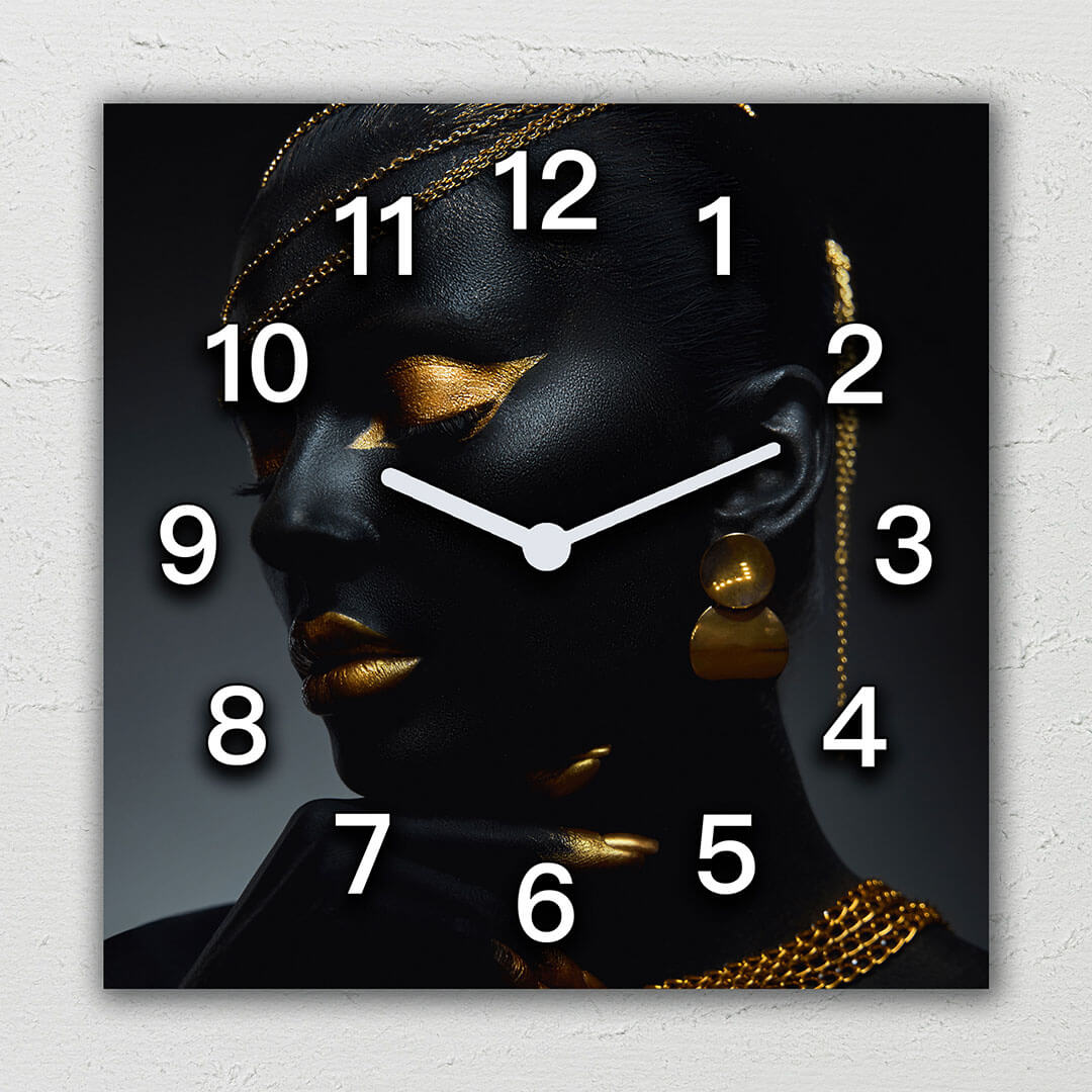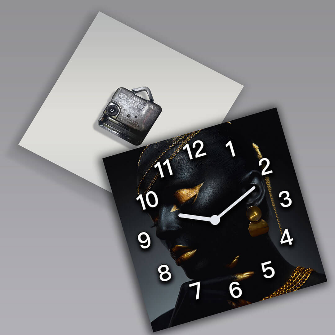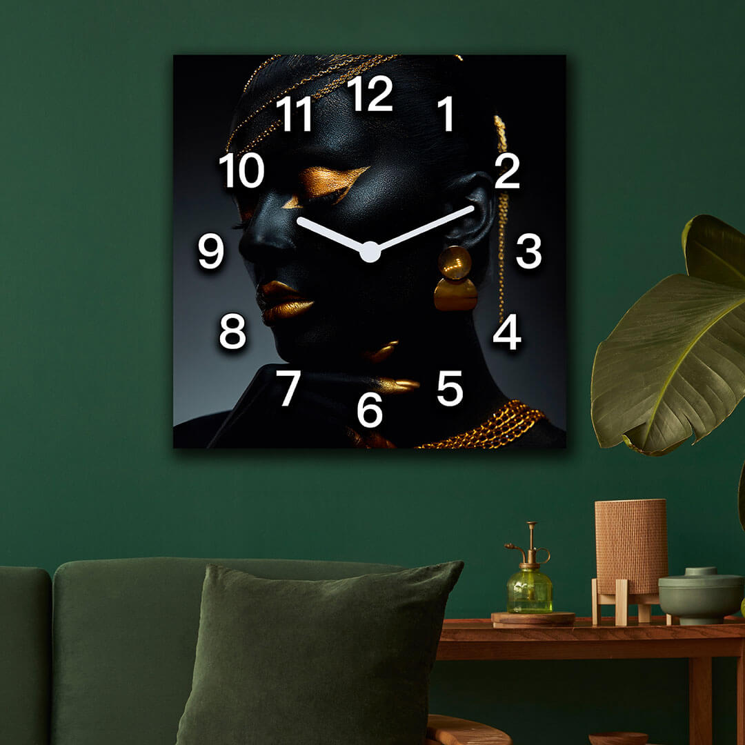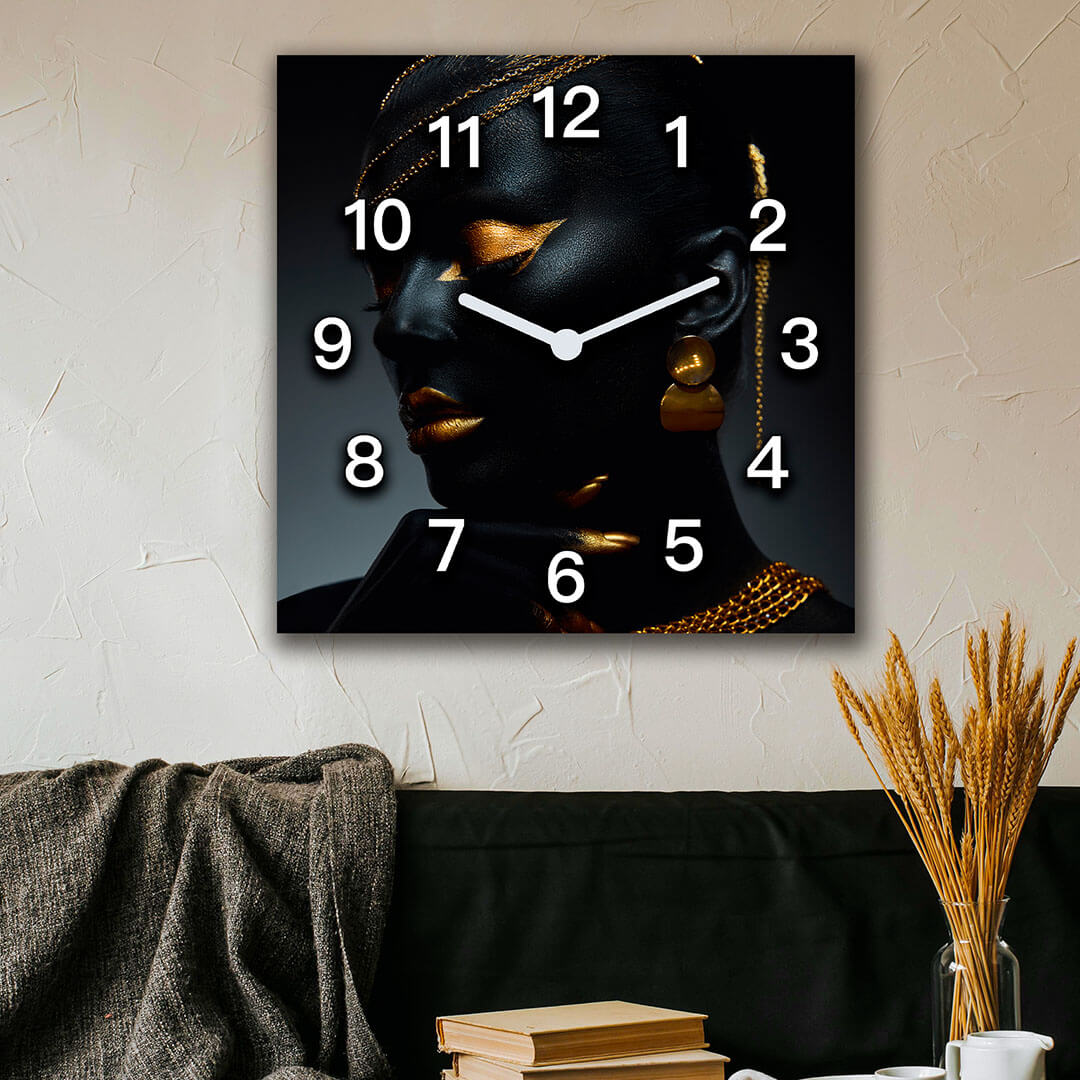 Dom • Katalog • ZEGARY ŚCIENNE • AFRYKA • Zegar ścienny dekoracyjny kwadratowy Afrykańska kobieta z złotem