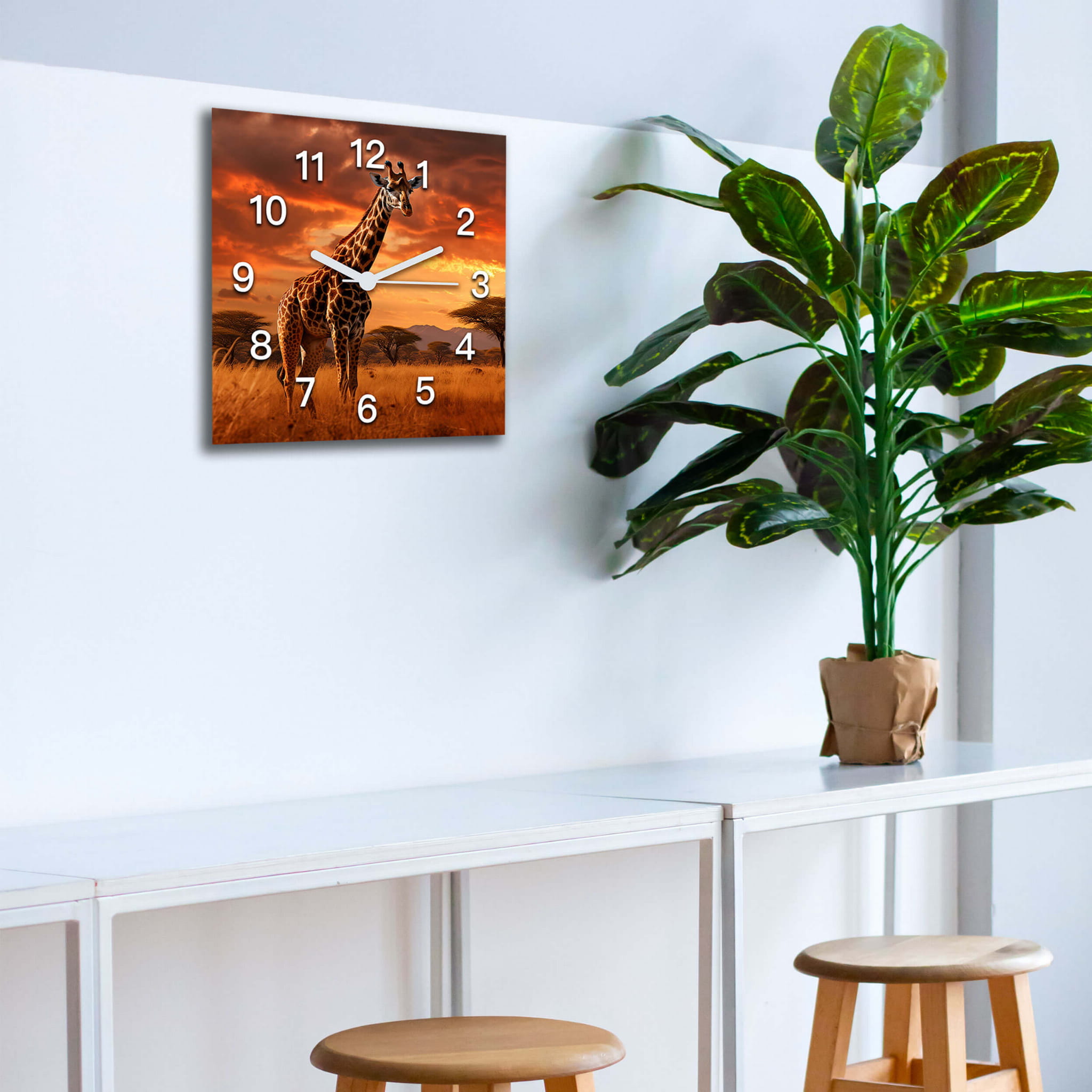 Dom • Katalog • ZEGARY ŚCIENNE • AFRYKA • Zegar ścienny dekoracyjny kwadratowy Afrykańska żyrafa