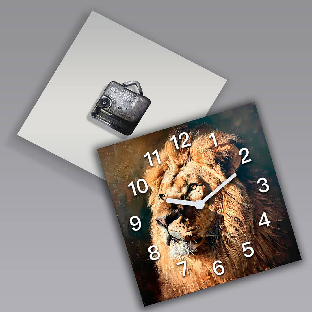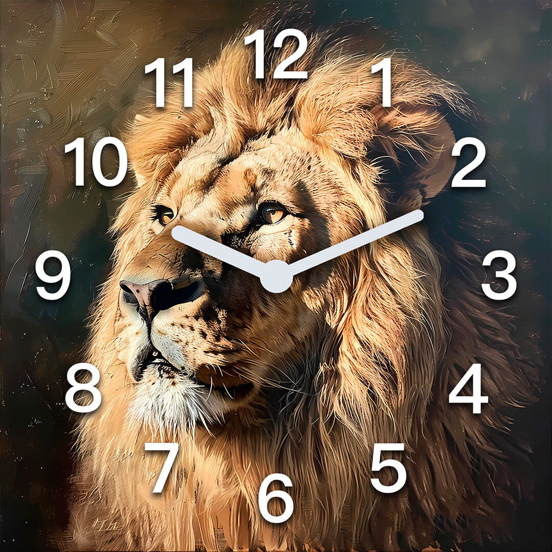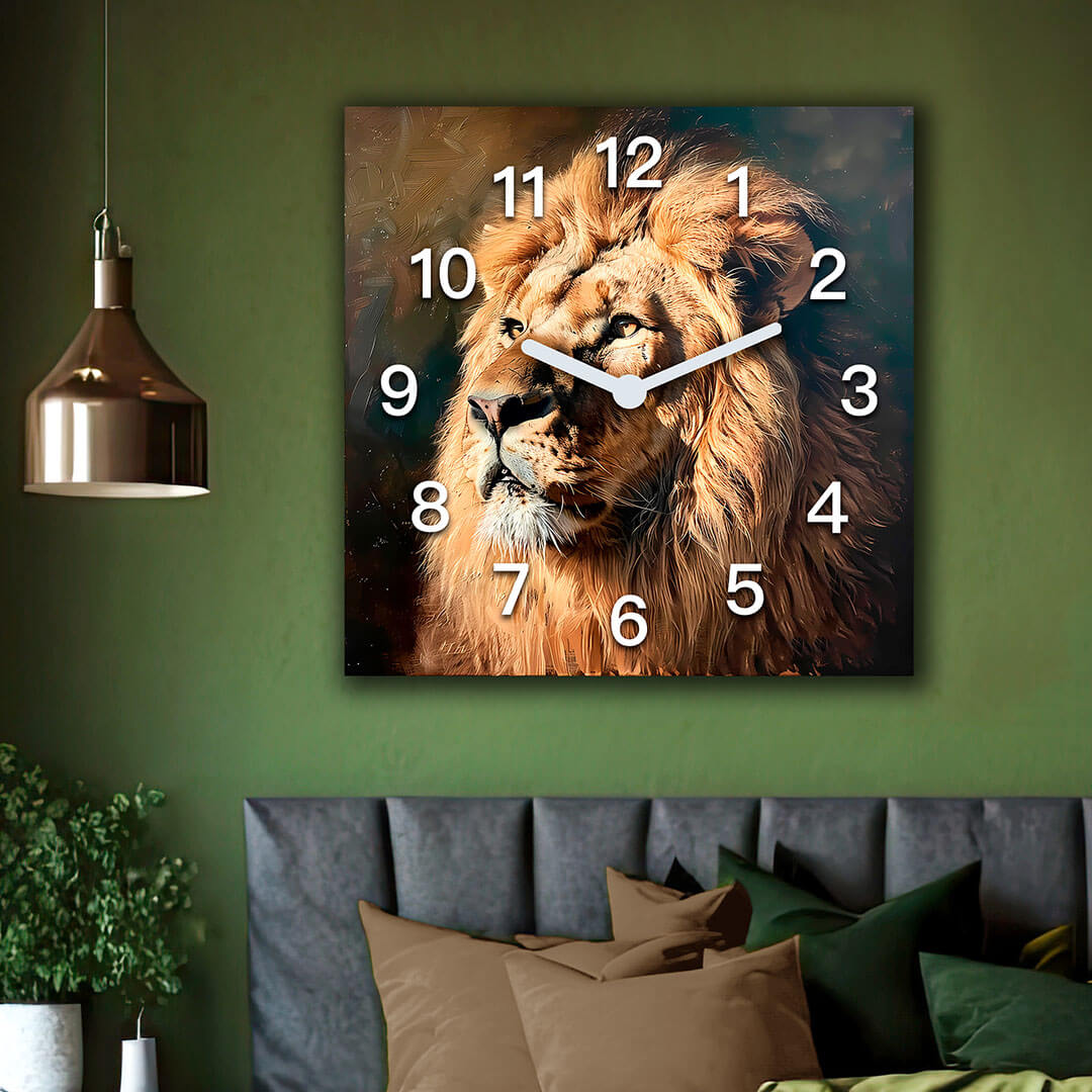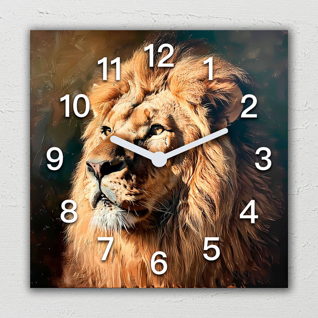 Dom • Katalog • ZEGARY ŚCIENNE • AFRYKA • Zegar ścienny dekoracyjny kwadratowy Afrykański lew: król sawanny