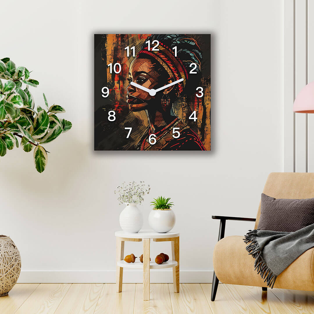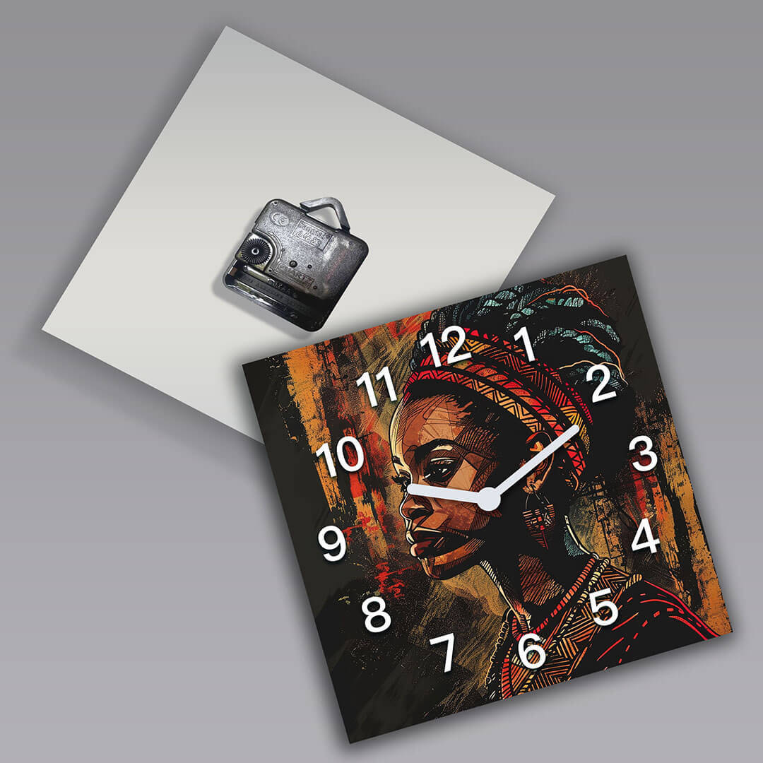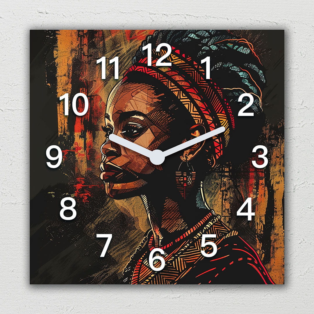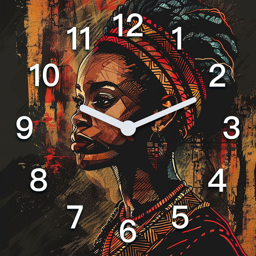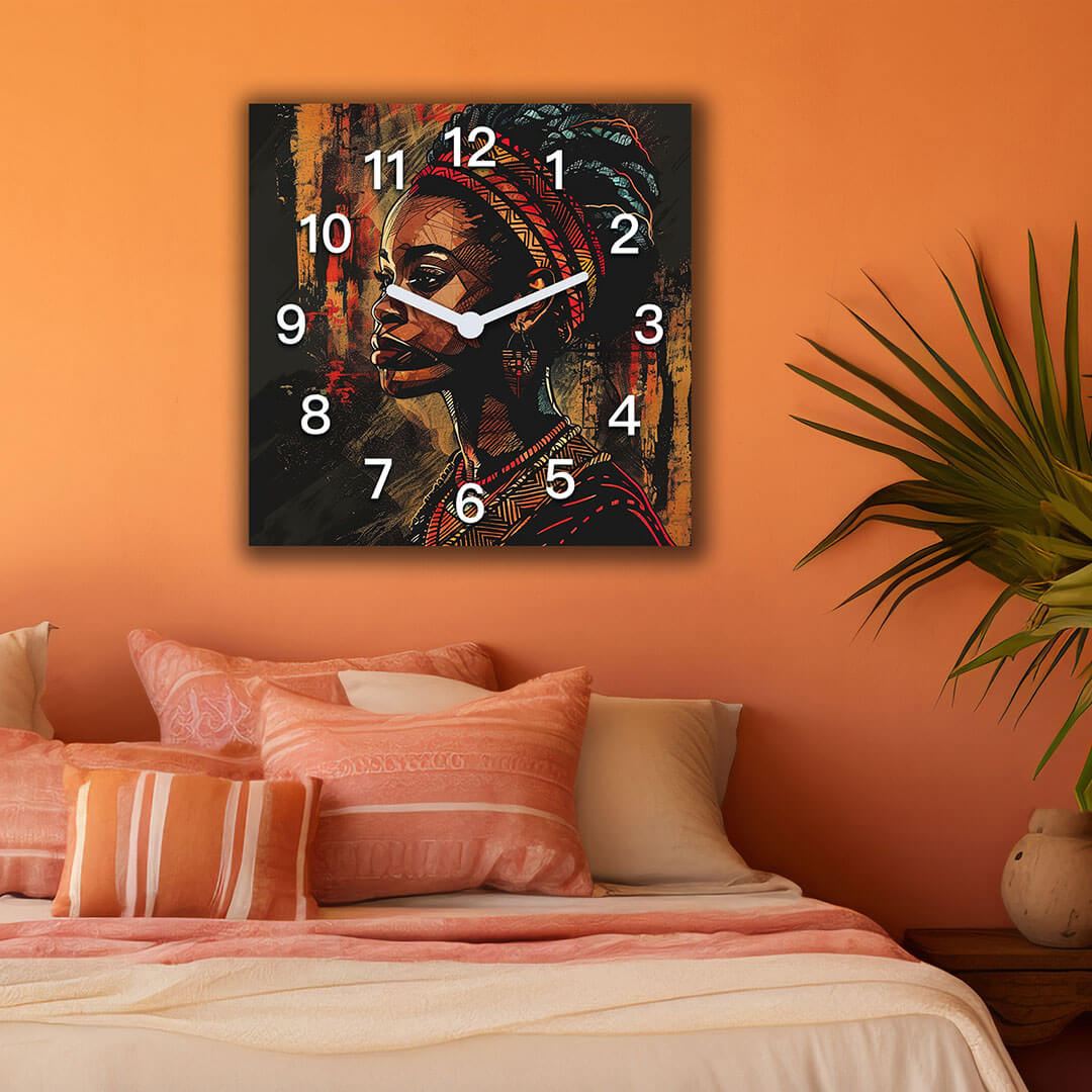 Dom • Katalog • ZEGARY ŚCIENNE • AFRYKA • Zegar ścienny dekoracyjny kwadratowy Kobieta z Afryki